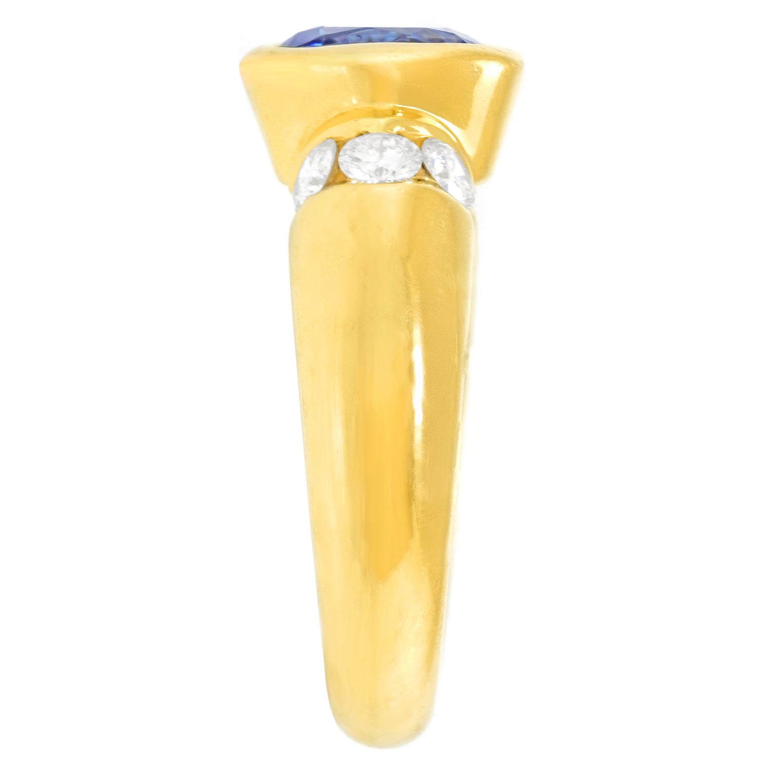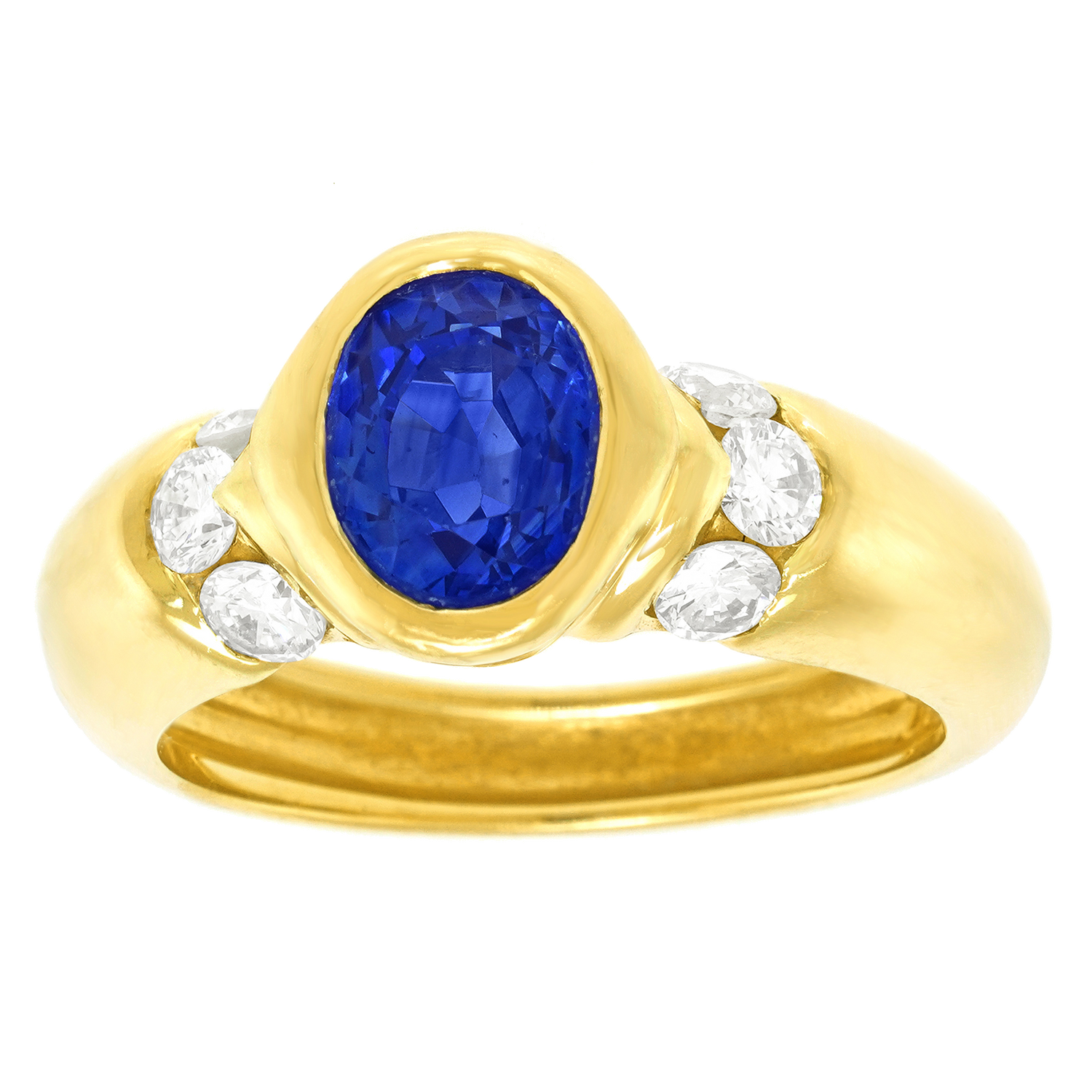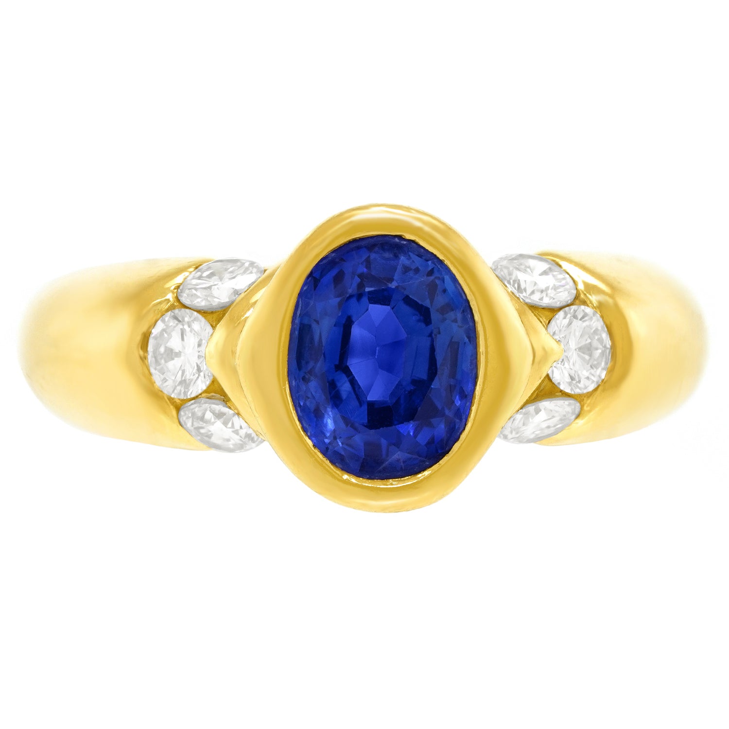 Circa 1980s, 18k, Swiss.  This stylish eighties ring is set with a deep blue 1.10-carat sapphire and .64 carats of brilliant white diamonds. Beautifully made, it is in excellent condition.