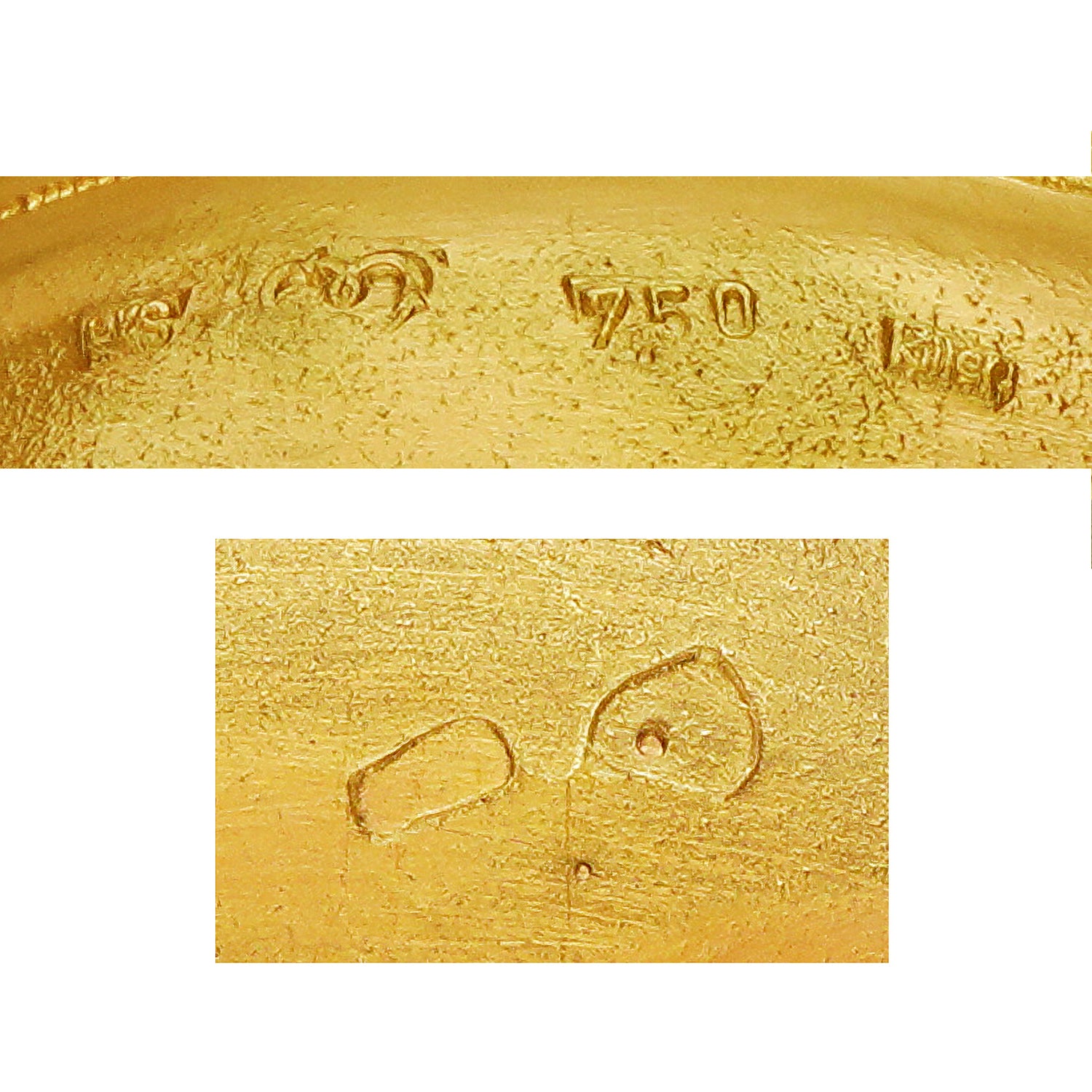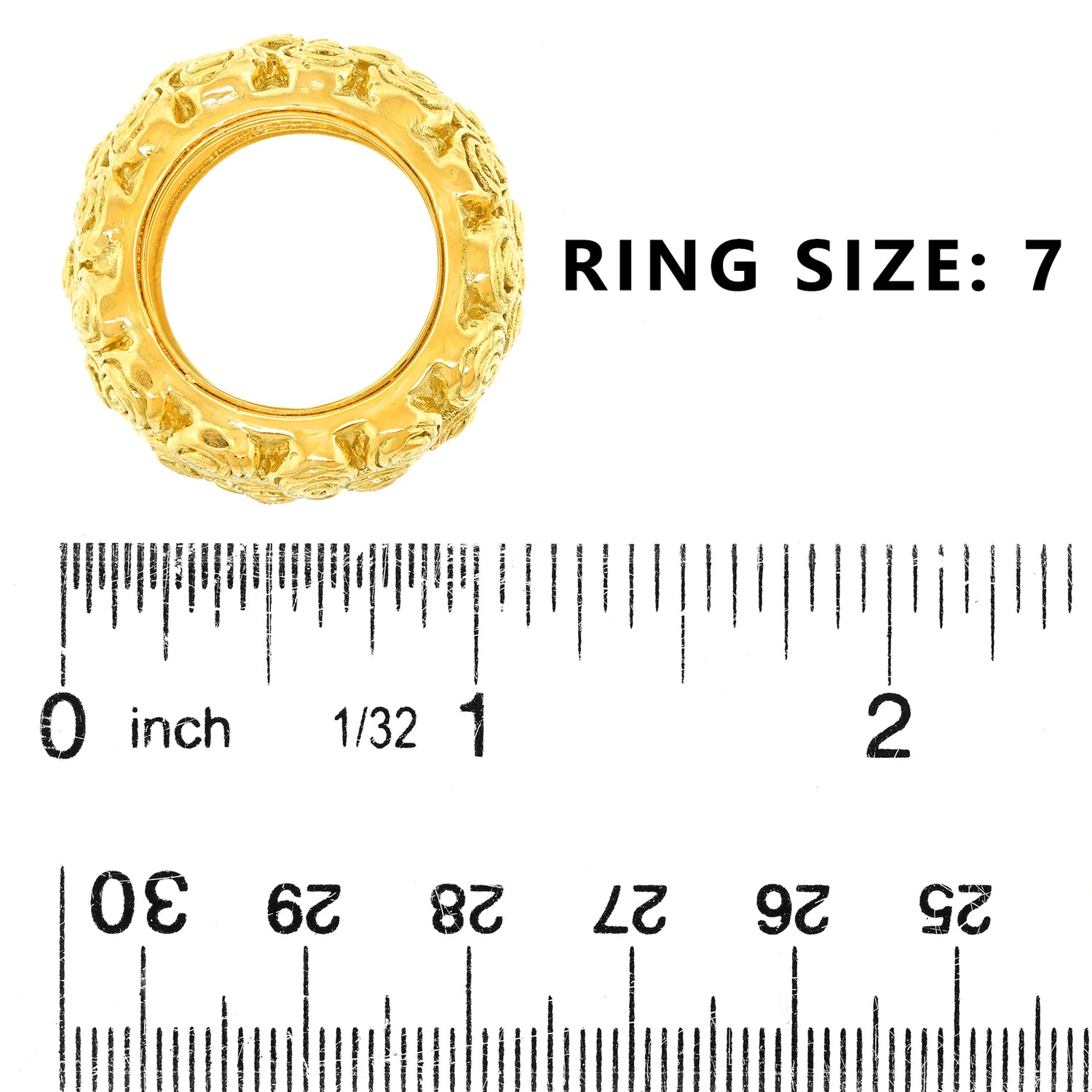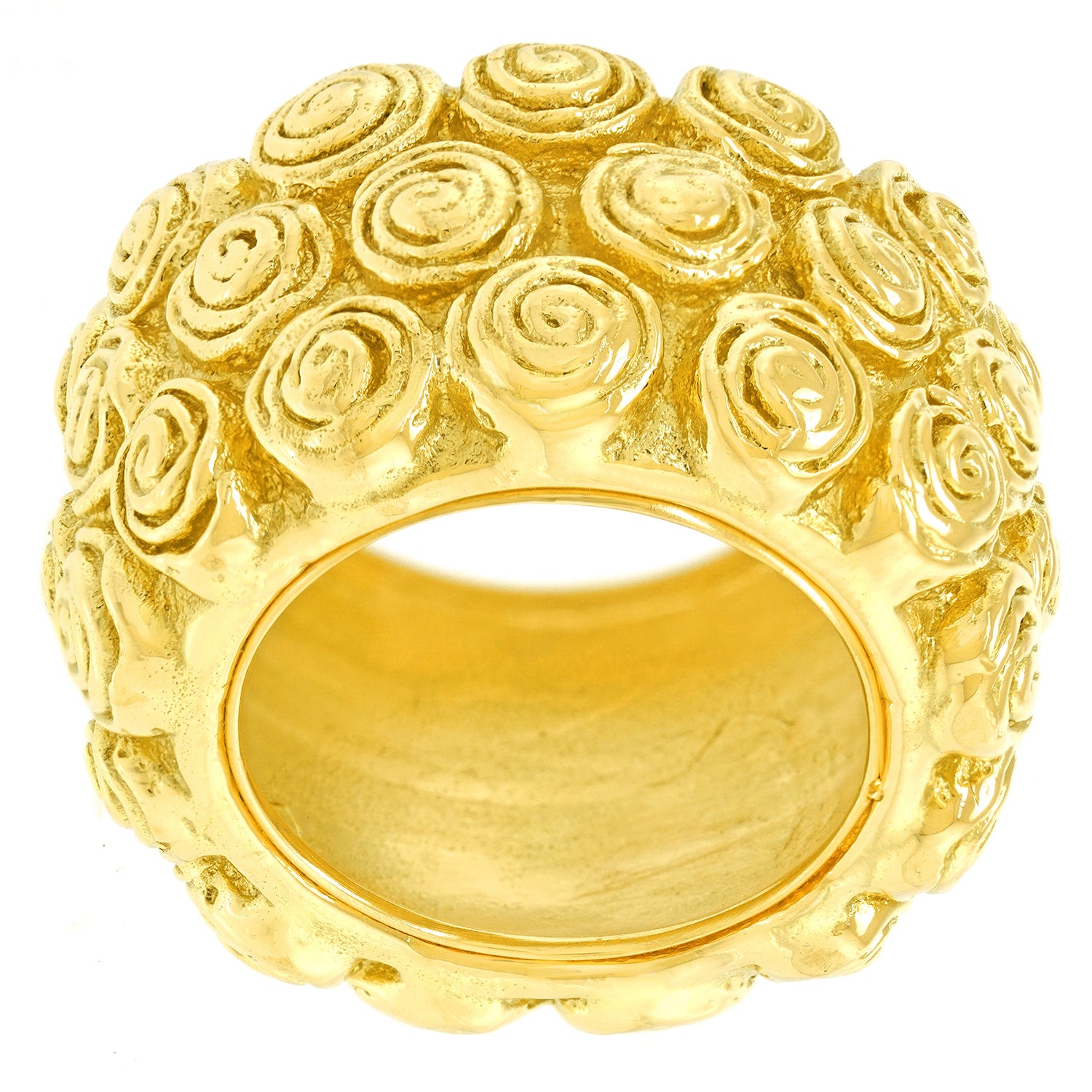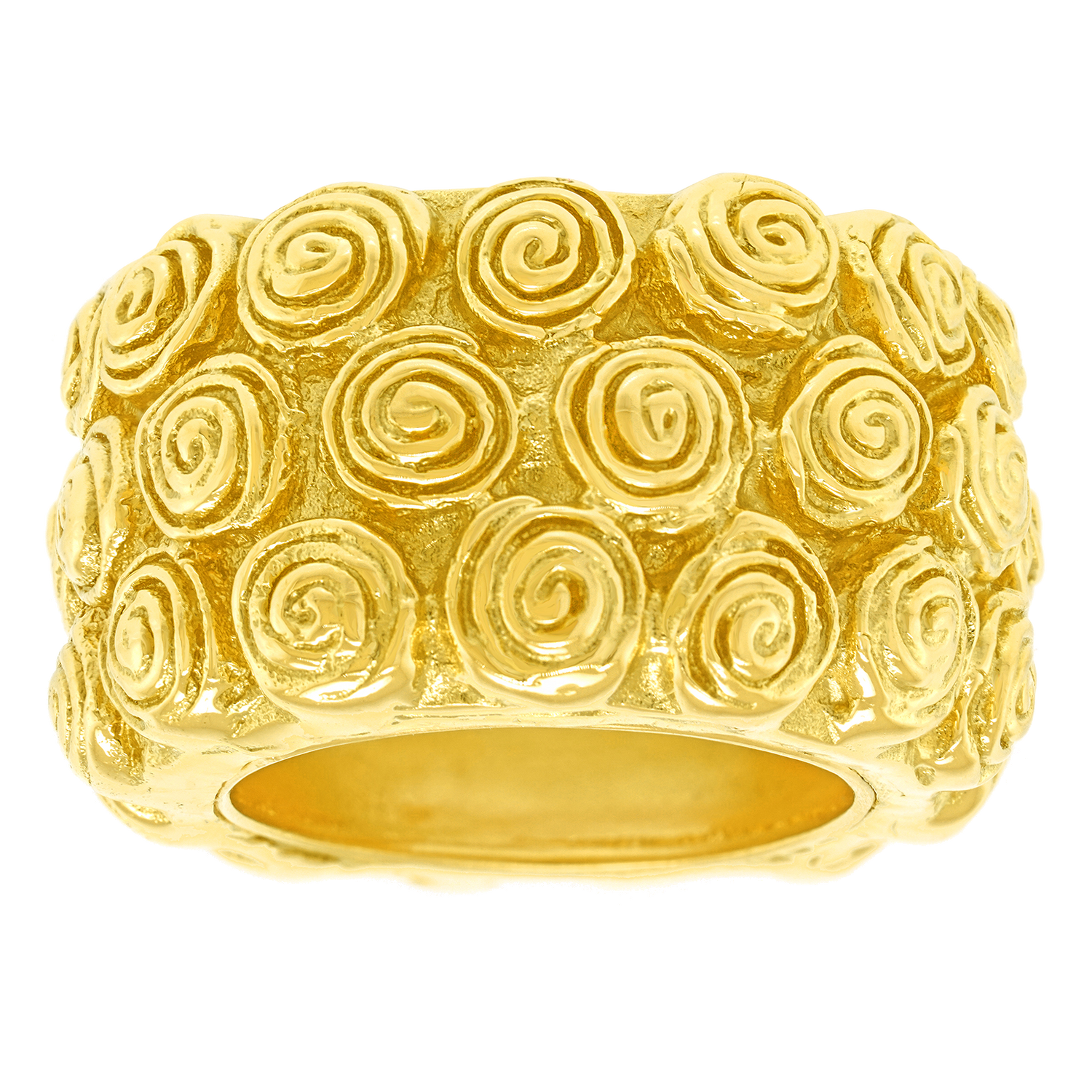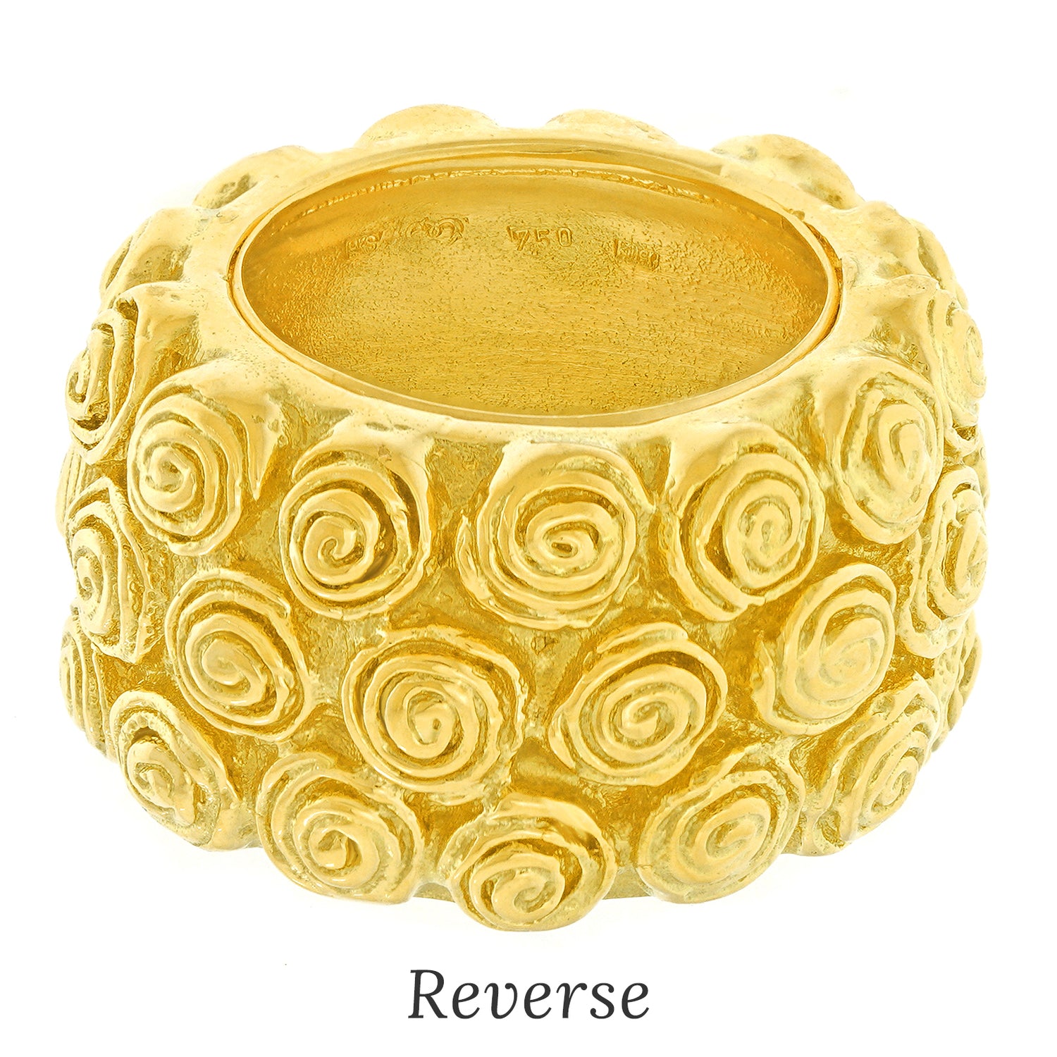 Circa 1980s, 18k, by Killer & Co., Solothurn, Switzerland. This stunning modernist ring features a textured landscape of raised spirals. Perfect for everyday, the look is very contemporary, very chic really really KILLER! Destined to become signature style, this delightfully substantial ring is in excellent condition.