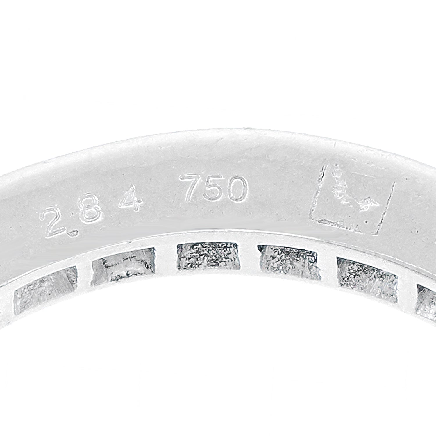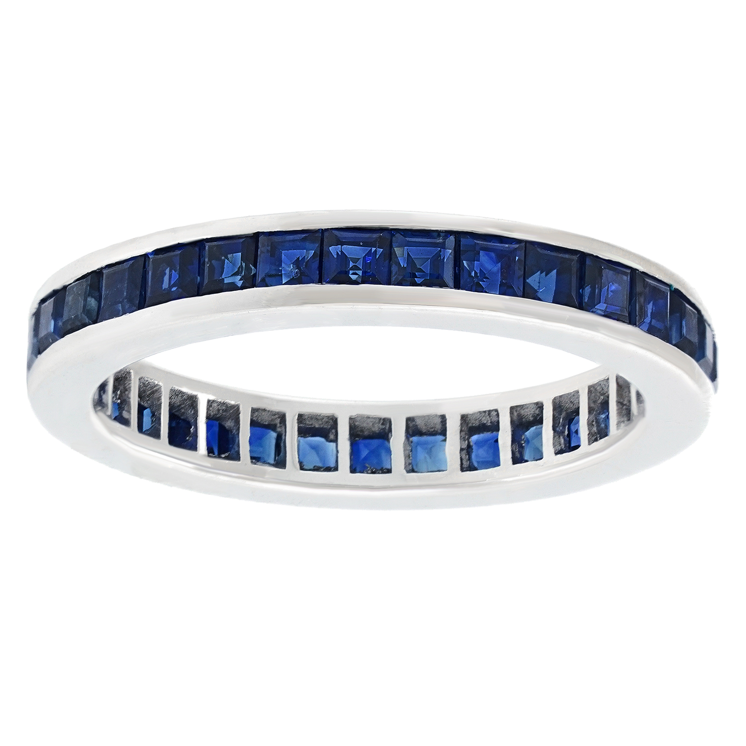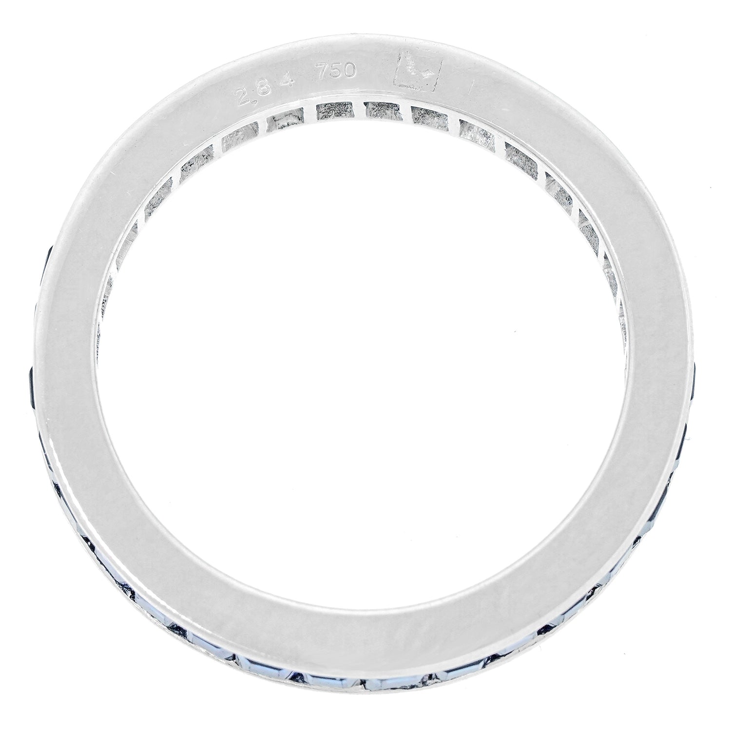 Circa 1990s, 18k, Switzerland. This chic channel-set ring features 2.75 carats of gorgeous cornflower blue sapphires set in eighteen-karat white gold. Elegantly designed and set with flawlessly matched stones, this ring is finely fabricated and in excellent condition.