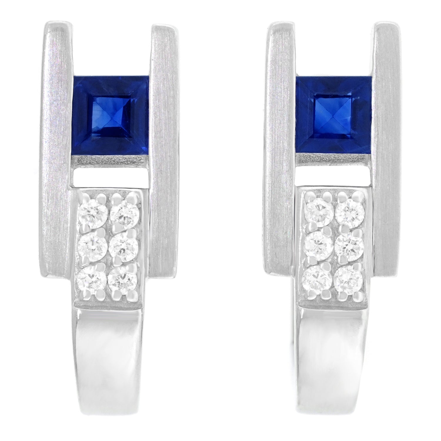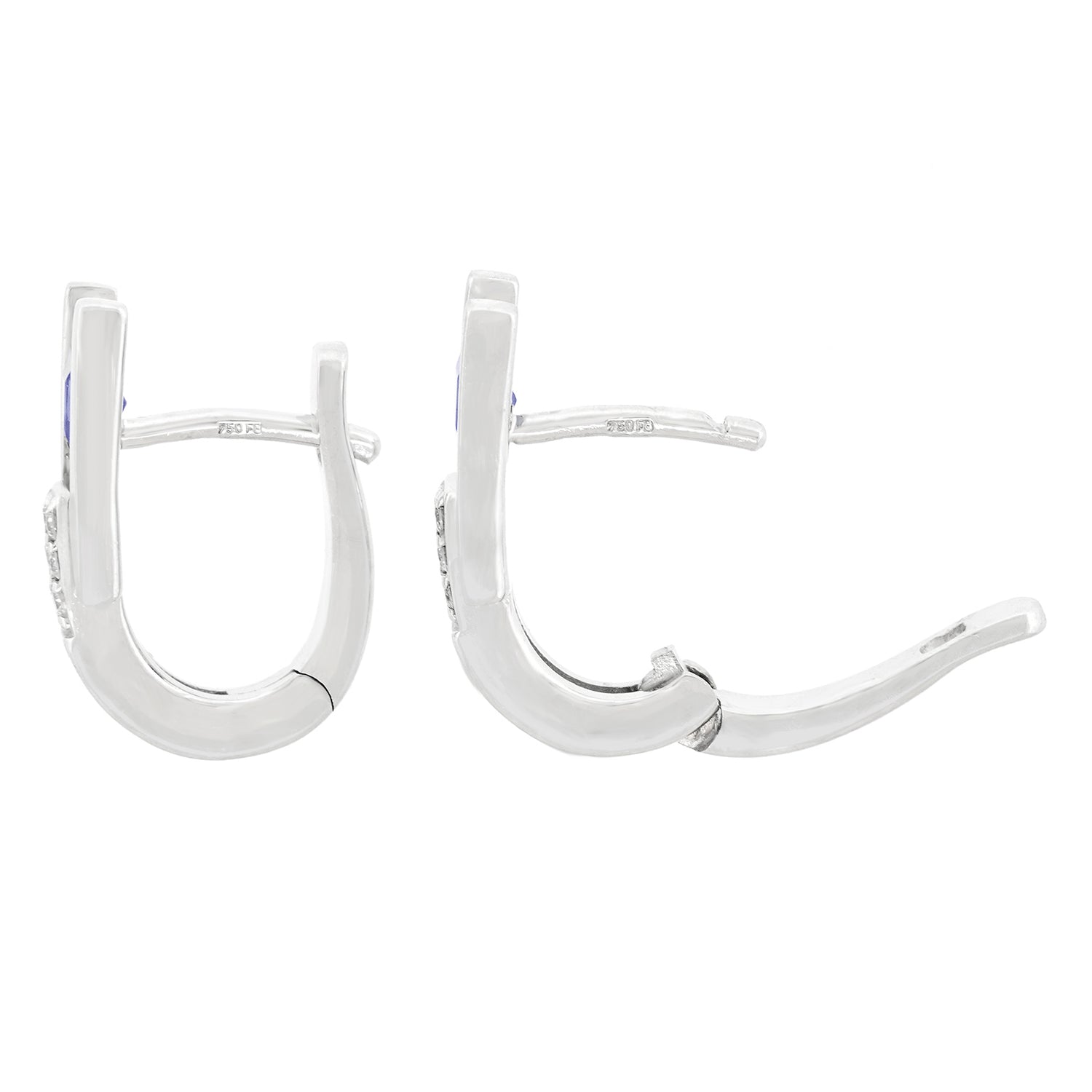 Circa 1980s, 18k, Swiss. Set with gorgeous cornflower blue sapphire and fine white diamonds, their style is underscored with quality. The look is Swiss Modern Zurich style! Excellent condition.