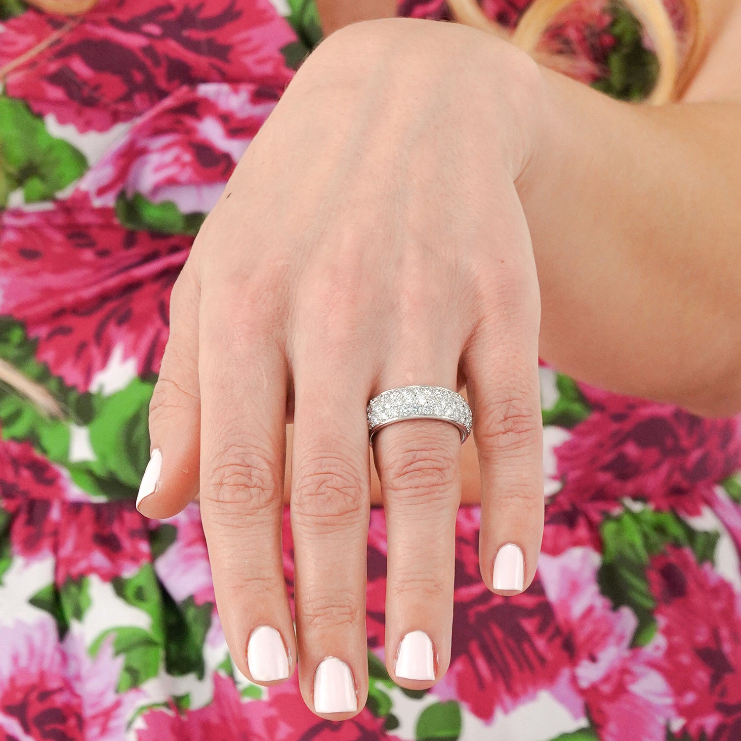 Circa 1990s, 18k, by Killer & Co., Solothurn, Switzerland. This elegant diamond ring sparkles… its chic visual narrative underscored by 6.0-carats of brilliant white diamonds (G color and SI1 clarity). The look is everyday luxury... and yes, we always say yes, yes, yes to more, more, more diamonds! Fine fabrication in polished eighteen-karat white gold and meticulous attention to detail completes the story. Excellent condition.