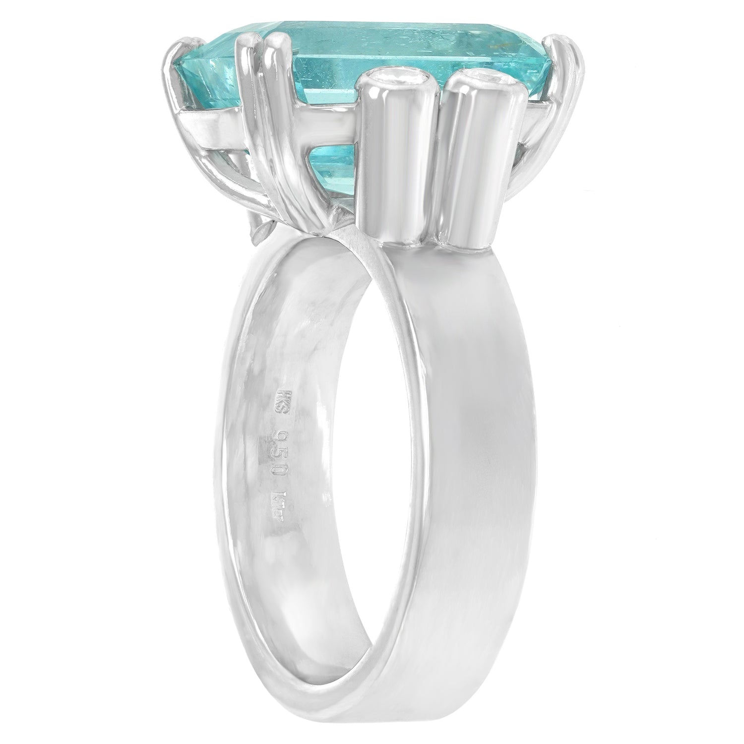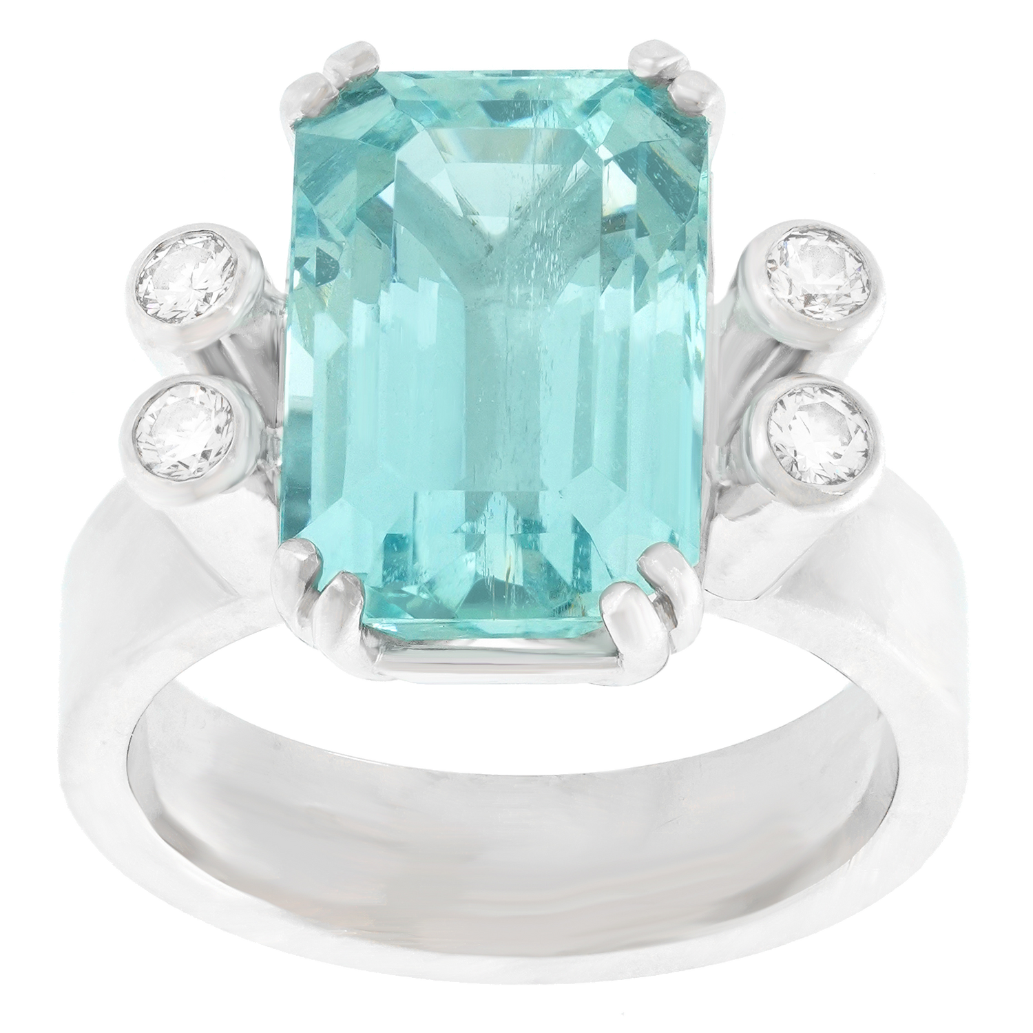 Circa 1980s, 18k, by Killer & Co., Solothurn, Switzerland. Set with a gorgeous 7.0-carat vivid blue aquamarine accented by .25 carats of fine white diamonds (H color, SI1 clarity), this eighties modernist ring is vintage chic at its colorful best! Finely fashioned in eighteen-karat white gold, it is in excellent condition.