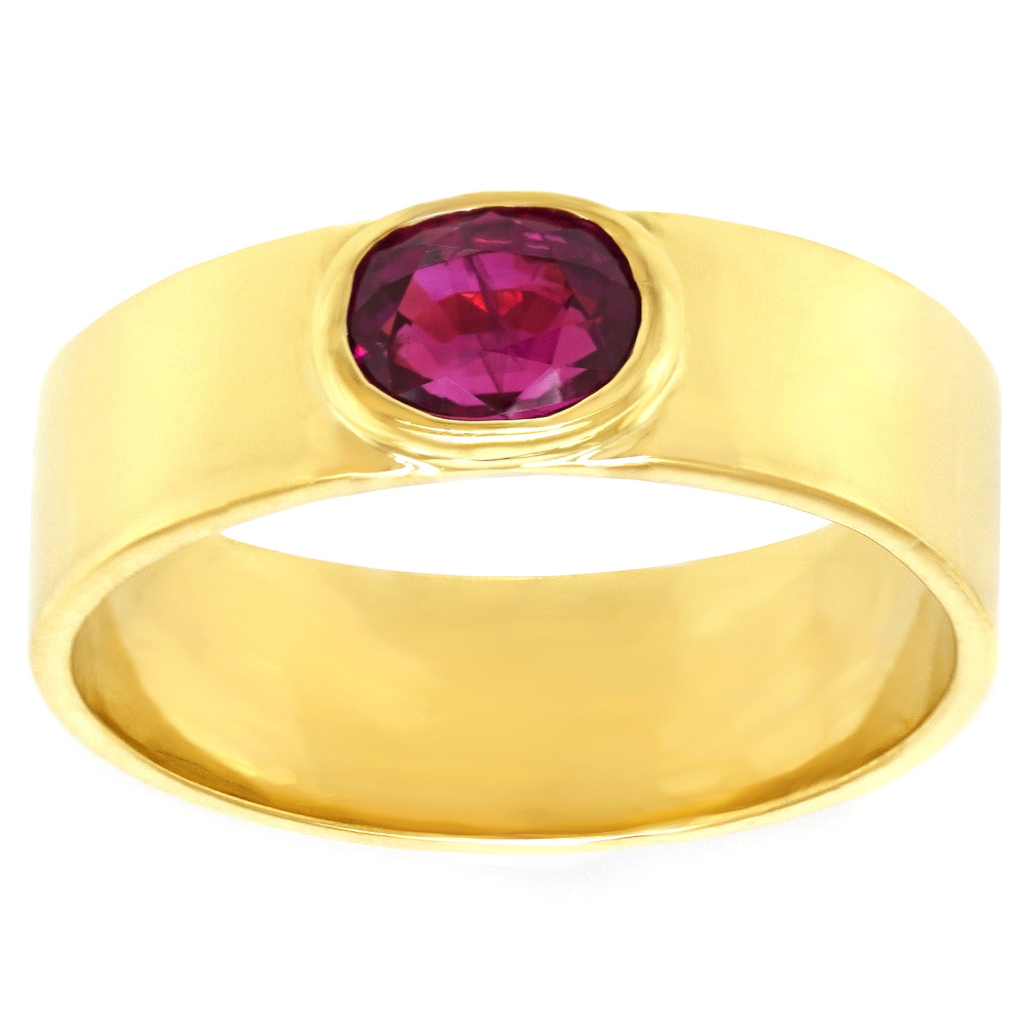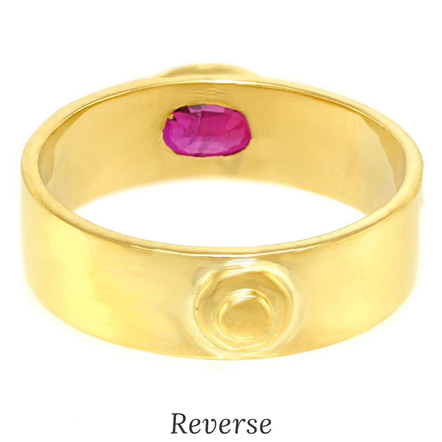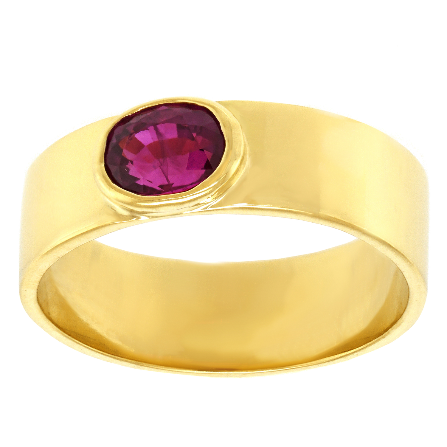 Circa 1970s, 18k, Italy. This Italian design ring features a sleek visual narrative underscored by a spectacular .50 carat Ruby (possibly Burma). Fabulous on its own or in combinations with its 4 matching rings of different sizes. Also perfect with your ring stack. Excellent condition.