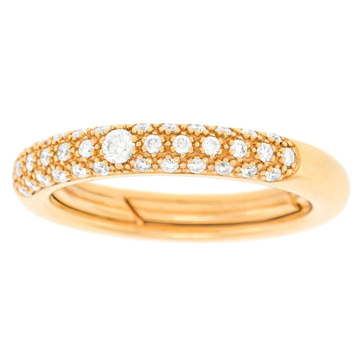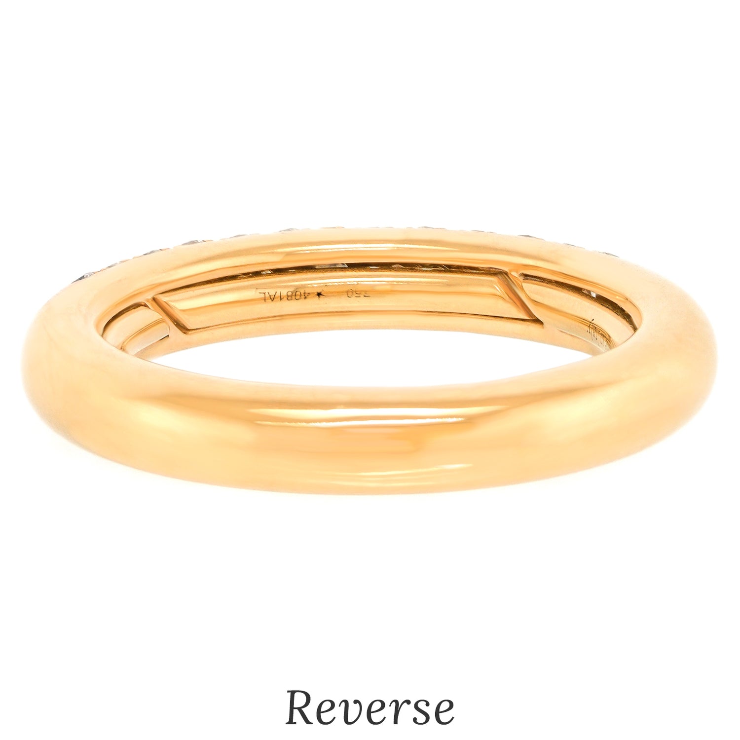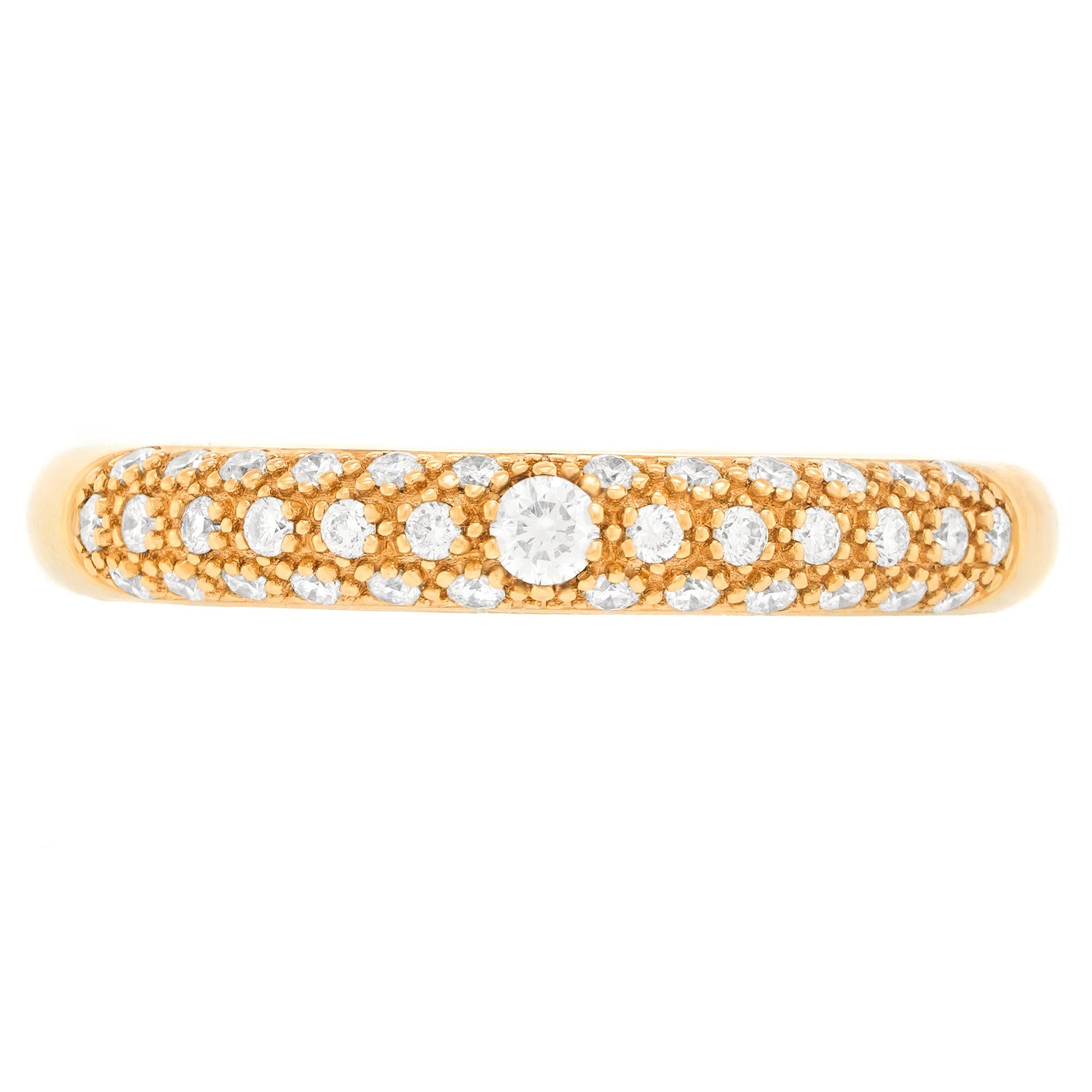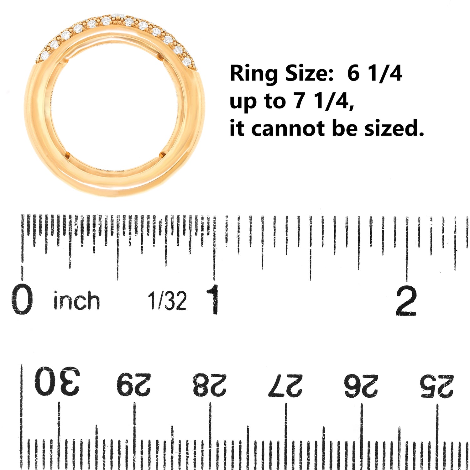 Circa 2000s, 18k, by Adolfo Courrier, Italy. This ring is a seamless blend of art, style, and modernity. Set with .50 carats of fine white diamonds (G color, VS clarity), it is exceedingly comfortable and goes with everything. Heavy and well-made in polished 18k yellow gold, this band is in excellent condition.