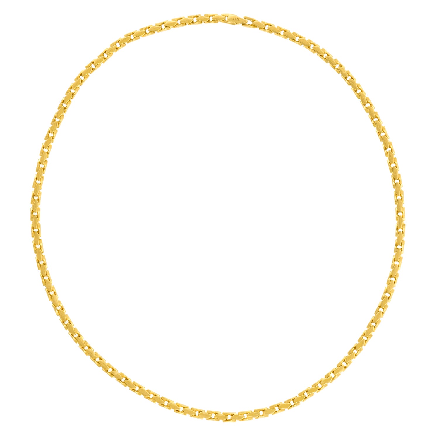 Circa 2000s, 18k, by David Yurman, American. Tasteful and tailored (David Yurman's sweet spot). This is your goes everywhere, does everything yellow gold necklace! Instantly chic, the modernist link is underscored by the 24-inch length and all-gold look. This necklace stands alone and looks great as part of a necklace stack. Quality fabrication completes the picture. Excellent condition.