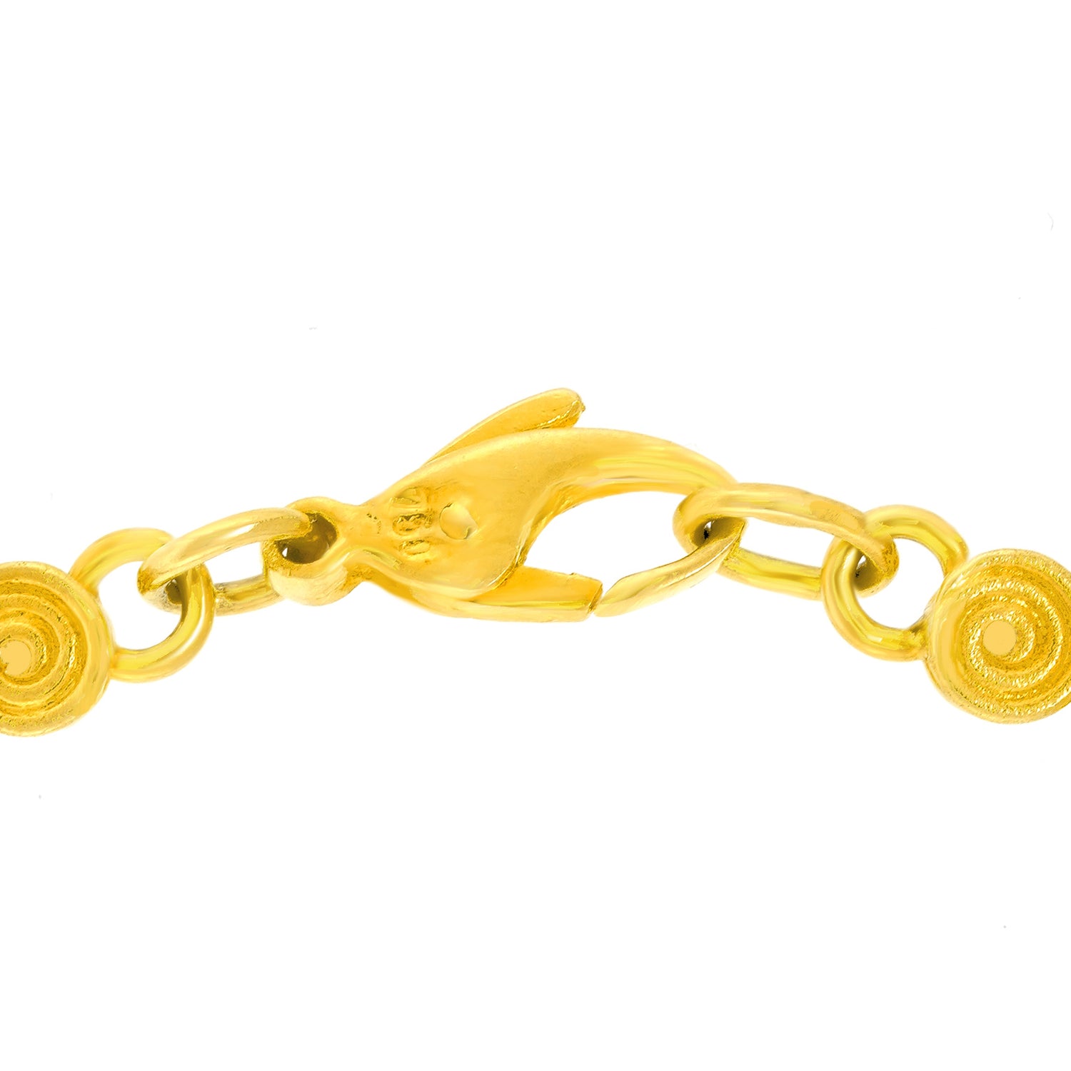 Circa 1970s, 18k, Possible Swiss. This fabulous organo chic bracelet features an ancient meets modern motif. Spiral petroglyphs permeate our conscious and reflect our relationship with the divine mirrored in art. Also decorated with pearls which represent rebirth we visually travel from the stars to the river of creation. A very wearable and stylish bracelet it is beautifully made. Excellent condition.