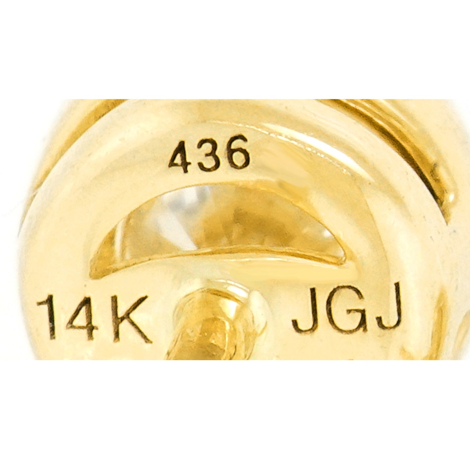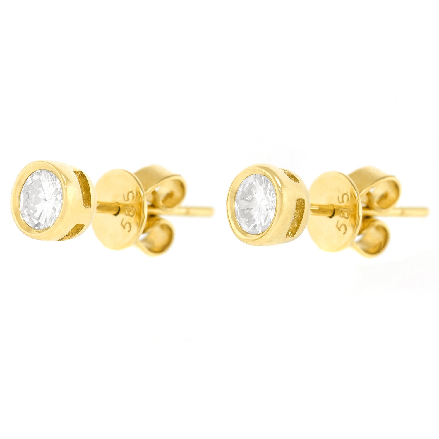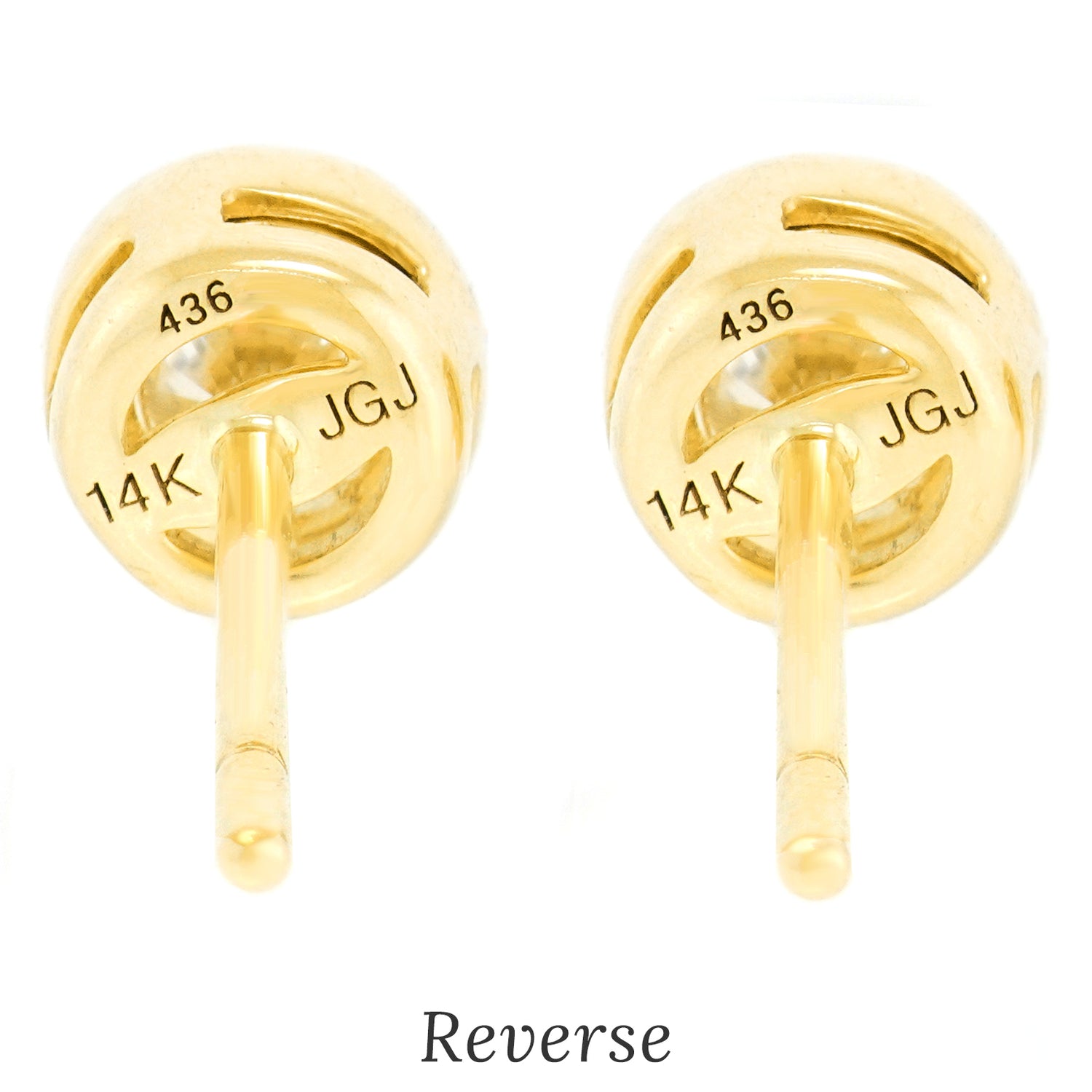 Circa 2000s, 14k. These yellow gold diamond earrings are bezel-set for a chic contemporary look. The .45 carats of brilliant white stones are G color and VS clarity. Diamond studs are a stylish essential. Great on their own or perfect in extra piercings, these will mix with any piece of jewelry or moment of fashion. Excellent condition.
