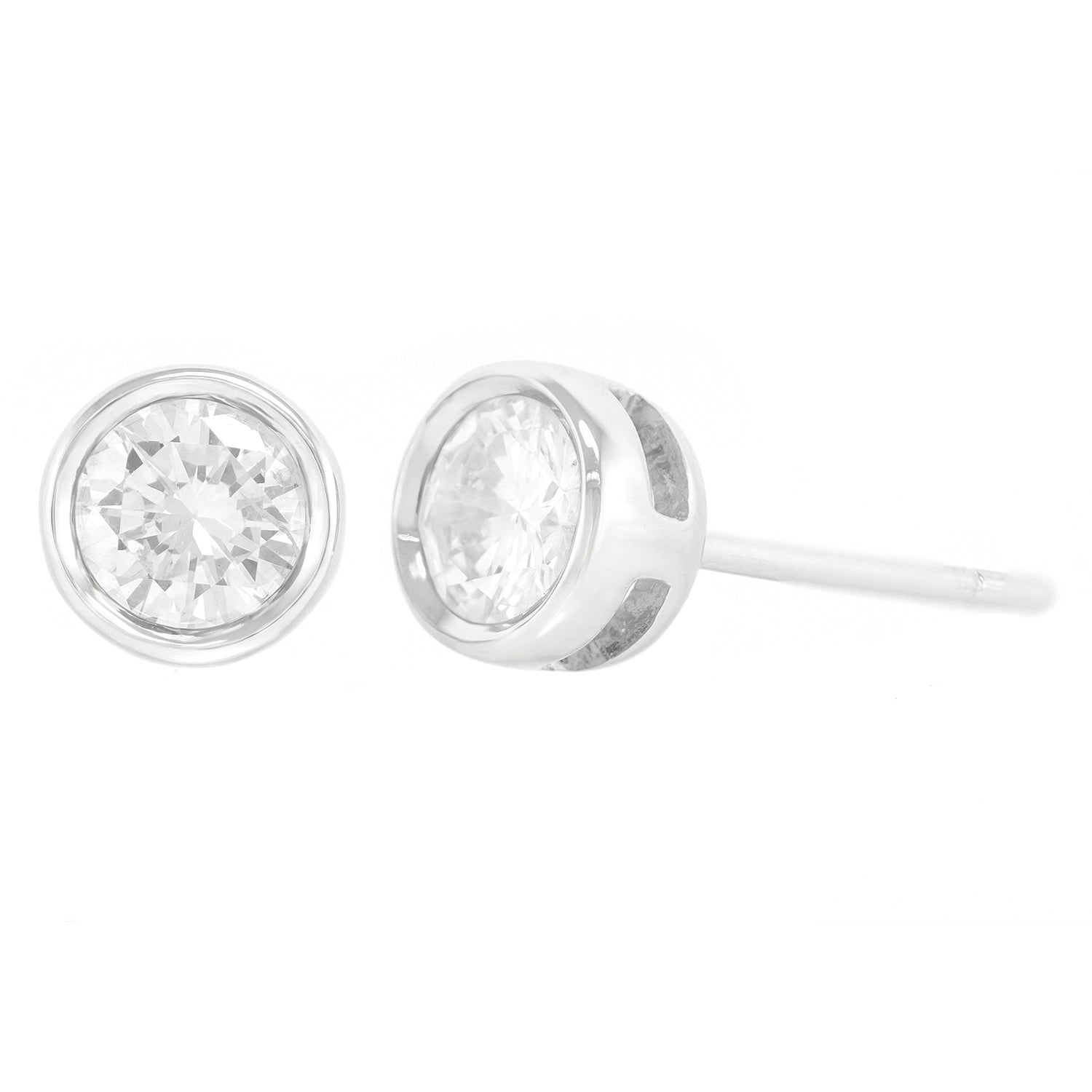 Circa 2000s, 14k. These white gold diamond earrings are bezel-set for a chic contemporary look. The .52 carats of brilliant white stones are G color and VS clarity. Diamond studs are a stylish essential. Great on their own or perfect in extra piercings, these will mix with any piece of jewelry or moment of fashion. Excellent condition.