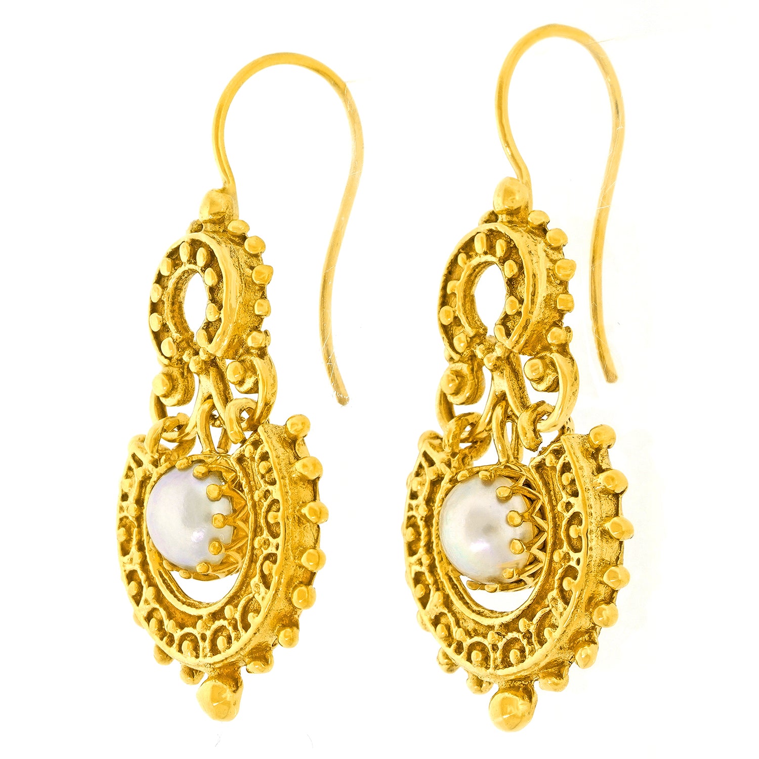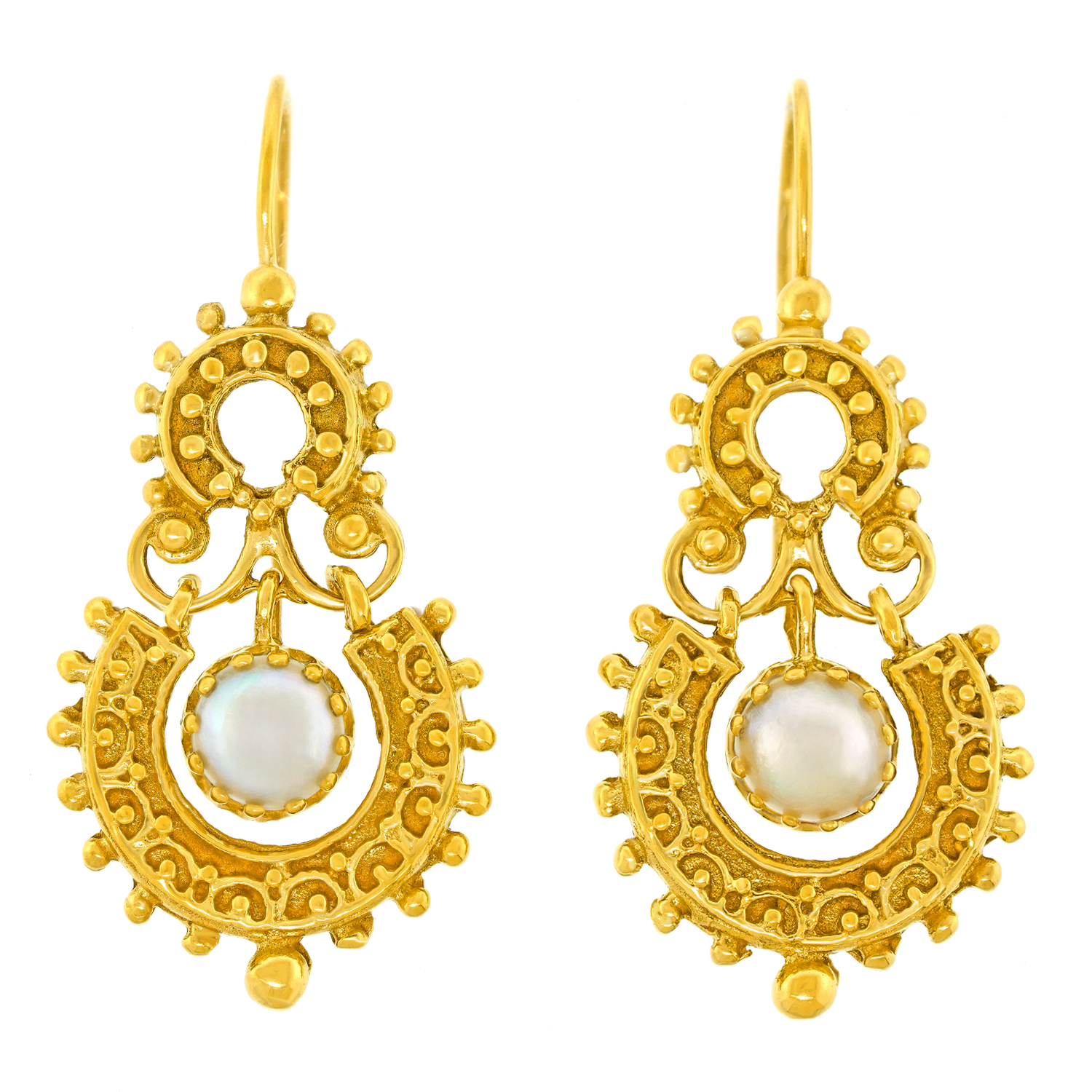 Circa 1960s, 14k, American. These sixties earrings are the perfect fashion accessory. The look is Boho-Romantic with a vintage Etruscan Revival vibe! Excellent condition.