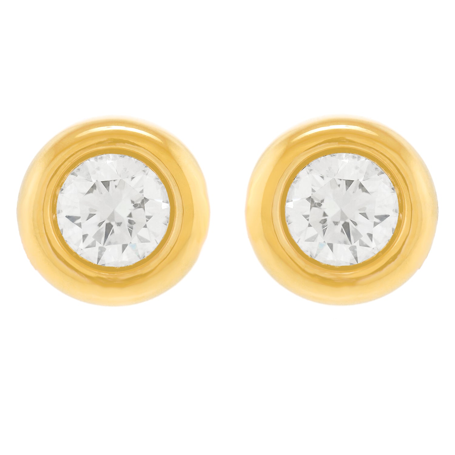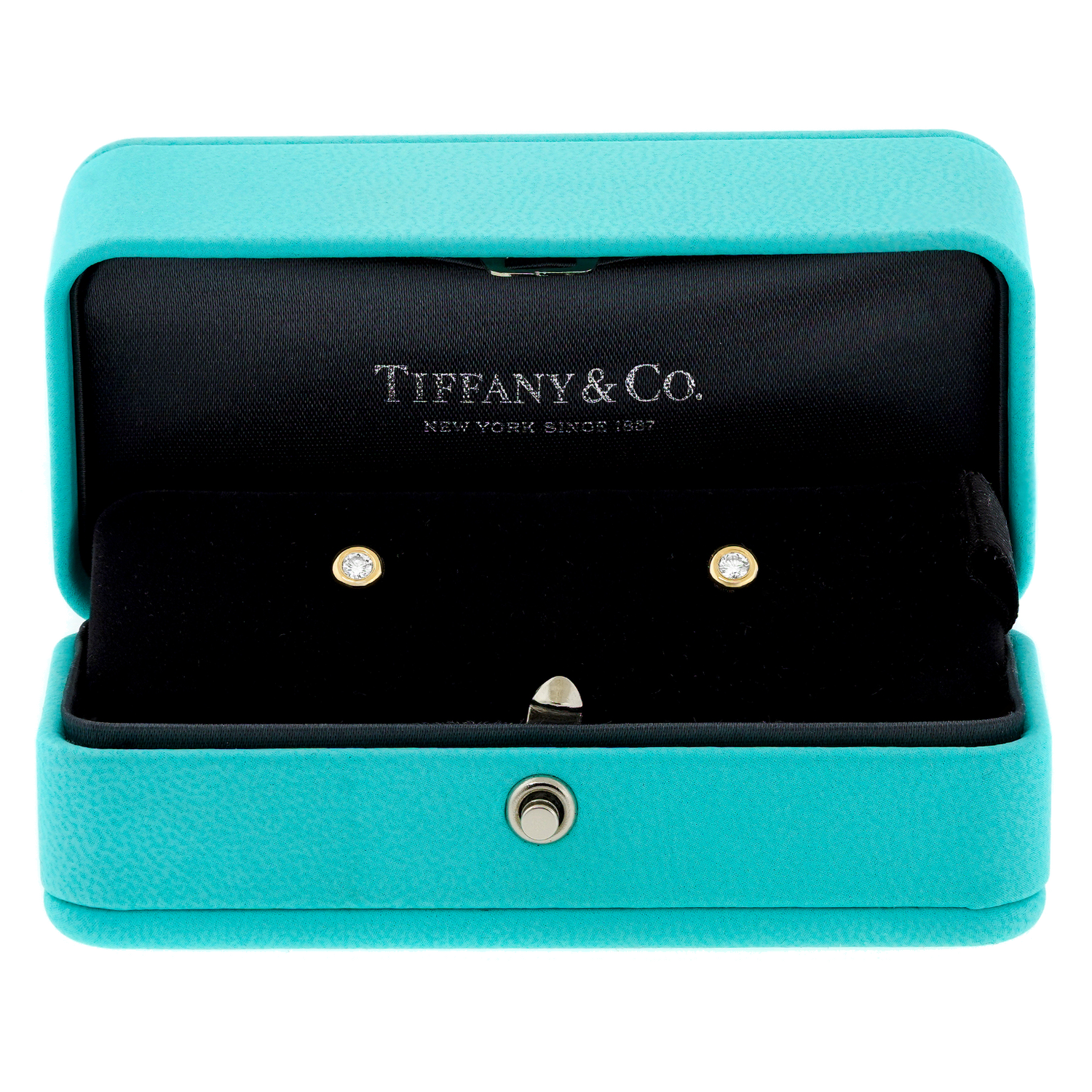 Circa 2000s, 18k, by Elsa Peretti for Tiffany & Co, New York. These Elsa Peretti for Tiffany & Co. diamond earrings are bezel-set for chic contemporary looks. The .28 carats of brilliant white stones are G color and VS clarity. Diamond studs are a stylish essential. Great on their own or perfect for extra piercings, these will mix with any piece of jewelry or moment of fashion. Excellent condition.