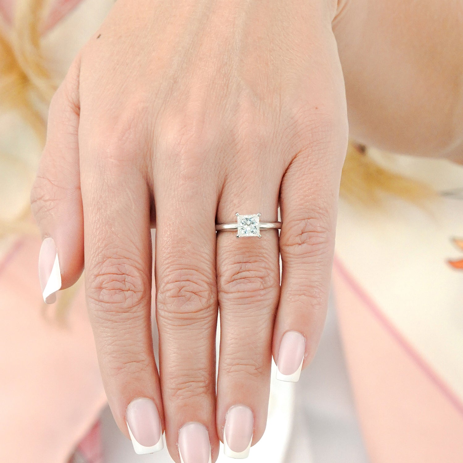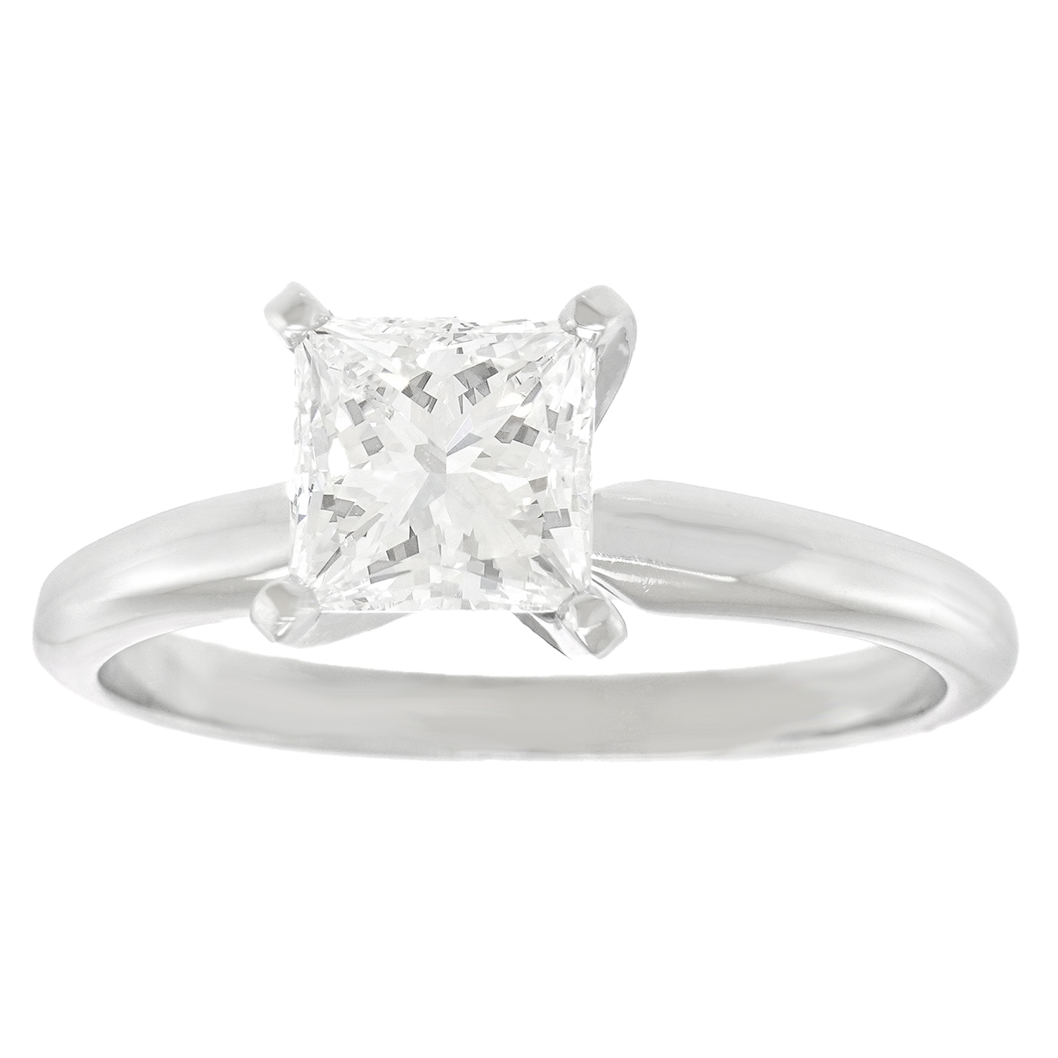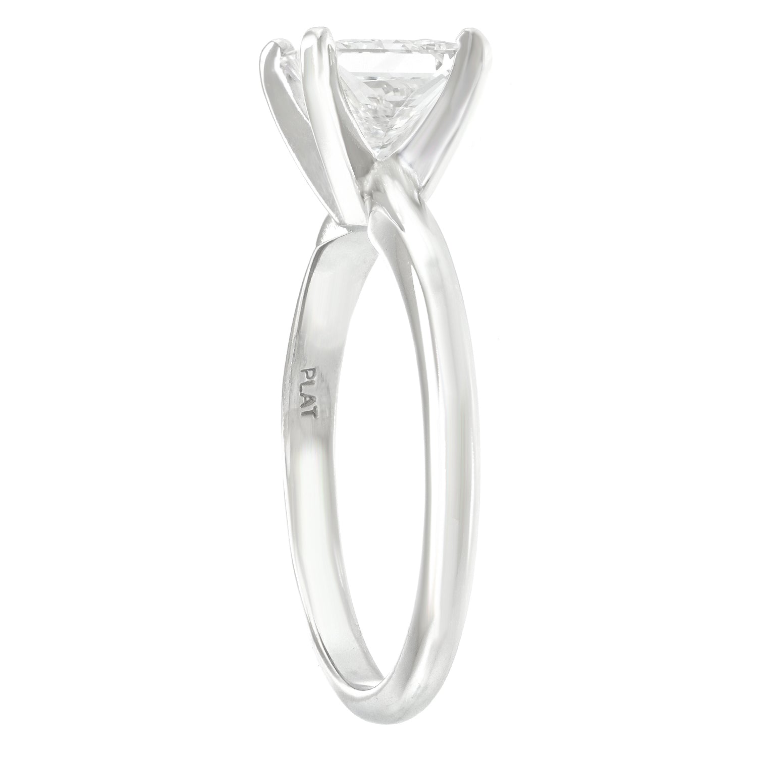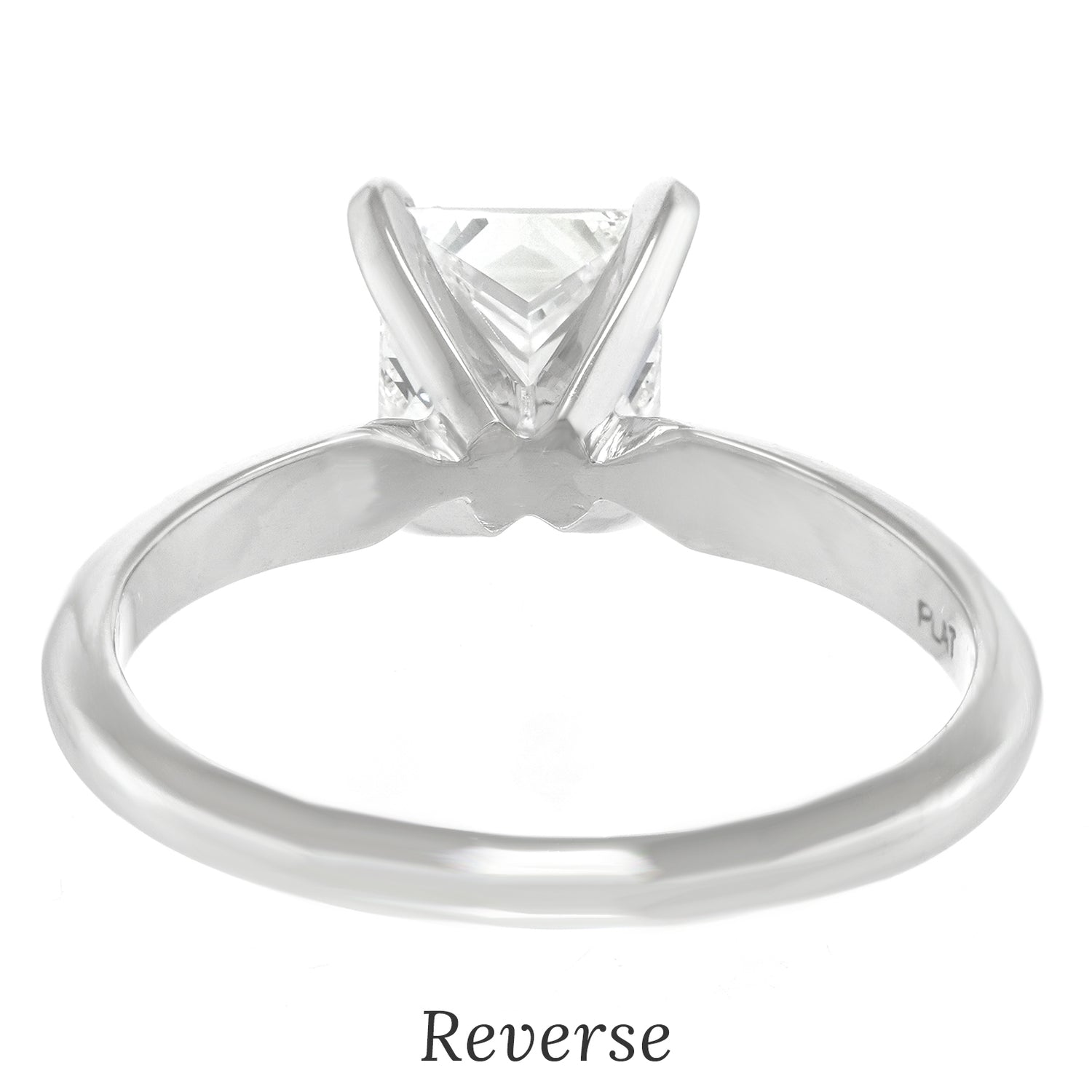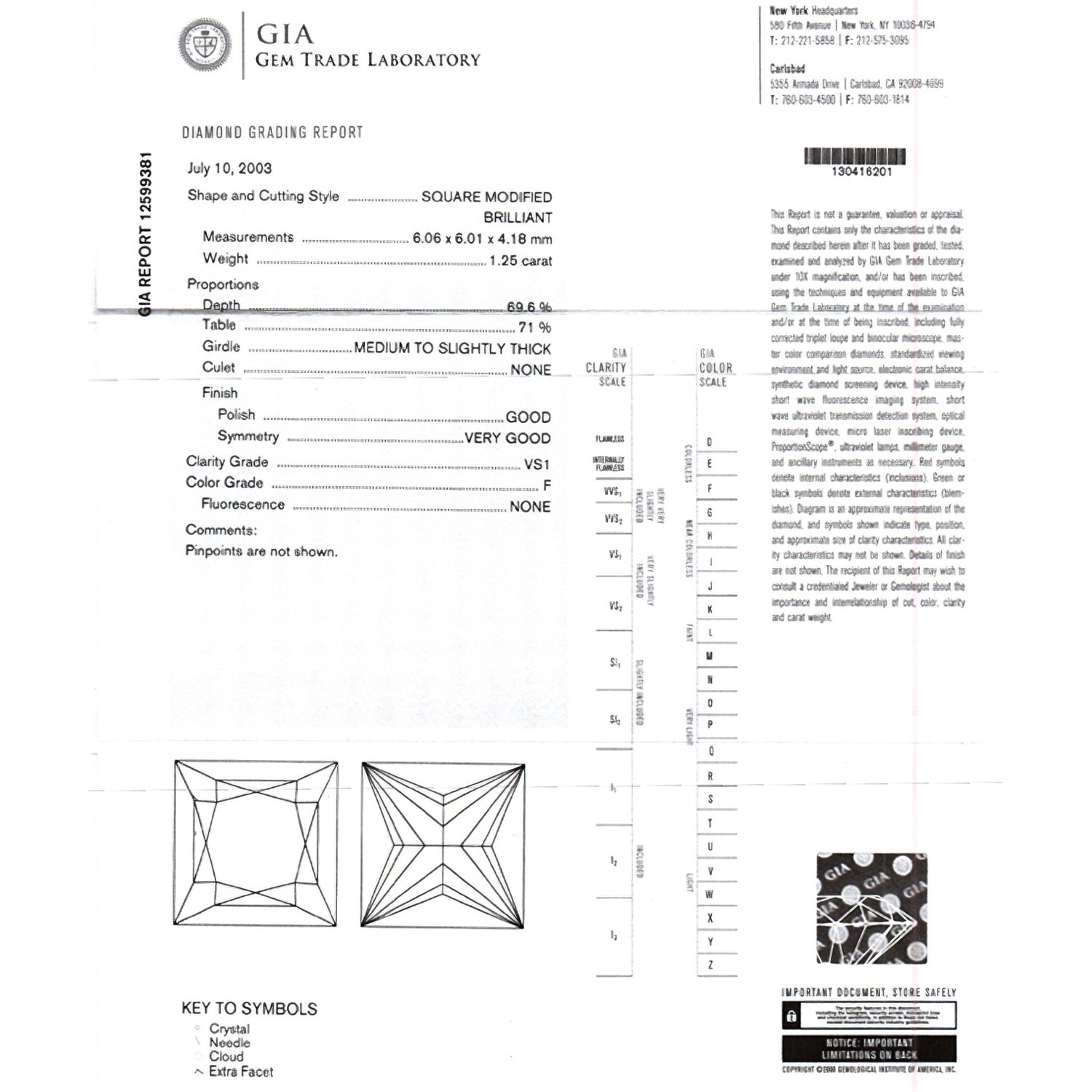 Circa 1990s, Platinum, American. Exceptionally well-dressed, this iconic engagement ring is all about the brilliant white 1.25 carat diamond (F color, VS1 clarity GIA report). The visual narrative is elegant romance. Excellent condition.
