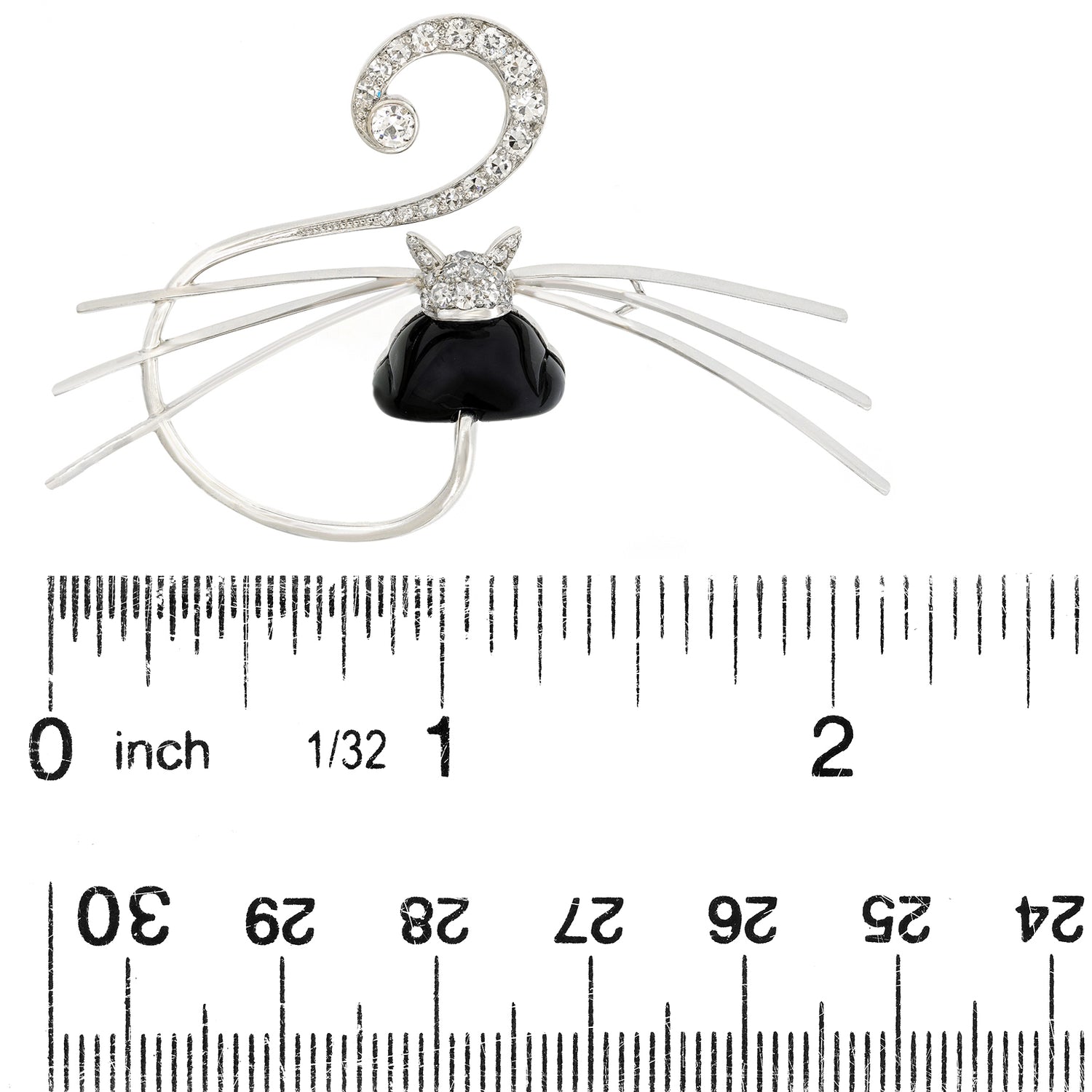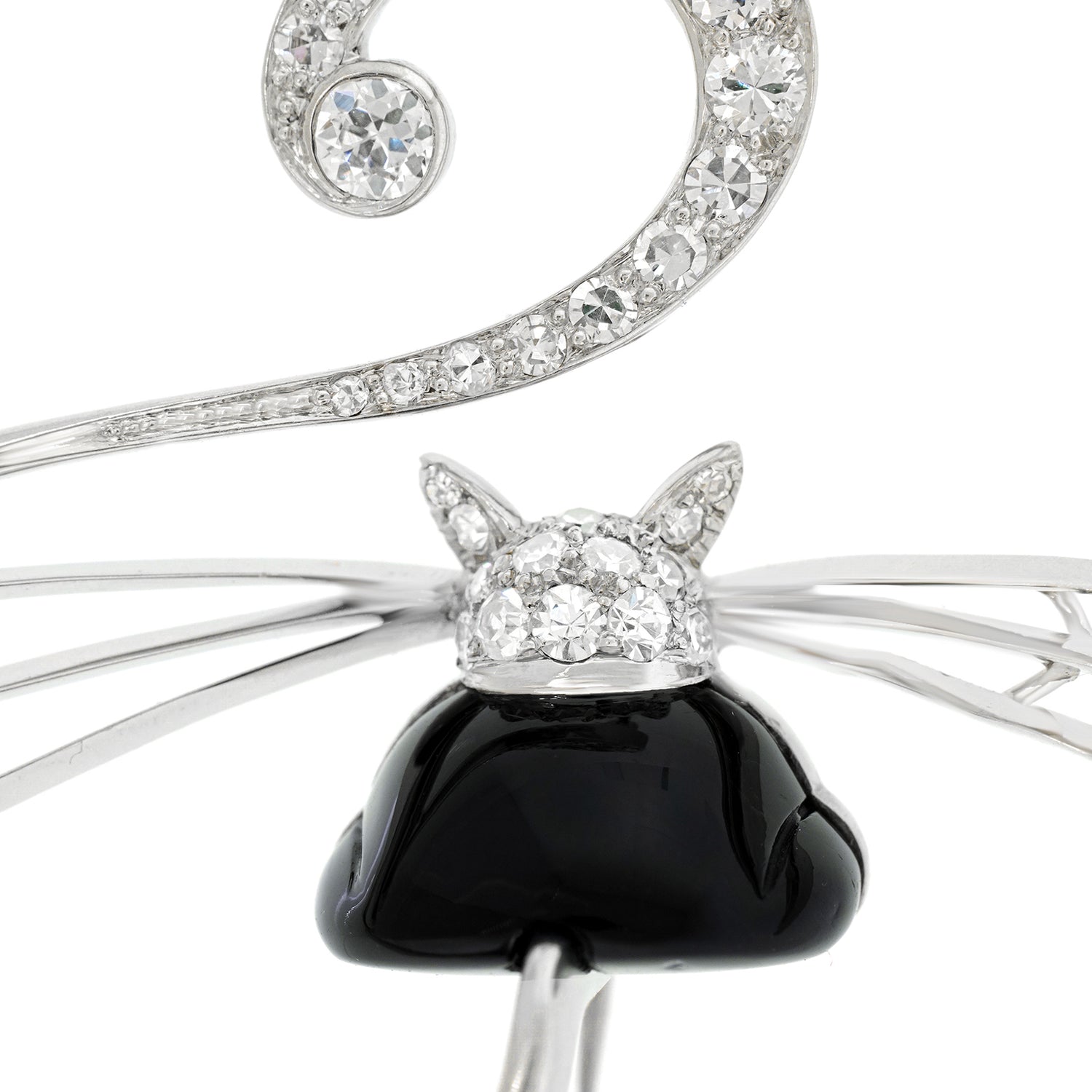 Circa 1960s, Platinum, American. This sixties "Cool Cat" is beautifully designed, well-sized, and finely fabricated. Set with brilliant white diamonds and sleek onyx, the look is Jazz chic, sixties style! Excellent condition.