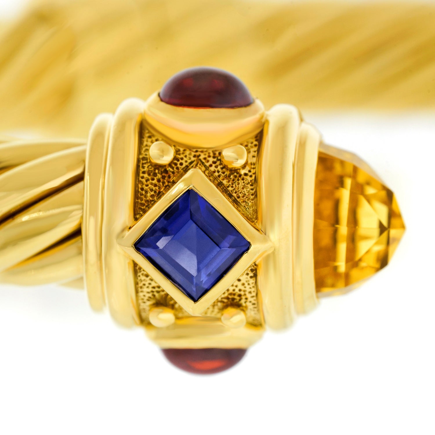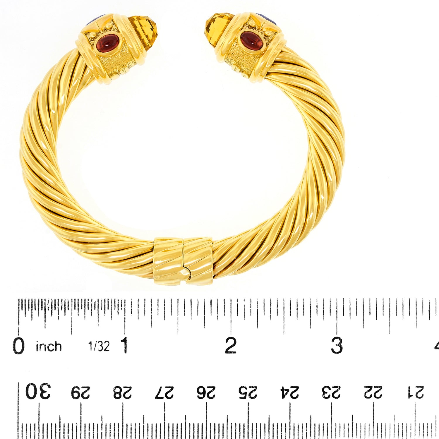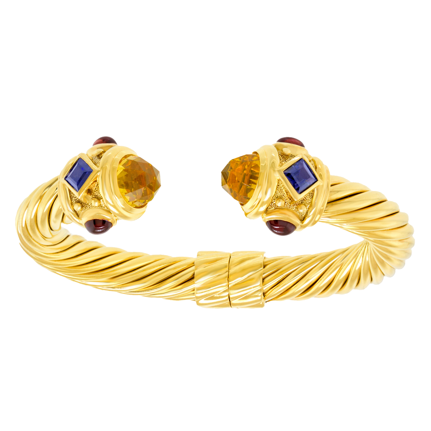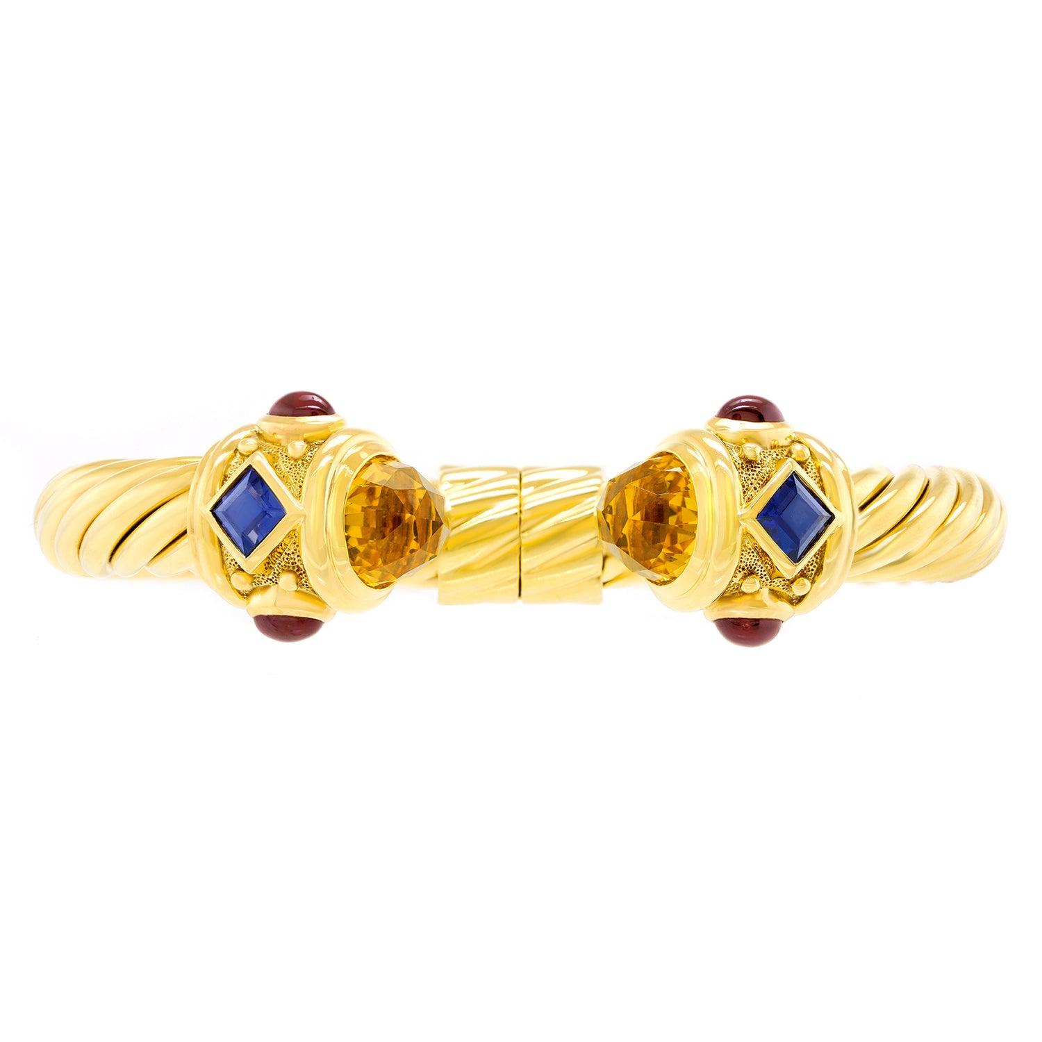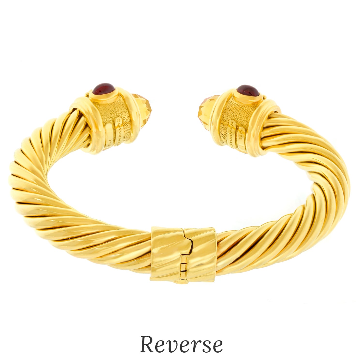 Circa 1990s, 18k, by David Yurman, American. Old production. Tasteful and tailored (David Yurman's sweet spot). This is your goes everywhere, does everything yellow gold bangle bracelet! Instantly recognizable, the iconic cable twist motif is a fashion staple. Rocking Renaissance revival style, quality fabrication completes the picture. Excellent condition.