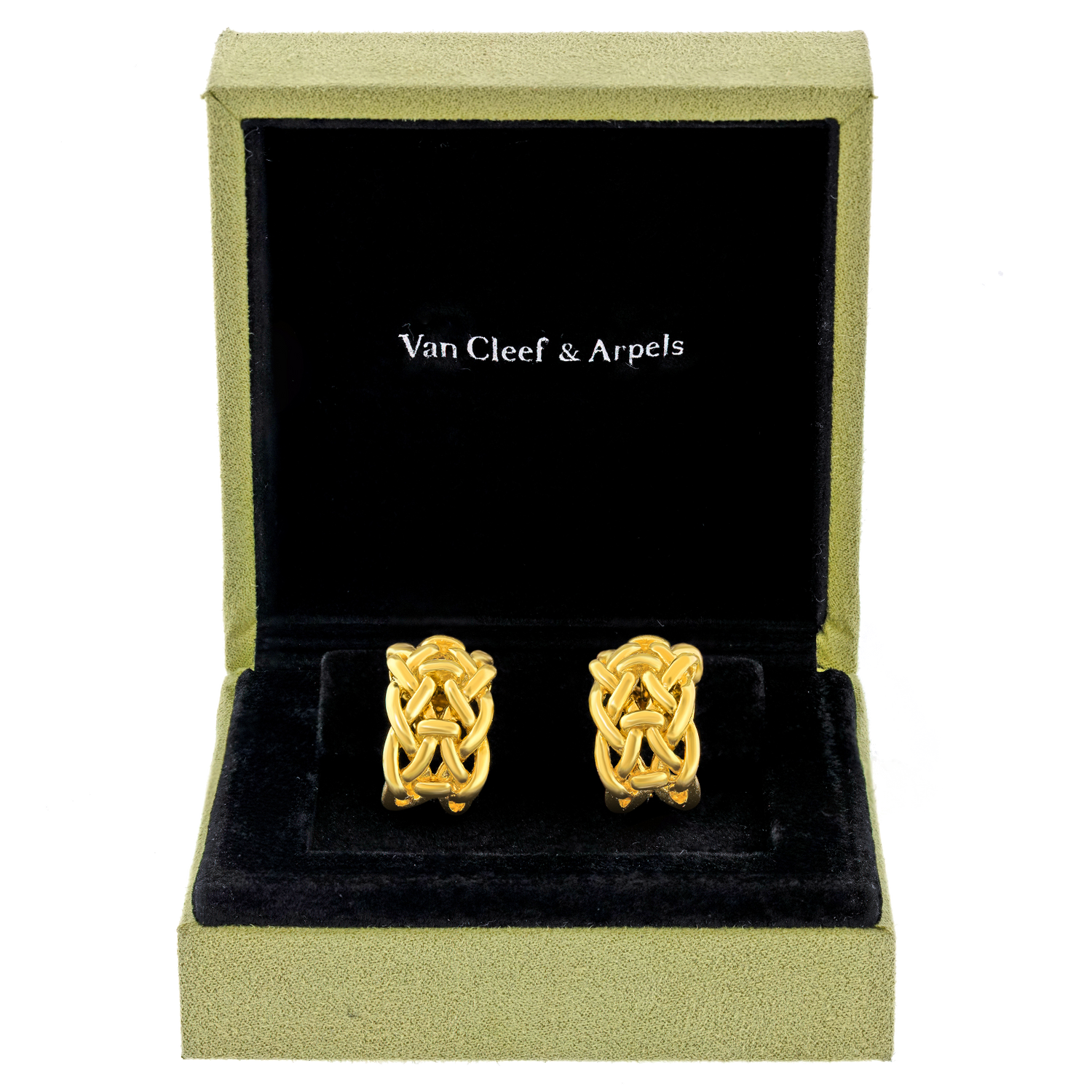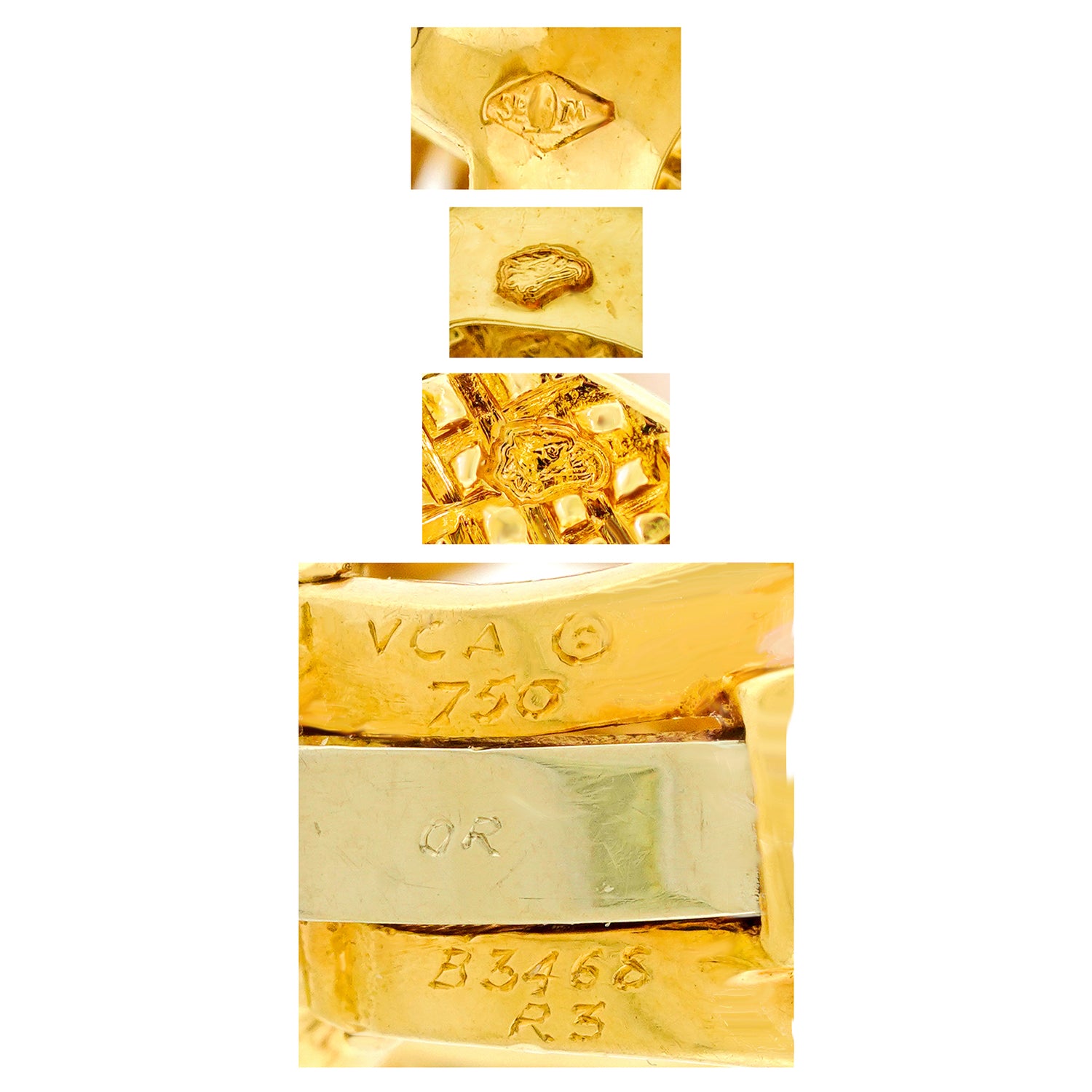 Circa 1960s, 18k, by Van Cleef & Arpels, France. These stylish Parisian earrings by the storied jewelry house, Van Cleef & Arpels, have that je ne sais quoi… that out-on-the-town French ease… that Paris girl grown-up glamour. Incredibly wearable and beautifully made, yellow gold earrings are a fashion must-have. Excellent condition.
