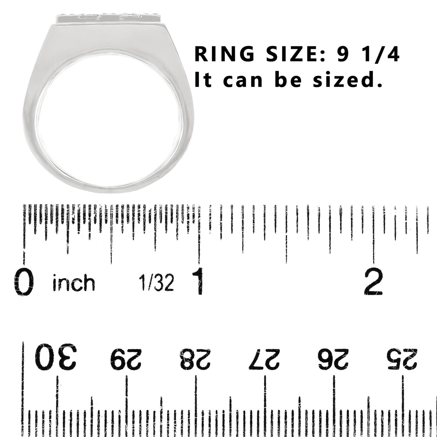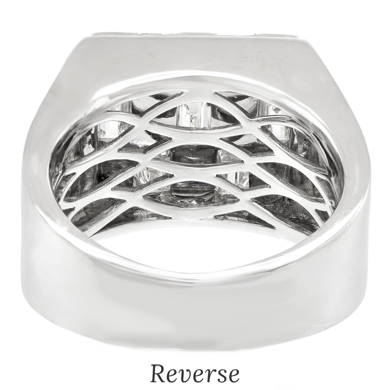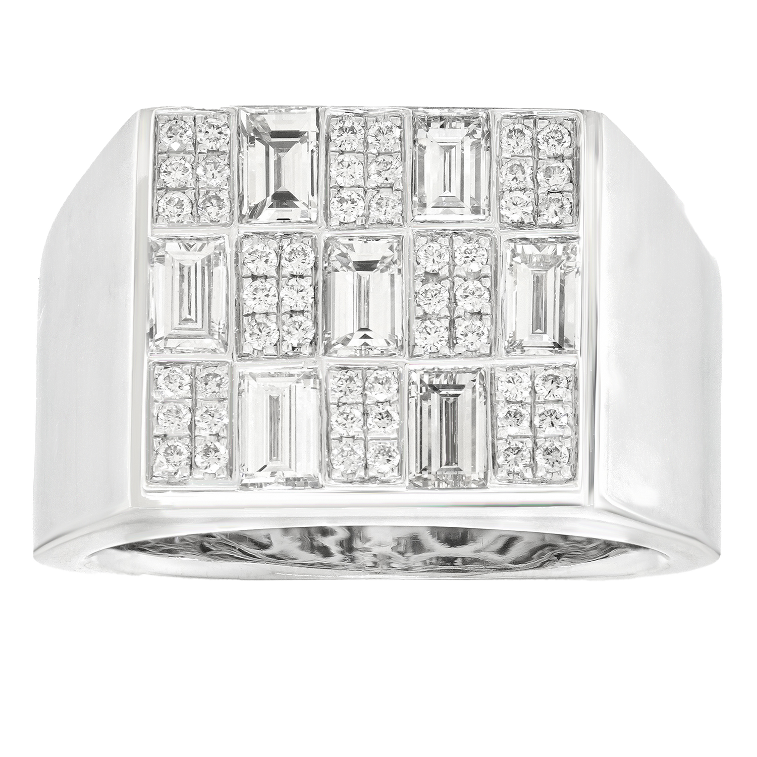 Circa 1960-70s, 18k, Swiss. Set with 2.23 carats of brilliant white diamonds (F color and VS clarity), the look is elegantly "in your face". The juxtaposition of round and emerald-cut diamonds gives the ring visual texture. Beautifully made, it is in excellent condition.