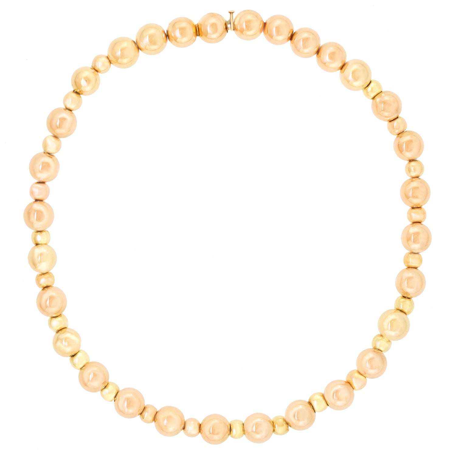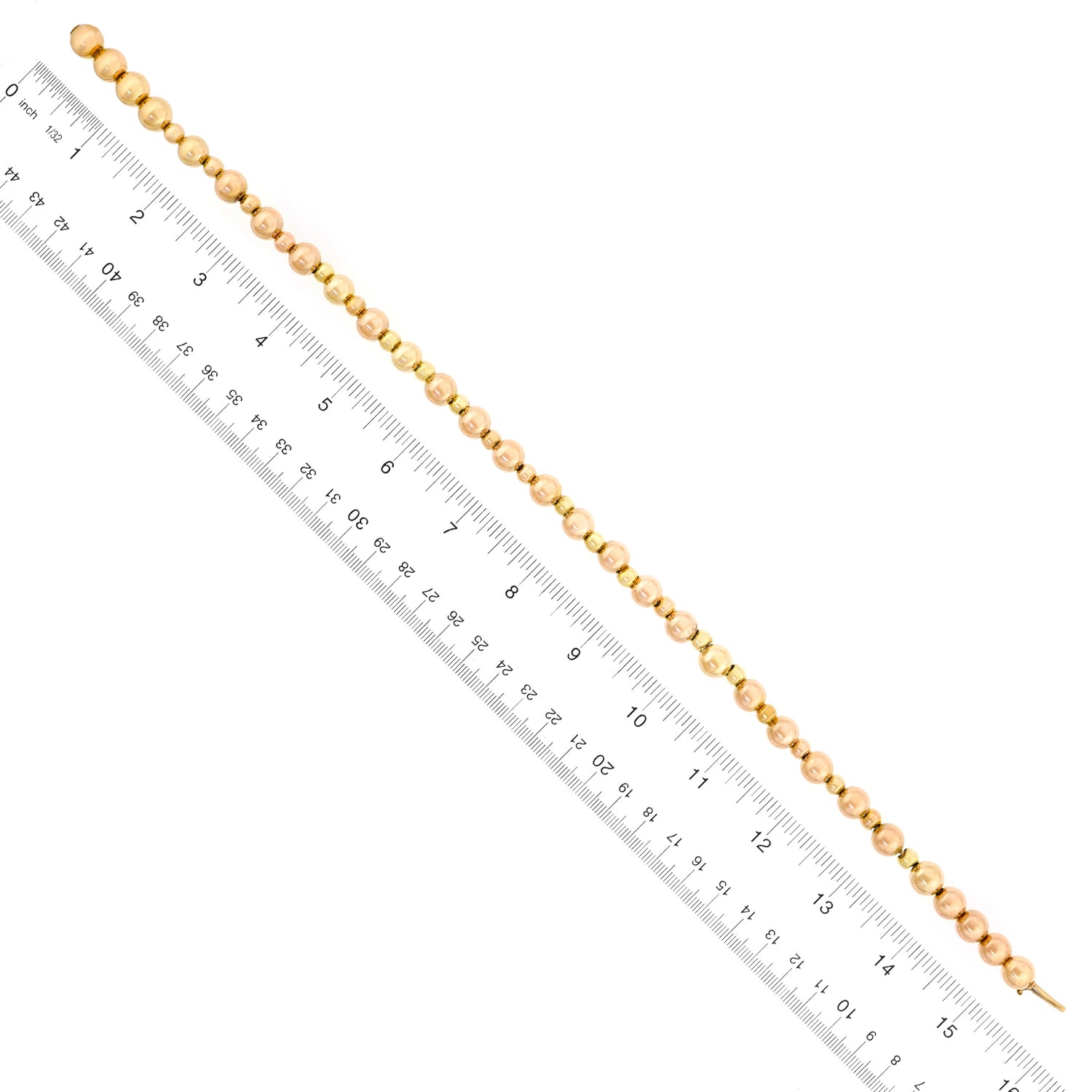 Circa 1890s, 14k, American. Gold beads have been a “put them on and go” staple since the Victorian era. And antique gold beads are even more stylish… they lend authenticity to modern fashion. The alternating size motif is understated chic at its vintage best. Excellent condition.