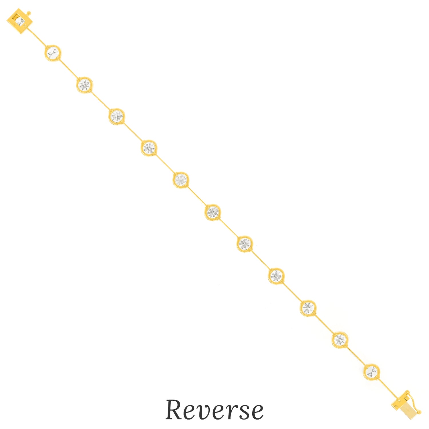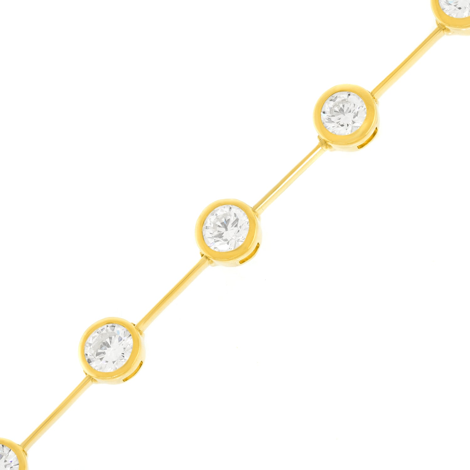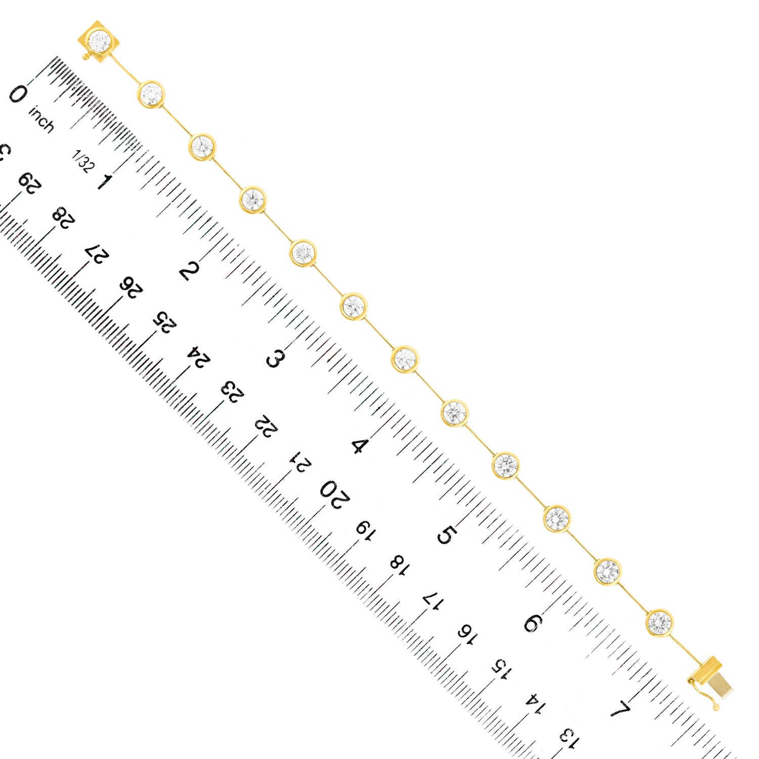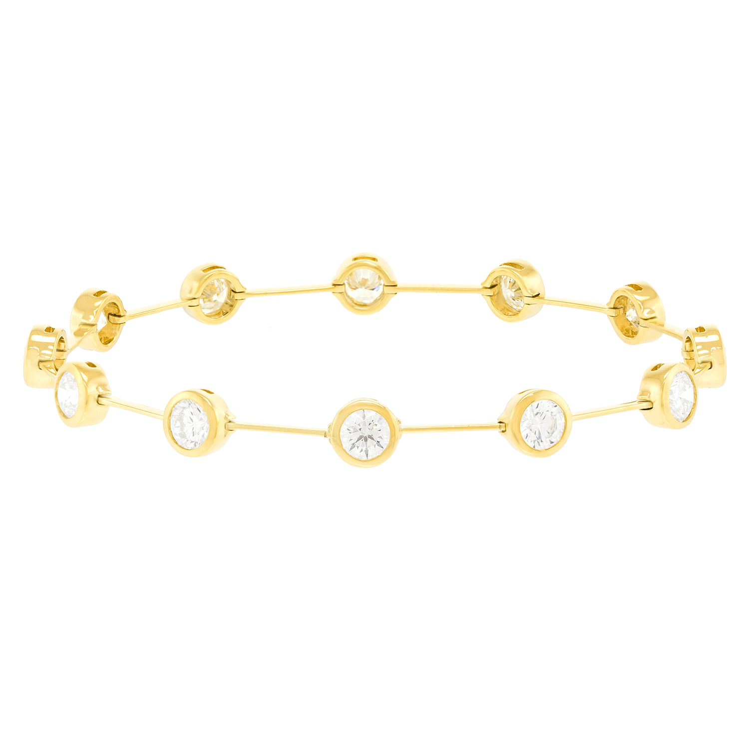 Circa 2000s, 18k, American. Set with 5.0 carats of brilliant white diamonds (G color, VS clarity), this contemporary bracelet features collet-set diamonds and sleek lines of gold. Its breezy everyday look is exquisitely underscored by fine fabrication, large individual stones, and elegant design work. This bracelet is in excellent condition.