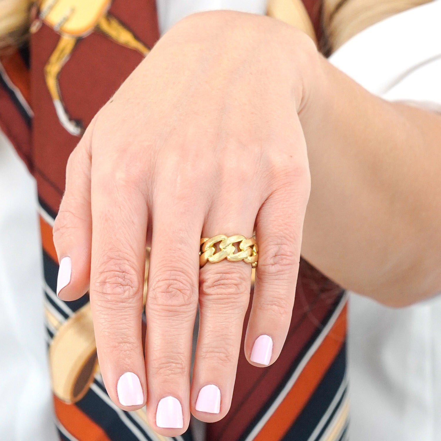 Circa 1980s, 18k, by Varna. This 18k yellow gold ring is the perfect everyday accessory. The chic chain motif is timeless. Finely fashioned, it is at home in any moment of fashion. Excellent condition.