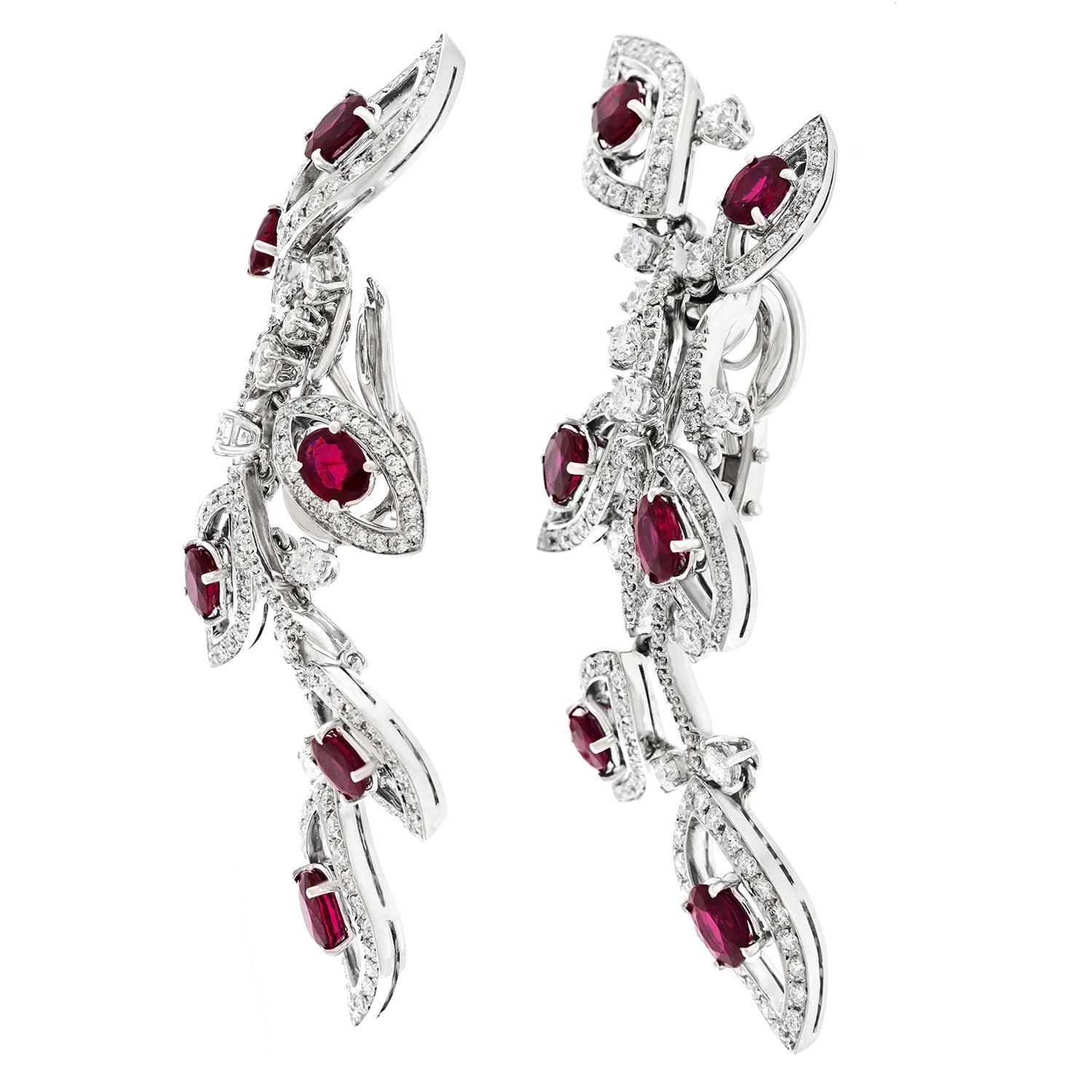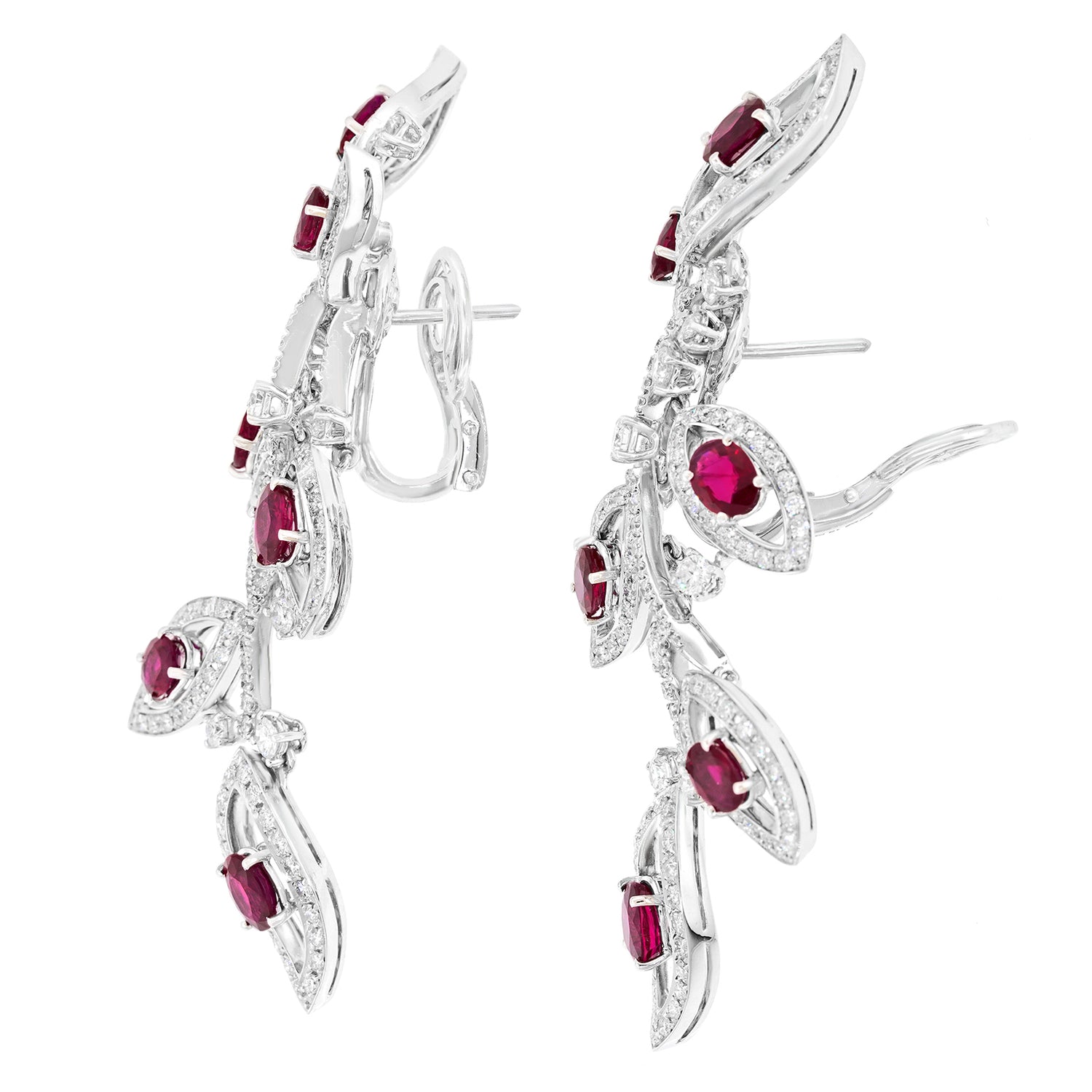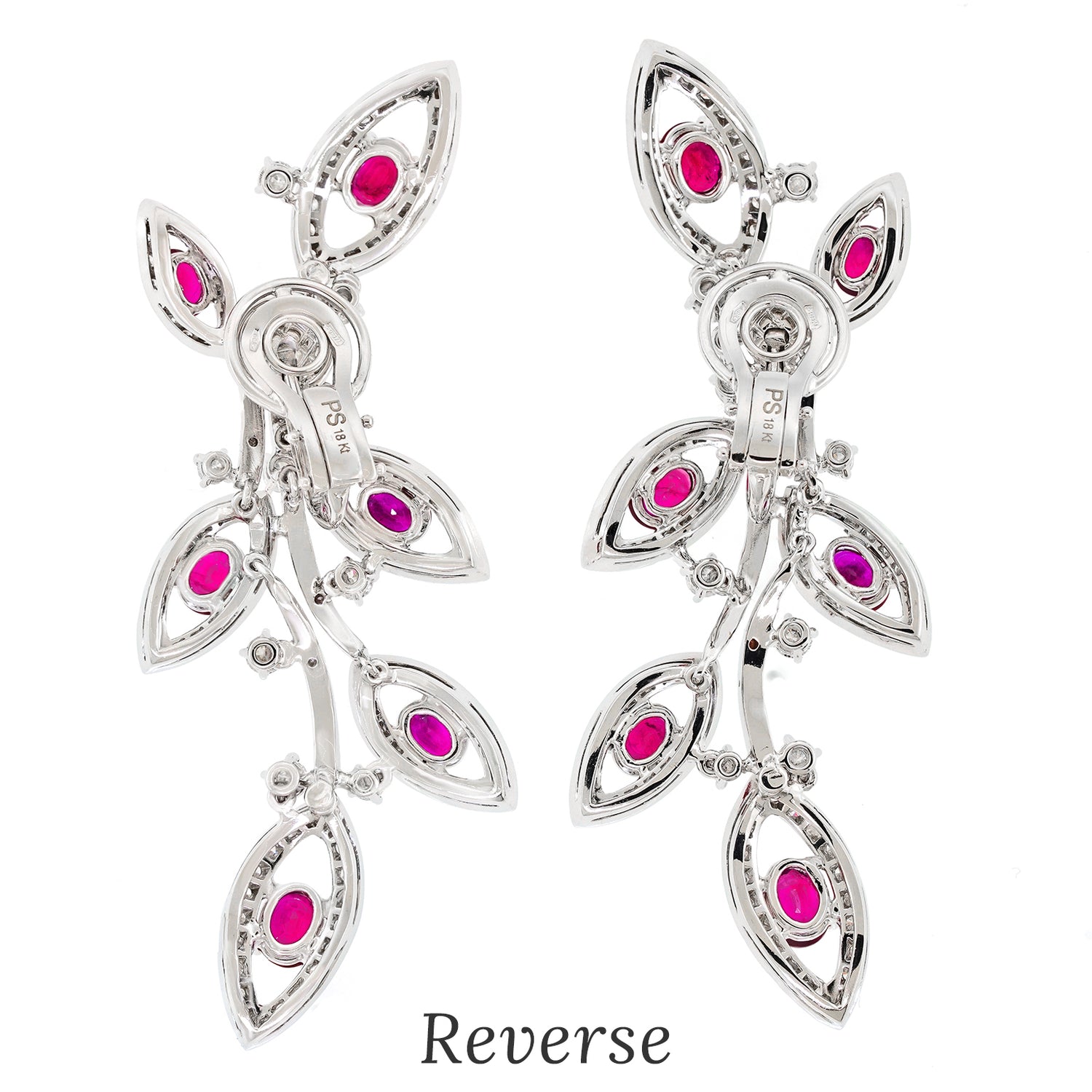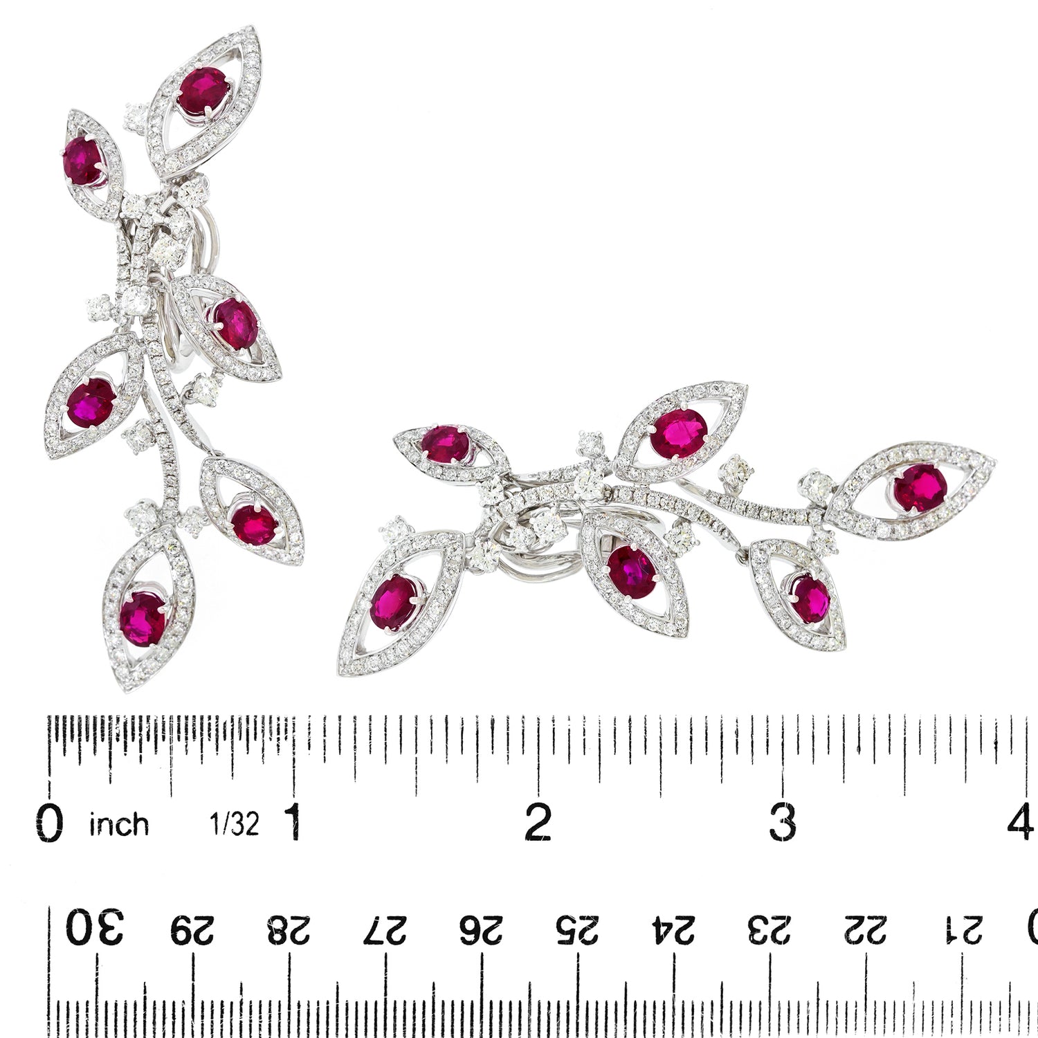 Circa 1990s, 18k, Italy. These gorgeous earrings feature 7.0 carat vibrant rubies and 5.0 carats of fine white diamonds (G color, VS clarity). Classically elegant yet wildly Italian, the look is underscored by superb craftsmanship. Excellent condition.