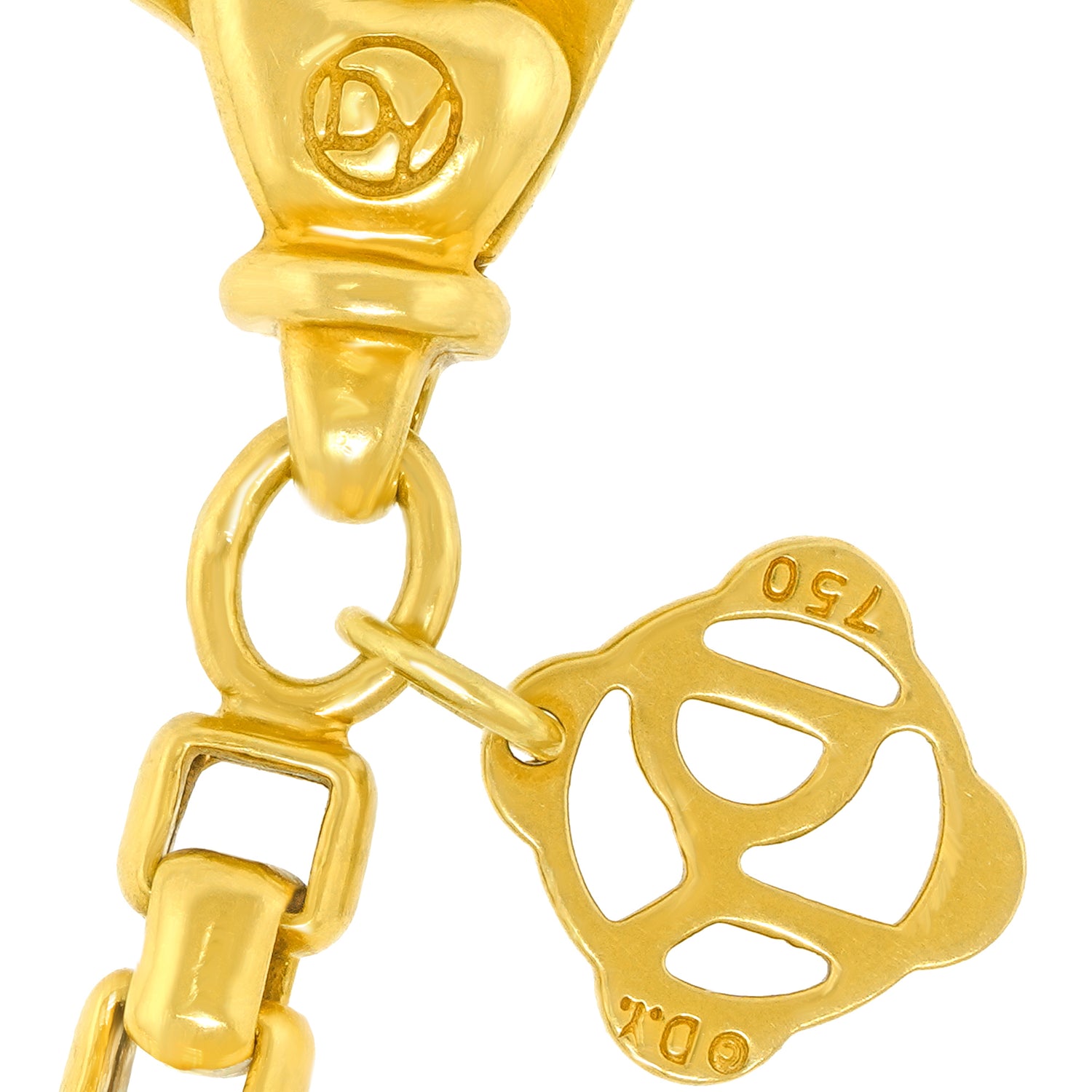 Circa 2000s, 18k, by David Yurman, American. Tasteful and tailored (David Yurman's sweet spot). This is your goes-everywhere, does-everything yellow gold necklace! Instantly chic, the modernist link is underscored by the 18-inch length and all-gold look. This necklace stands alone and looks great as part of a necklace stack. Quality fabrication completes the picture. Excellent condition.