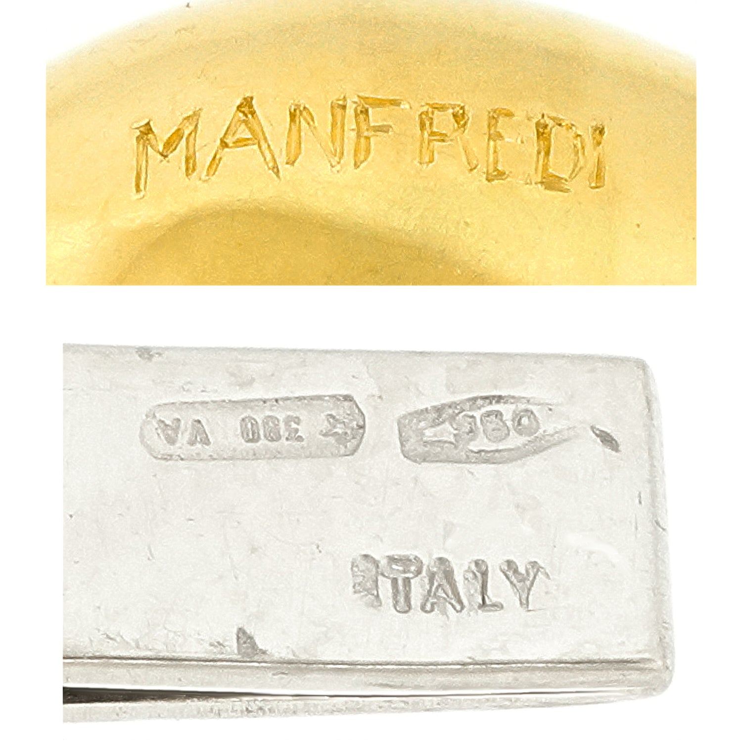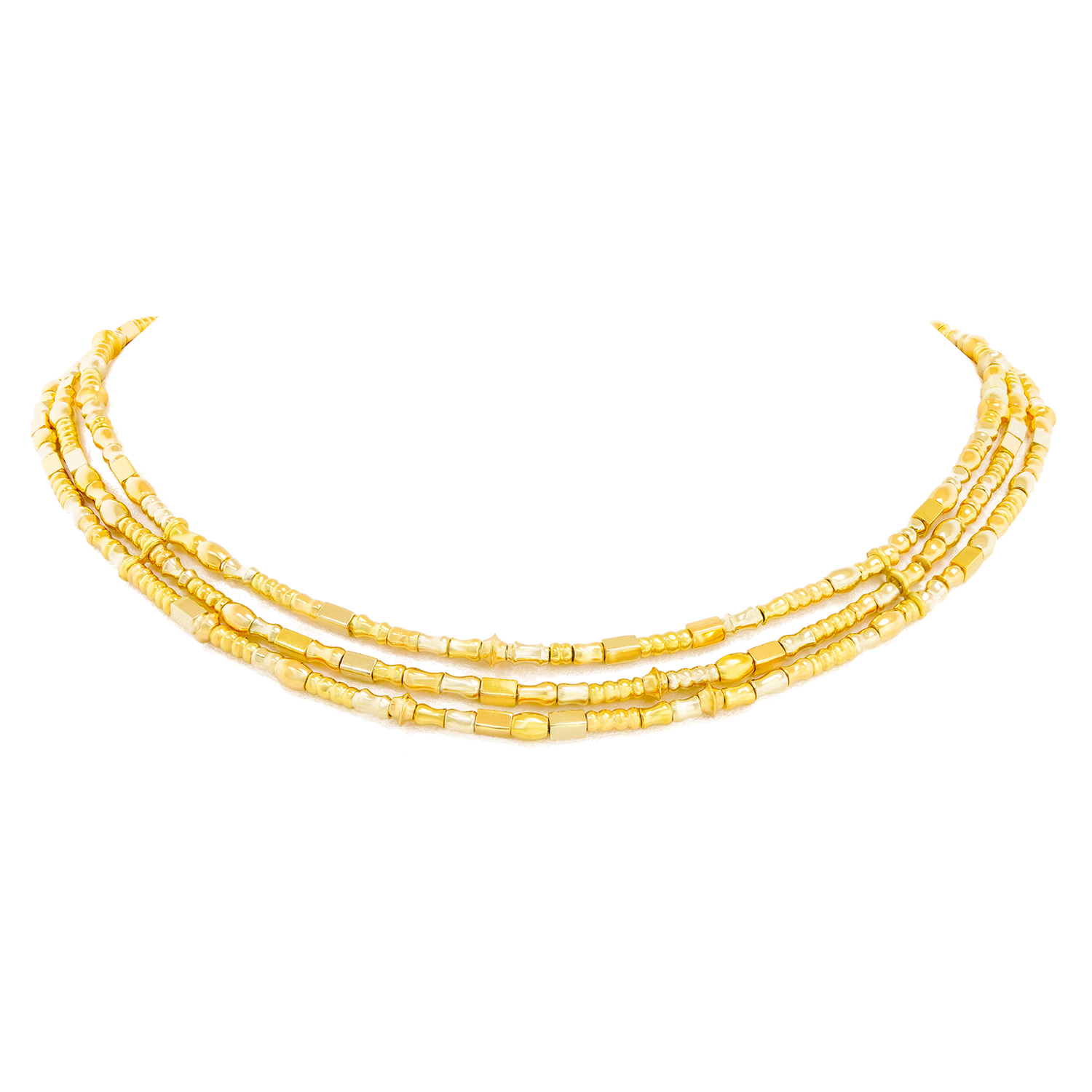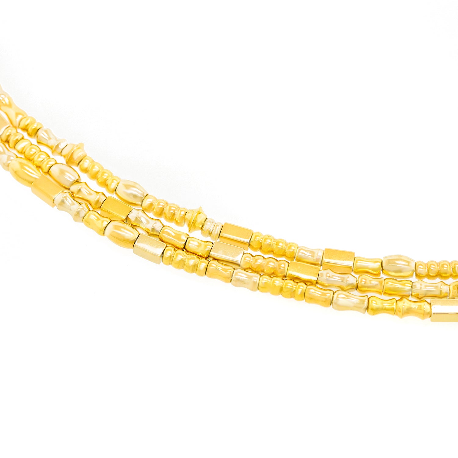 Circa 1980s, 18k, by Manfredi, Italy. This chic three-strand necklace is all about the chunky gold beads, the look is old-world chic. Known for their revival of Byzantine style, quality workmanship, and fashion-forward designs, Manfredi pieces seamlessly mix the old and the new worlds Italian style. Finely fashioned, this comfortable, heavy necklace, is in excellent condition.