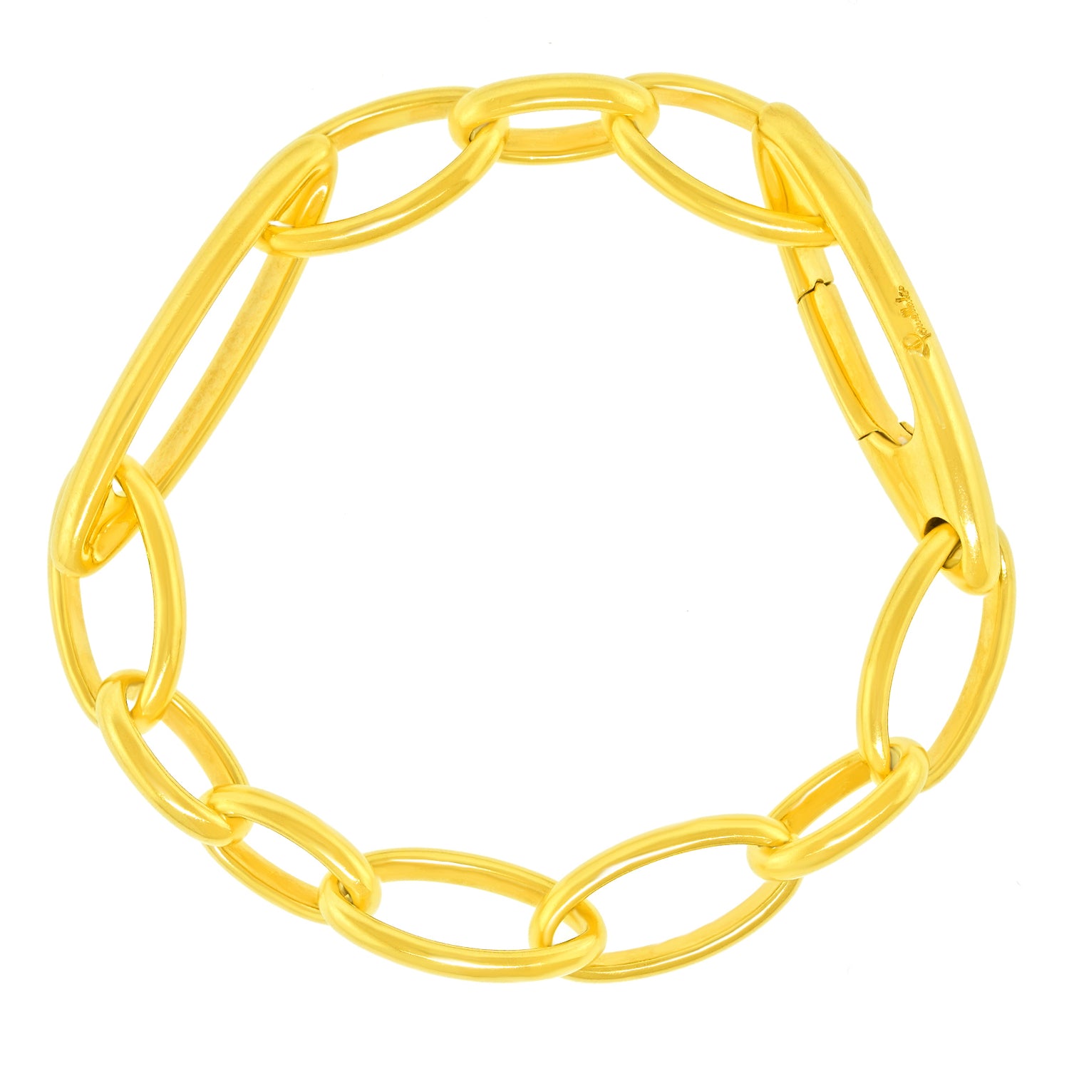 Circa 1990s, 18k, by Pomellato, Italy. This ultra-chic Pomellato bracelet epitomizes effortless Italian style. Yellow gold links of varying shapes and sizes create physical dimension and visual excitement. Expertly made with signature Pomellato craftsmanship, this bracelet is in excellent condition.