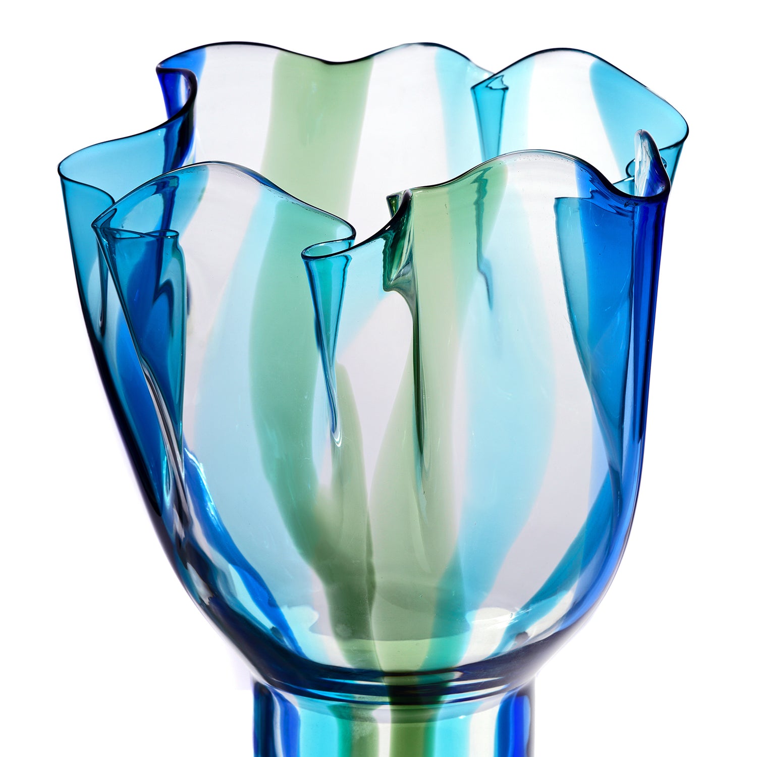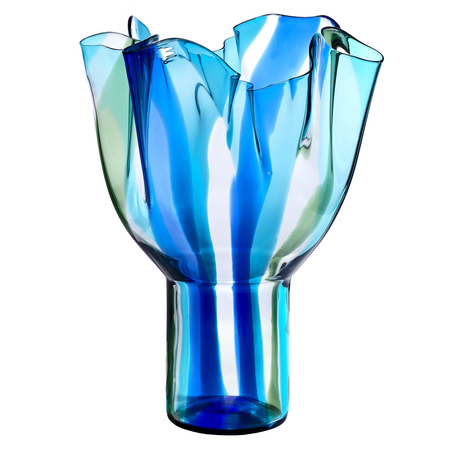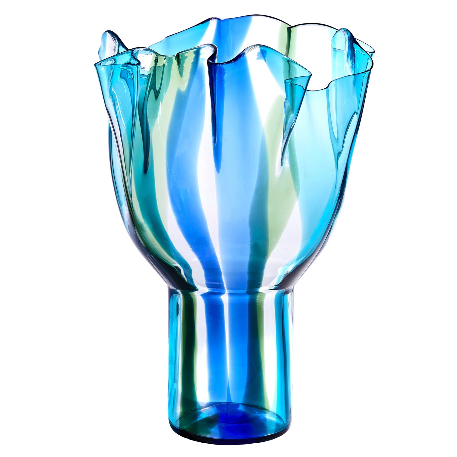 Circa 1990s, designed by Timo Sarpaneva of Helsinki, Finland, for the Venini Glassworks Venice. The "Kukinto" vase is a masterwork of Italian glassmaking, perfect for any decor. The lush shade of green and blue delicately underscores its huge size. Excellent condition.