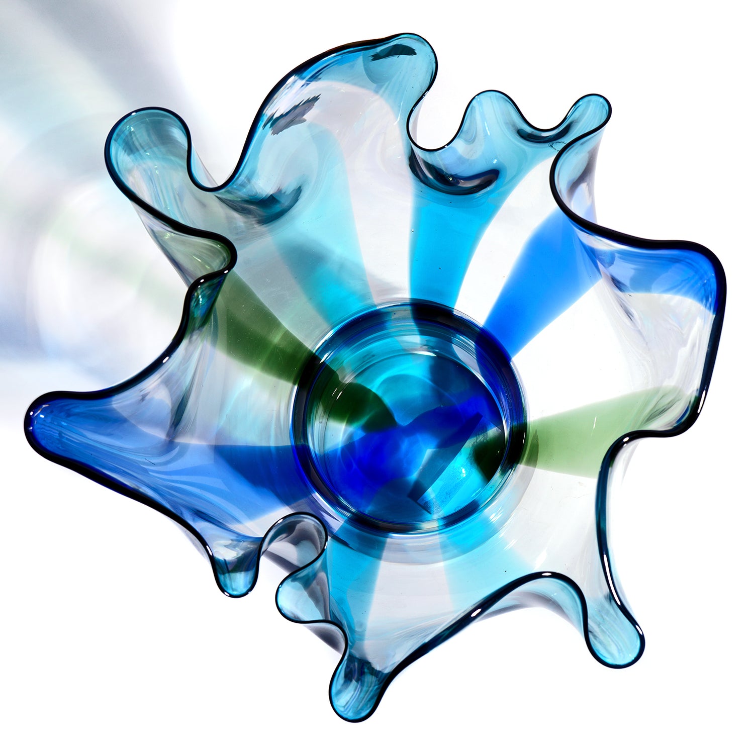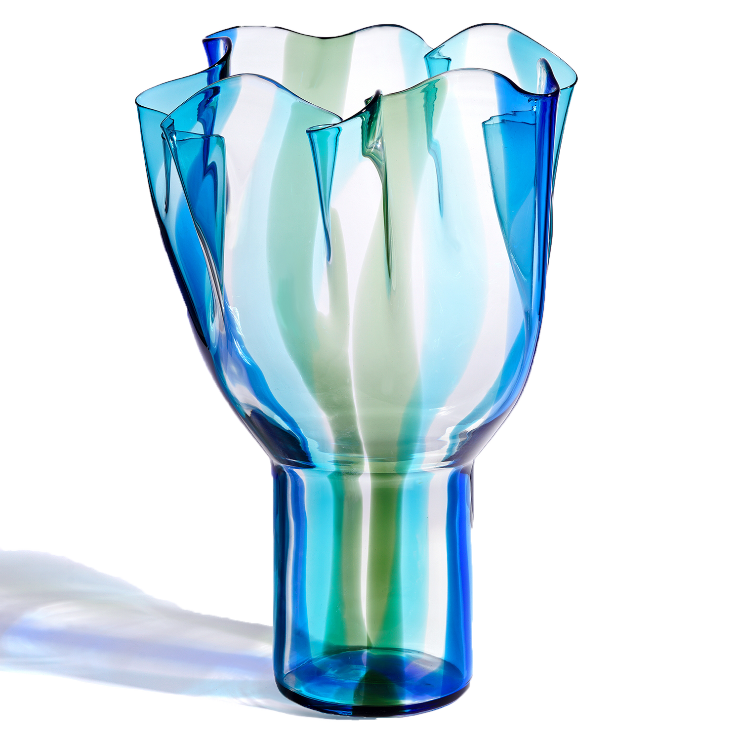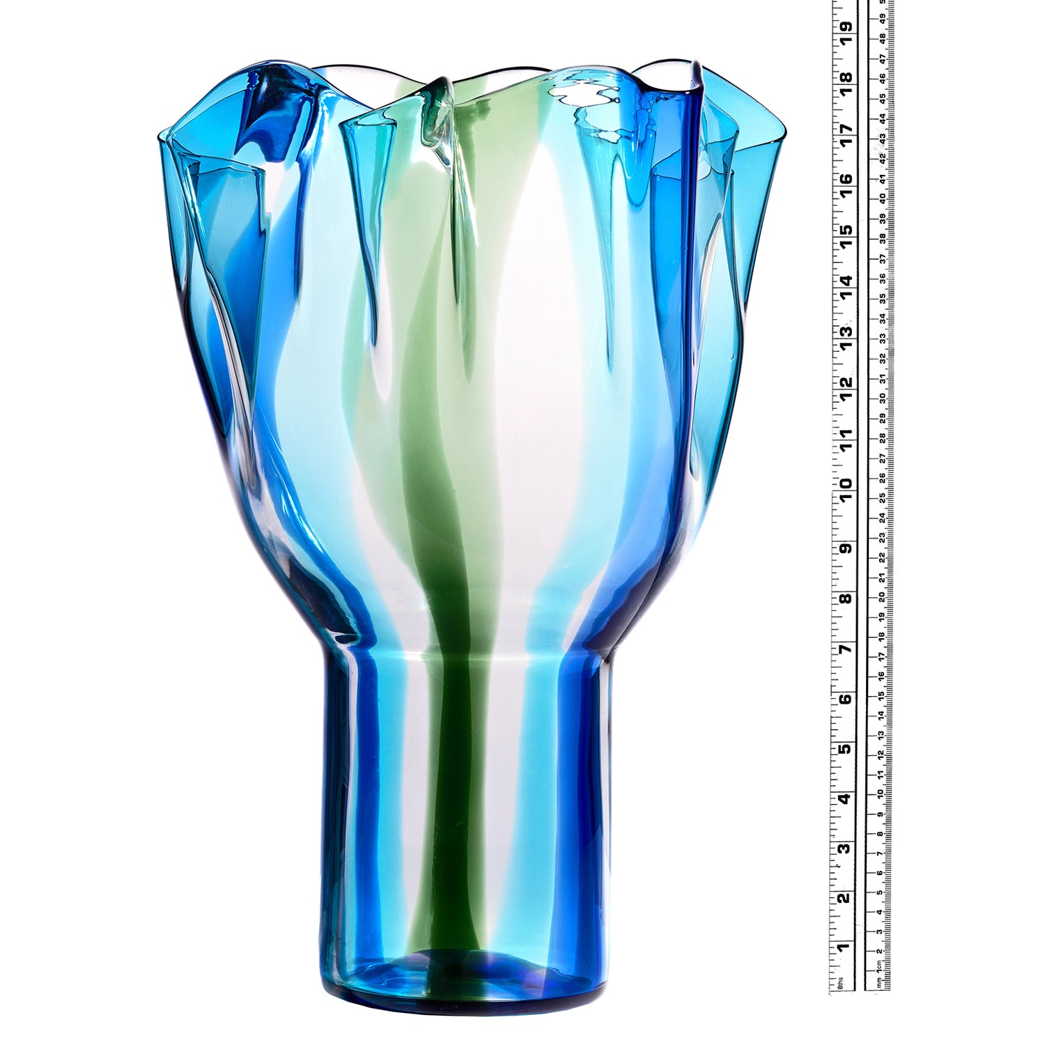 Circa 1990s, designed by Timo Sarpaneva of Helsinki, Finland, for the Venini Glassworks Venice. The "Kukinto" vase is a masterwork of Italian glassmaking, perfect for any decor. The lush shade of green and blue delicately underscores its huge size. Excellent condition.