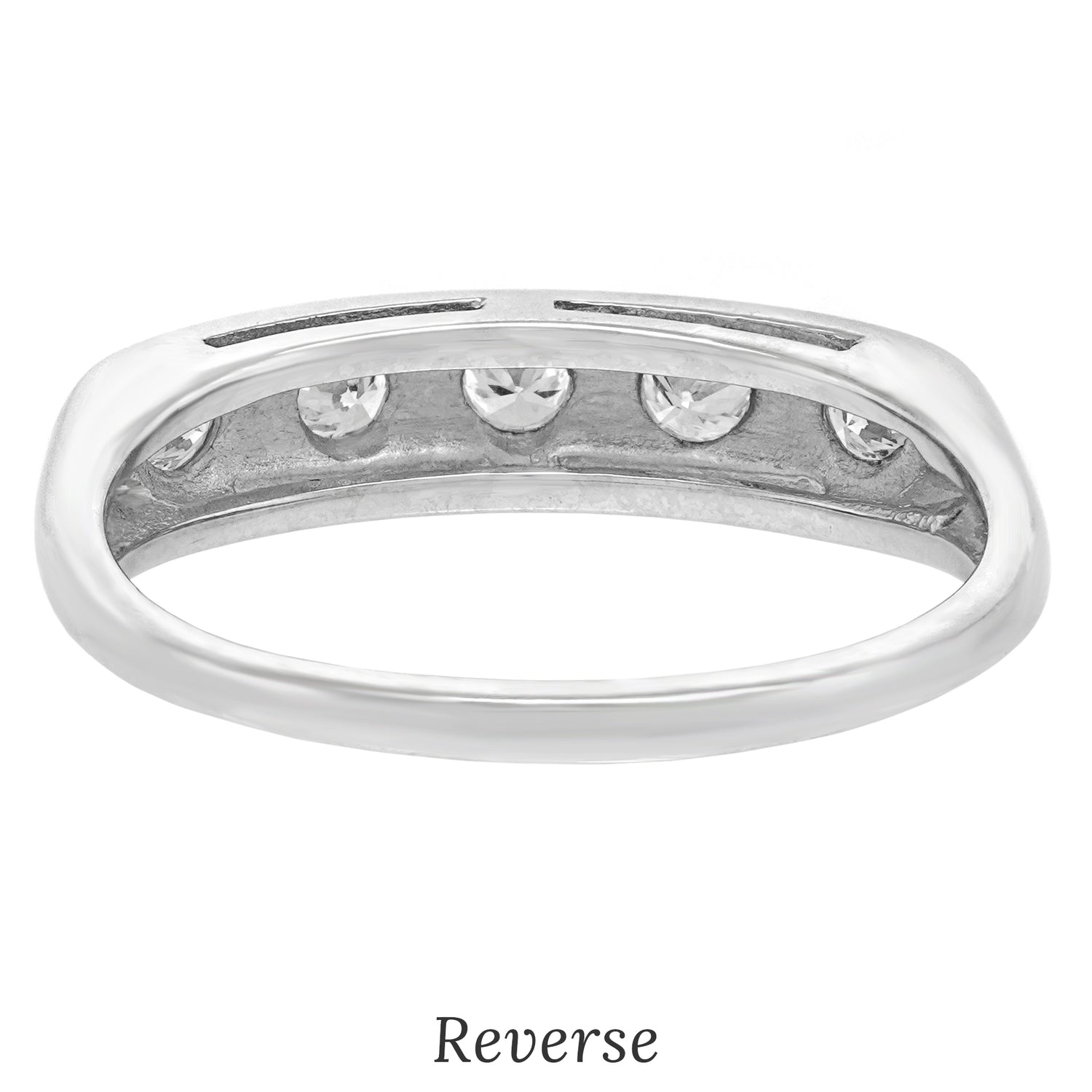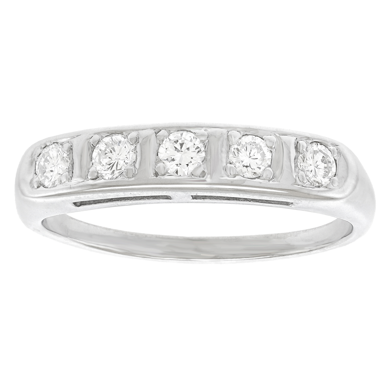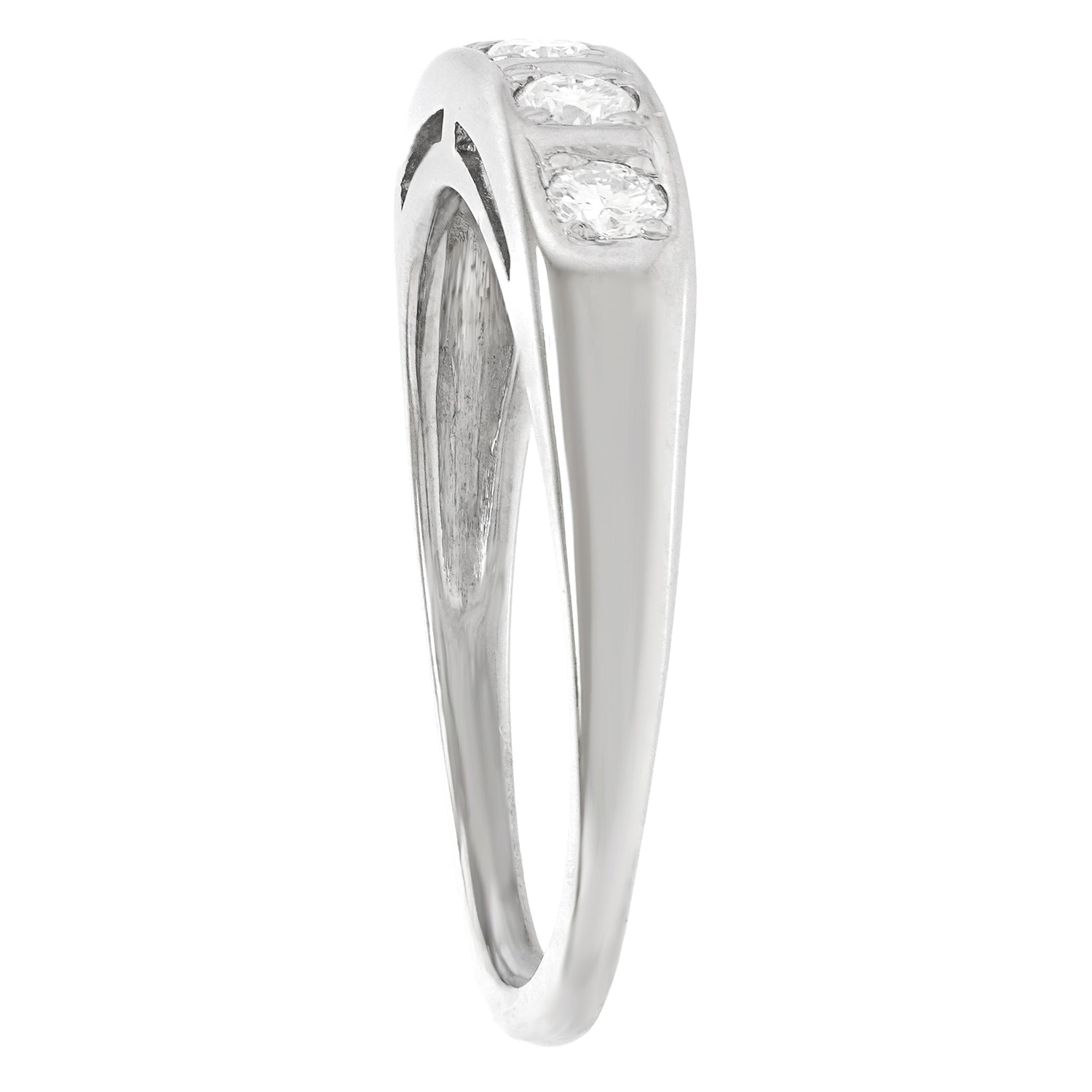 Circa 1960s, Platinum, American. This chic sixties ring is all about the fine white diamonds (.50 carats total weight of H color, SI1 clarity). Redolent of Deco, it is perfect on its own and fabulous as a stacking ring. Well-made in platinum, this ring is in excellent condition.