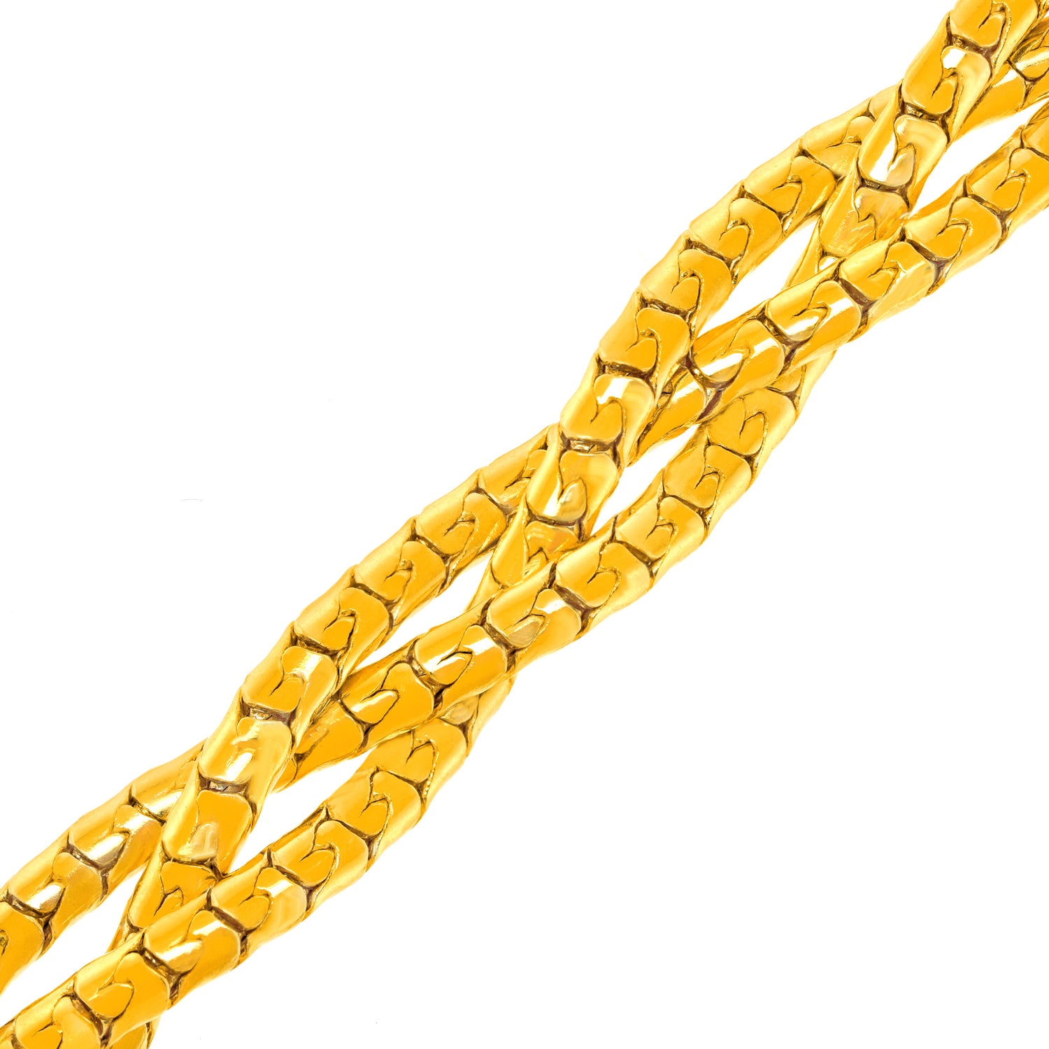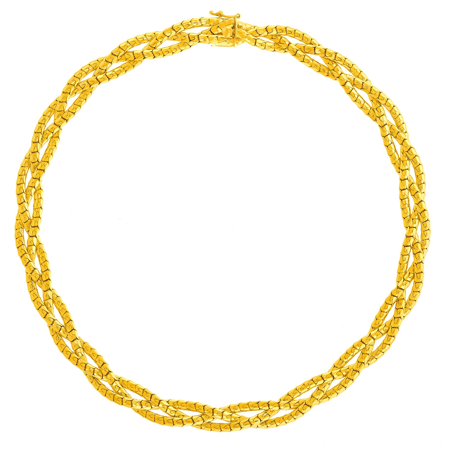 Circa 1960s 14k American. This wonderful sixties gold necklace has a distinctive look, perfect for any moment of fashion. It is comfortable on with just the right amount of flex in the entirely handmade design. Its 16-inch length is perfect. Excellent condition.