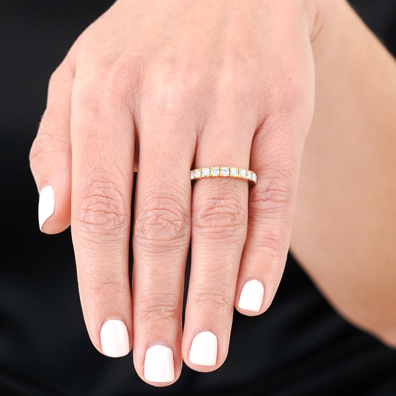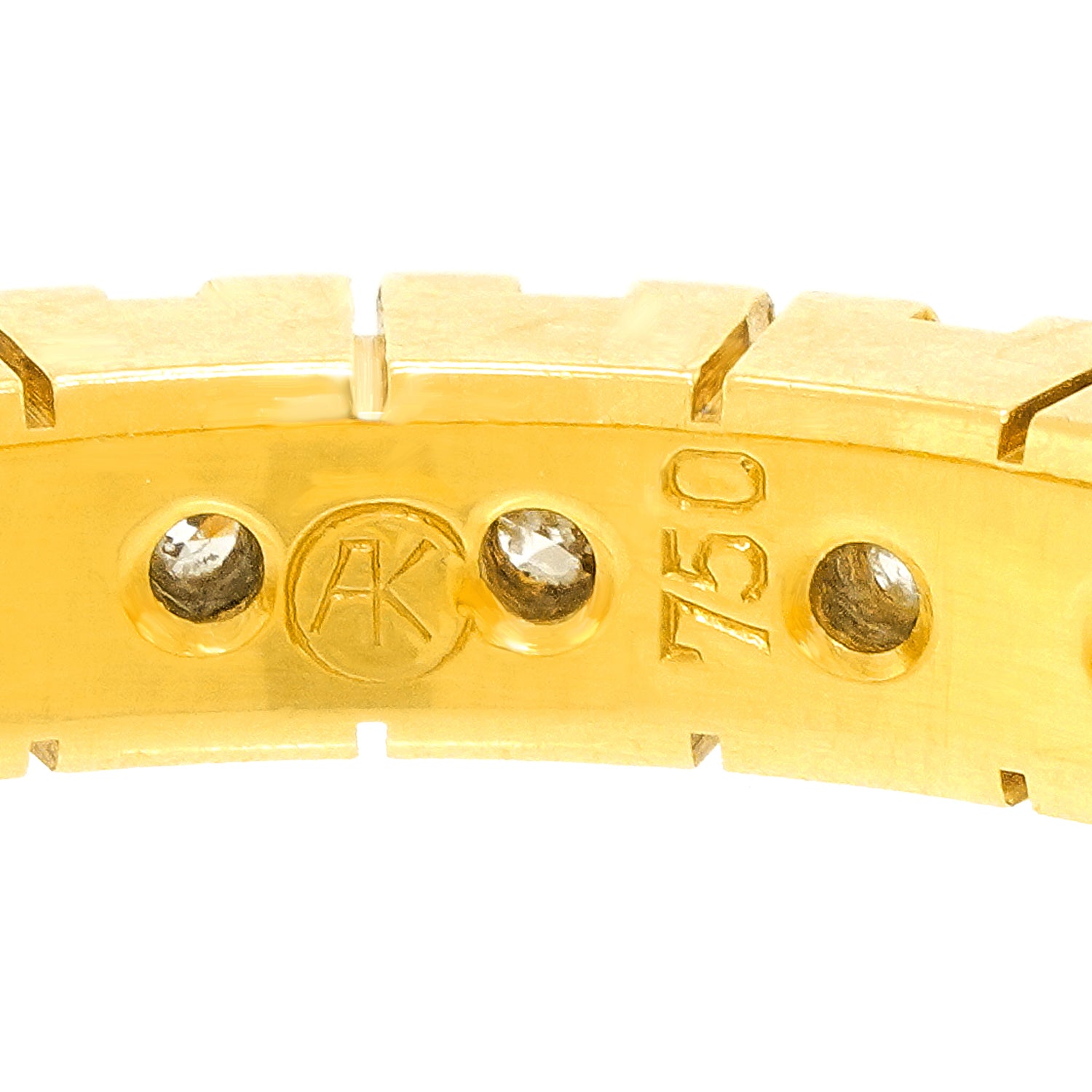 Circa 1970s, 18k, by Kurz, Zurich. This 18k ring has it all -- superb fabrication, fine white diamonds (H color, VS Clarity), and a design that effortlessly blends post-modern style with sixties chic. The look is effortless cool for the anywhere, anytime Zurich style! Kurz is known for. Quality fabrication, superb designs, and fine stones complete the narrative. Excellent condition.