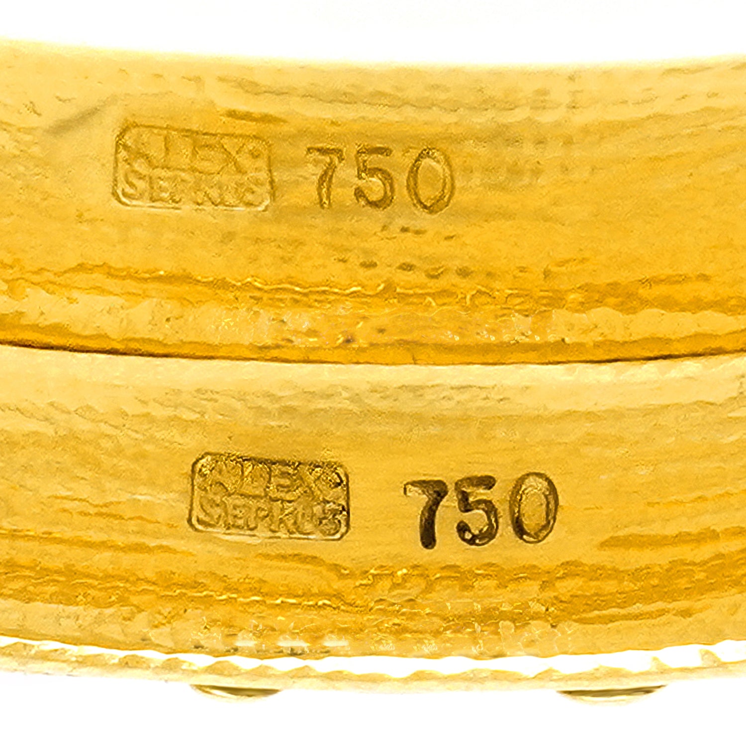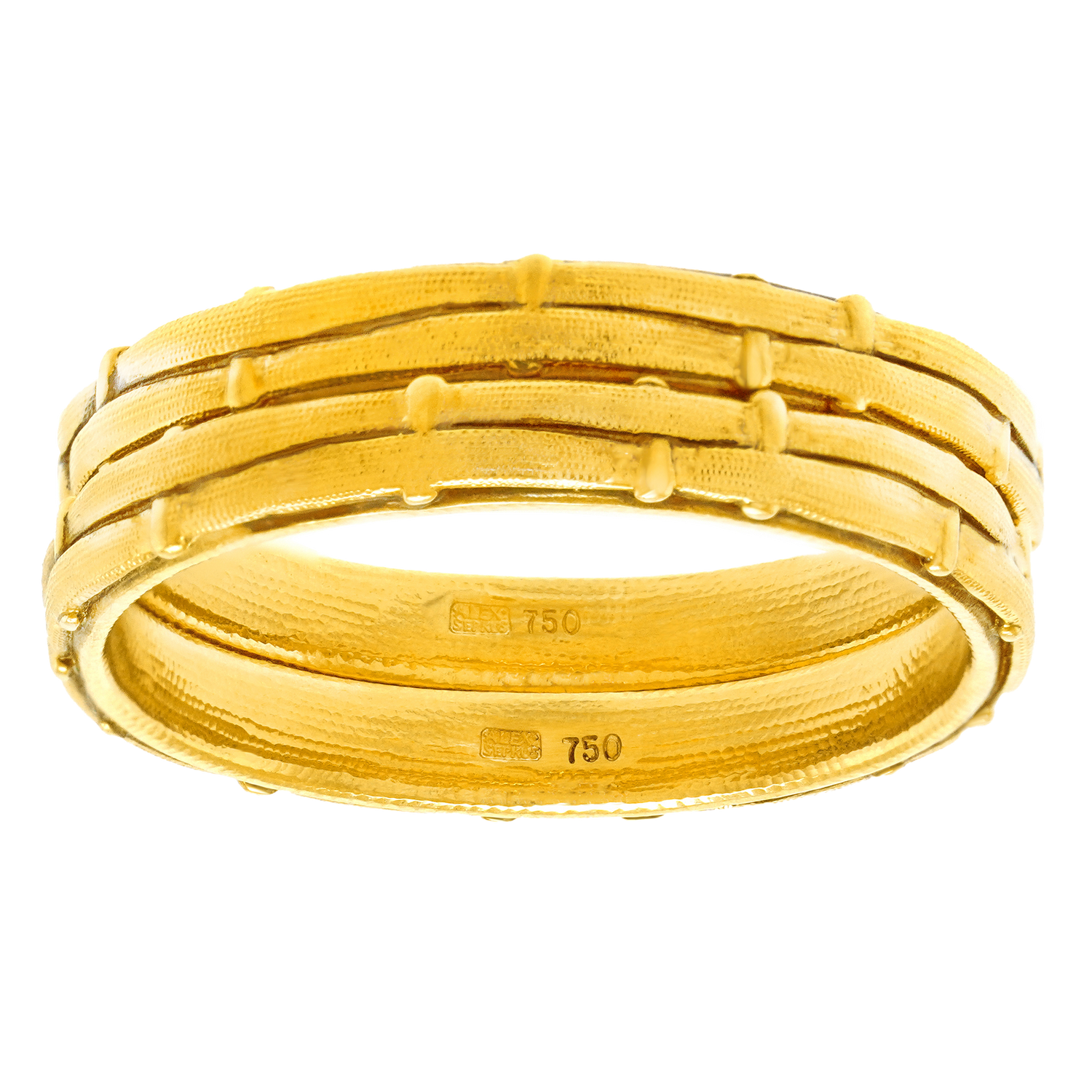 Circa 2000s, 18k, by Alex Sepkus, New York. This fabulous pair of rings by Alex Sepkus is all-gold perfection. His work is instantly recognizable, inspired, and timeless. Perfect as fashion rings, these size 9 rings are in excellent condition.
