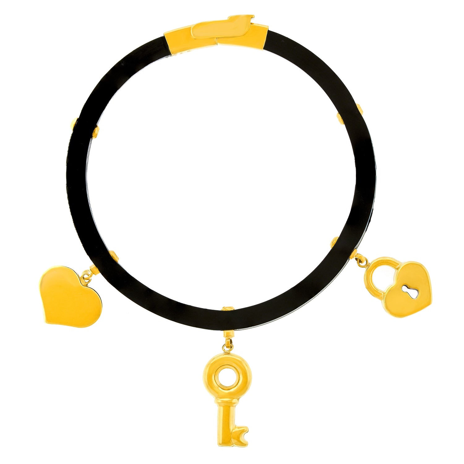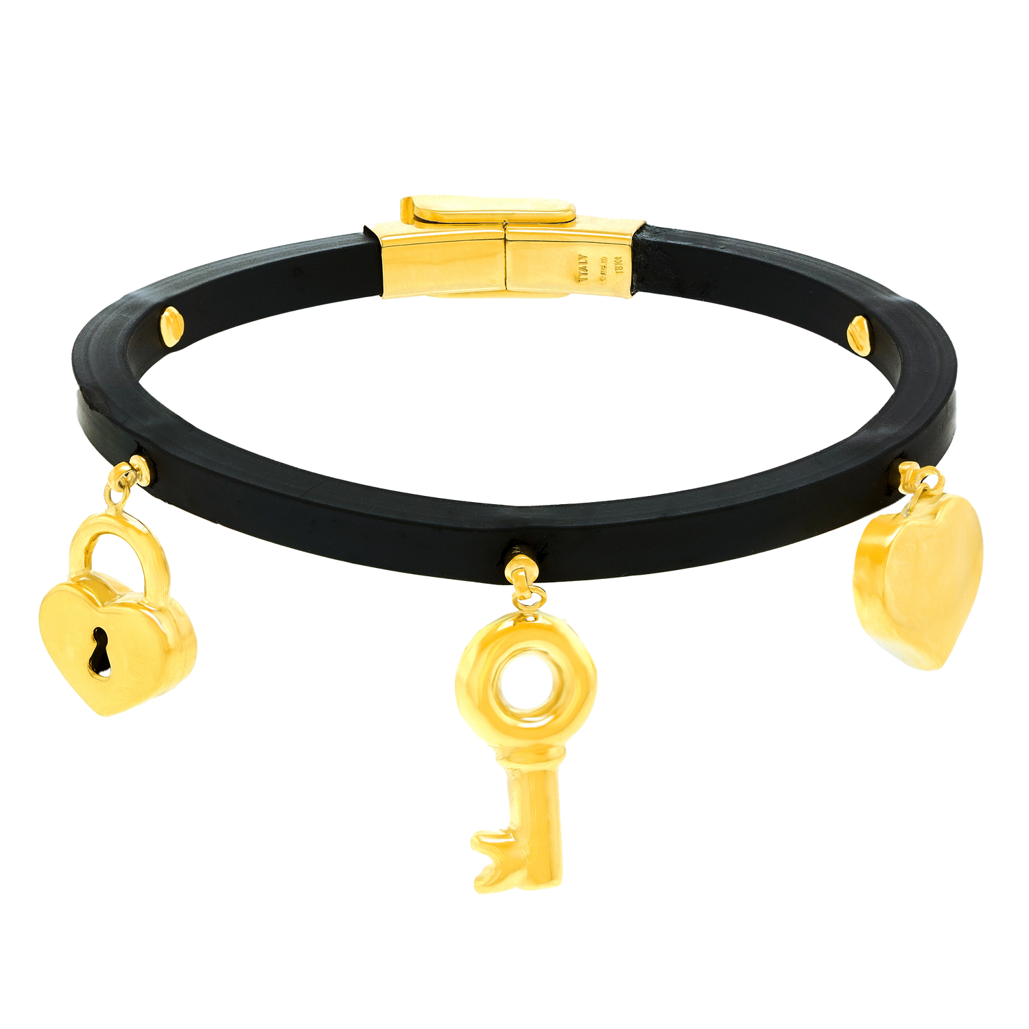 Circa 2000s, 18k and Rubber, Italy. Ever playful and always chic, Italian jewelry is a visual delight. This rubber and eighteen-karat gold bracelet is perfect for your Dolce Vita life. Easy to wear, it effortlessly goes to the beach or work. Excellent condition.