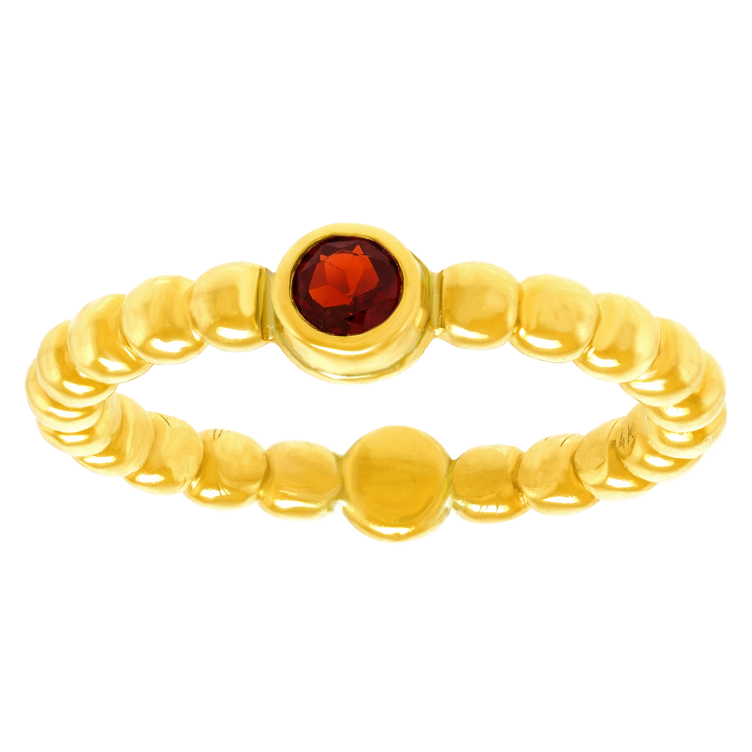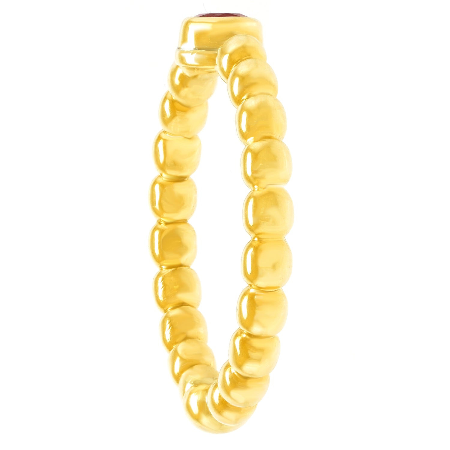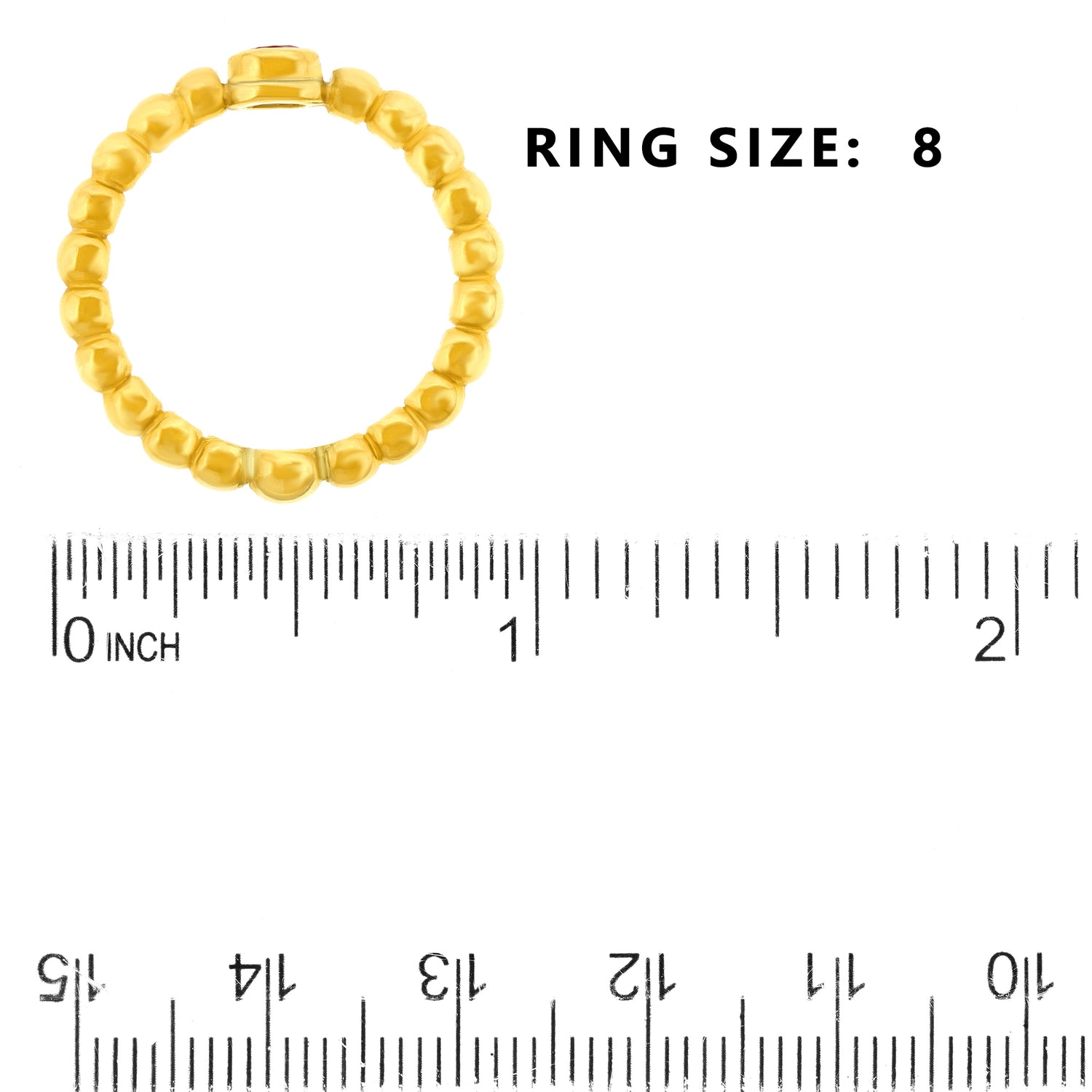 Circa 2000s, 14k, American. This playful ring features a vivid garnet and bead motif in goldwork. Perfect on its own or great for stacking. Finely fabricated, it is in excellent condition.