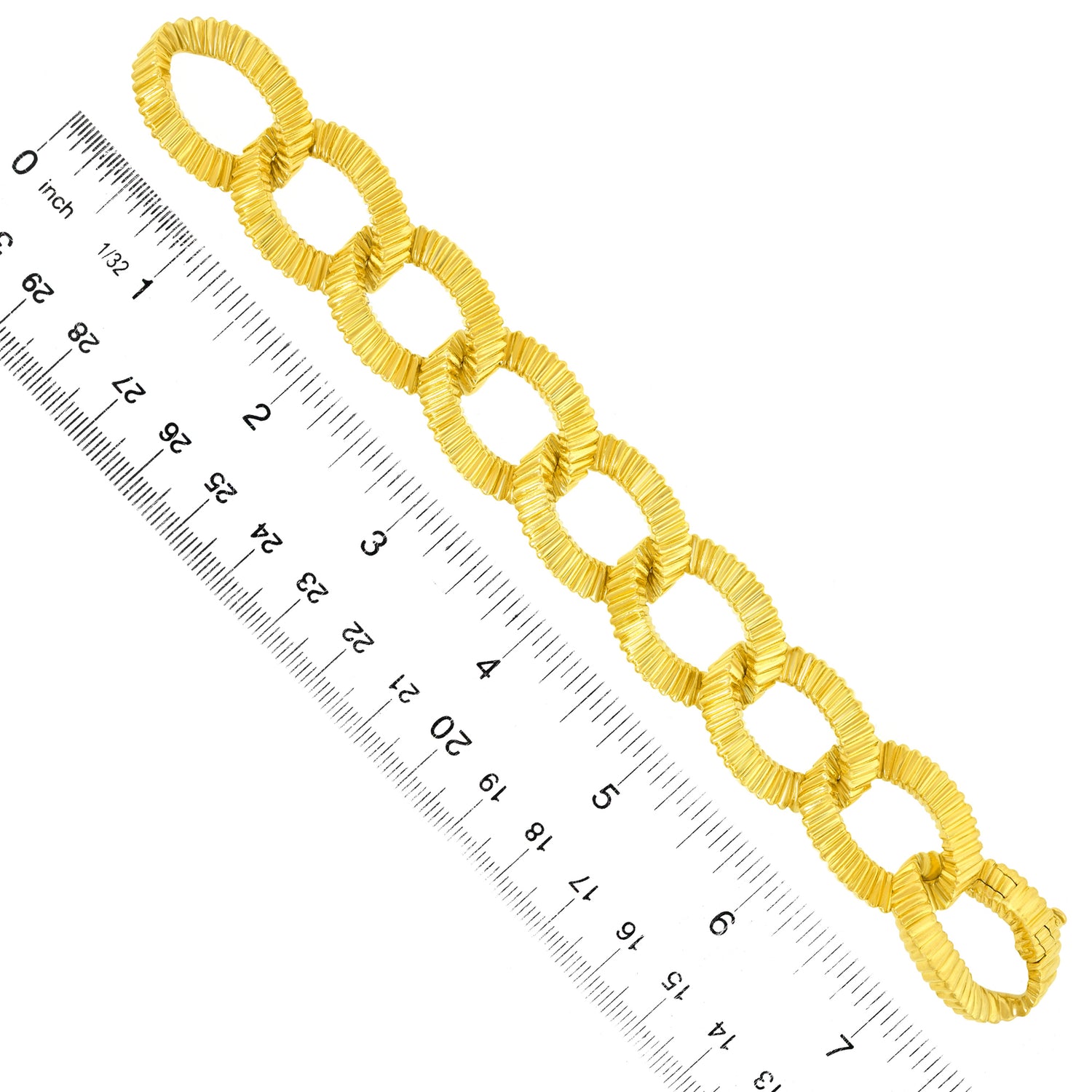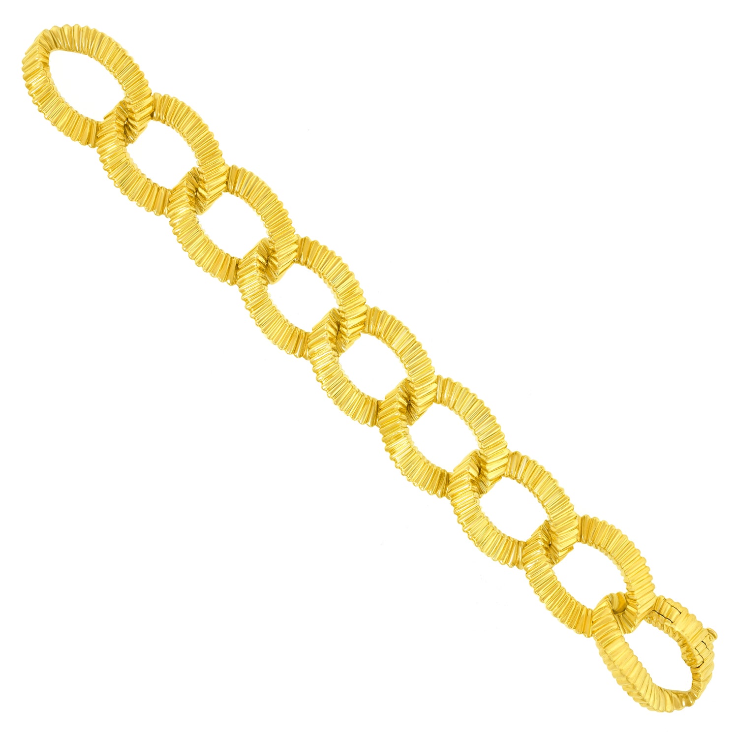 Circa 1998, 18k, by Tiffany & Co., New York.   This chic nineties ribbon motif bracelet from Tiffany & Co. is iconic everyday fashion. The look is stylish and confident, the ideal signature yellow gold bracelet. Superbly made, it is in excellent condition.