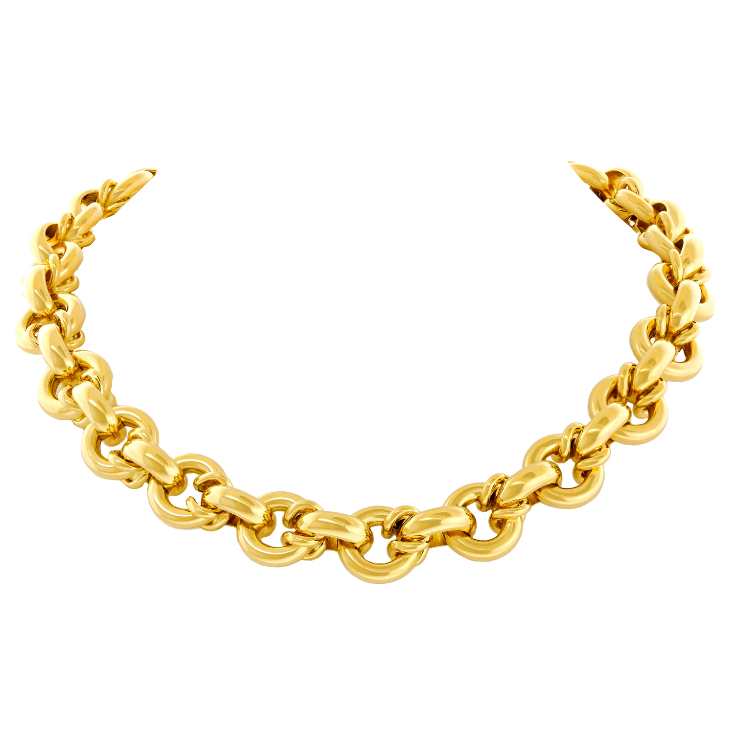 Circa 1970s, 18k, by Tannler, Zurich, Switzerland. This elegant eighteen-karat gold necklace is the perfect signature accessory for everyday. The delightfully heavy links have a chic streamlined design that is confidently stylish. Finely fashioned by the esteemed Zurich goldsmith, Tannler, the superb quality they were renowned for is wonderfully evident. Excellent condition.