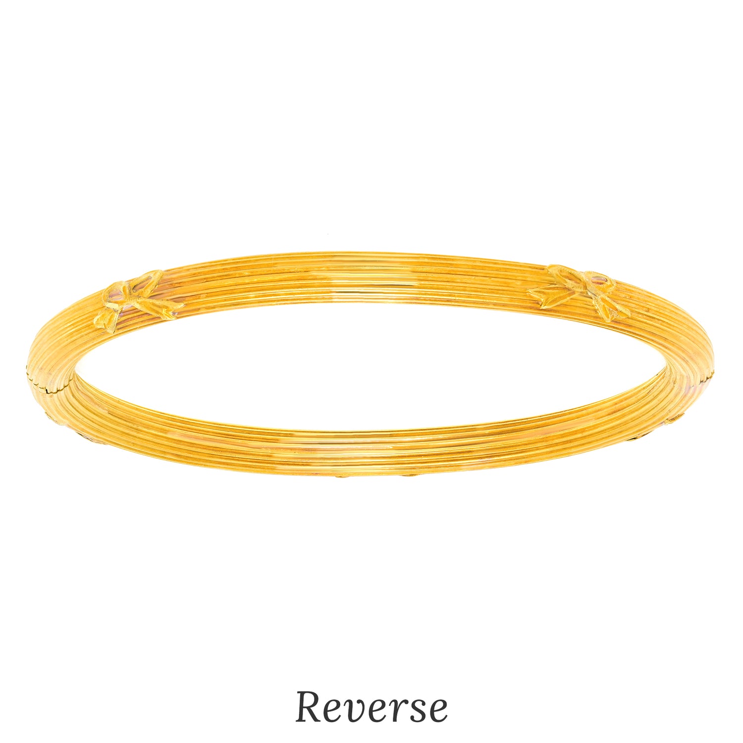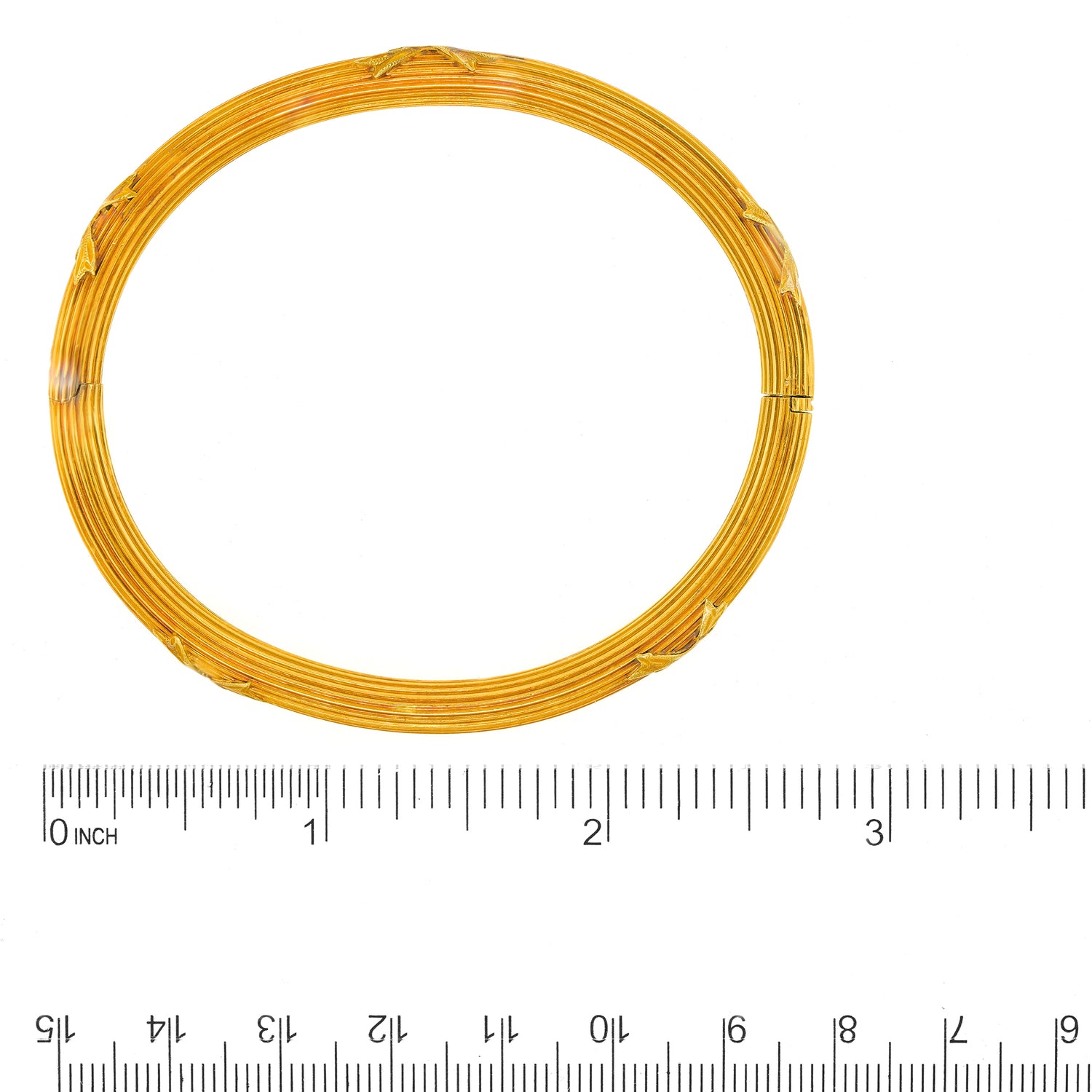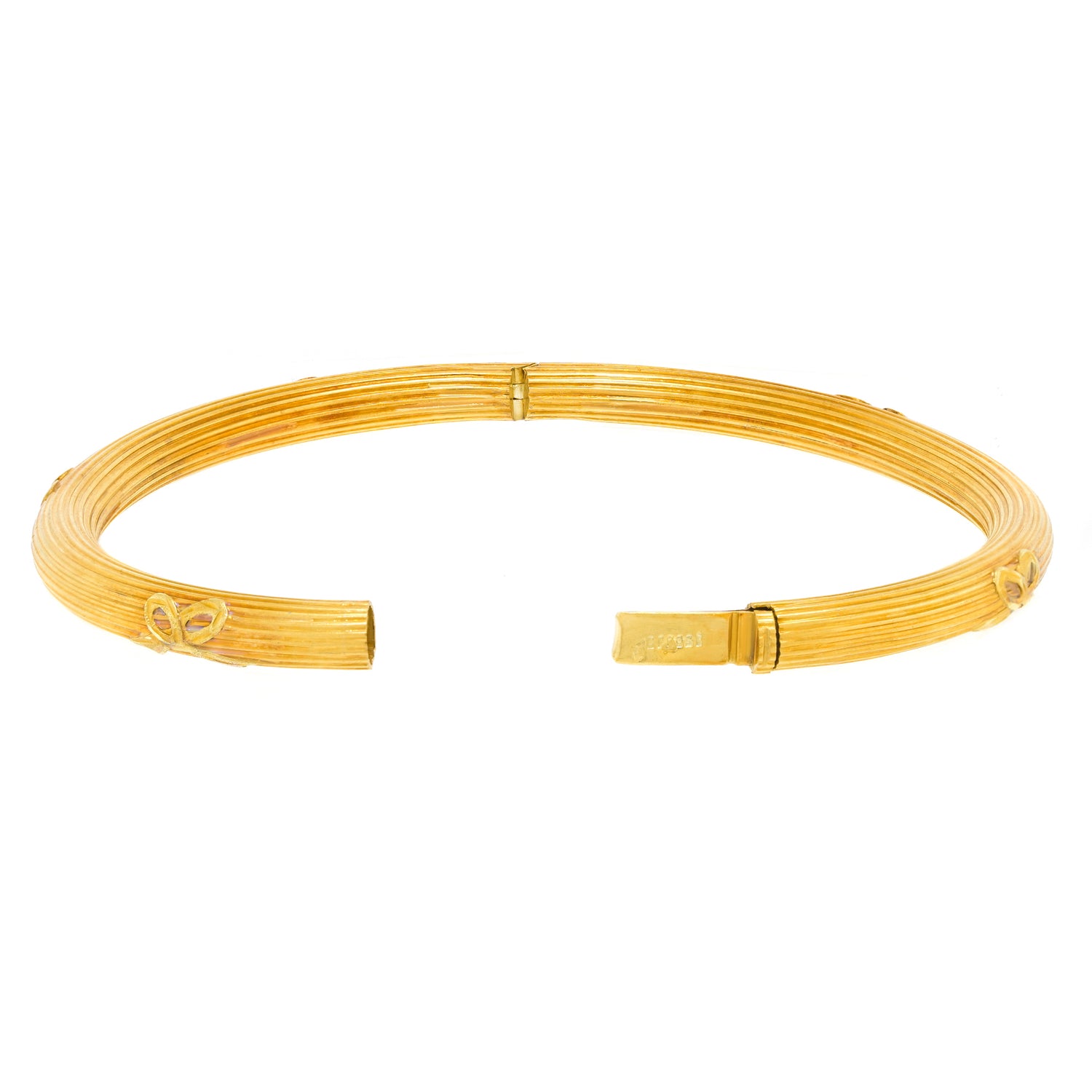 Circa 1900, 18k, France. This beautiful, eighteen-karat gold bangle features a charming bow motif. Delightfully antique-chic, it looks amazing worn alone or added to your "arm candy." Beautifully made, this hinged bangle is in excellent condition.