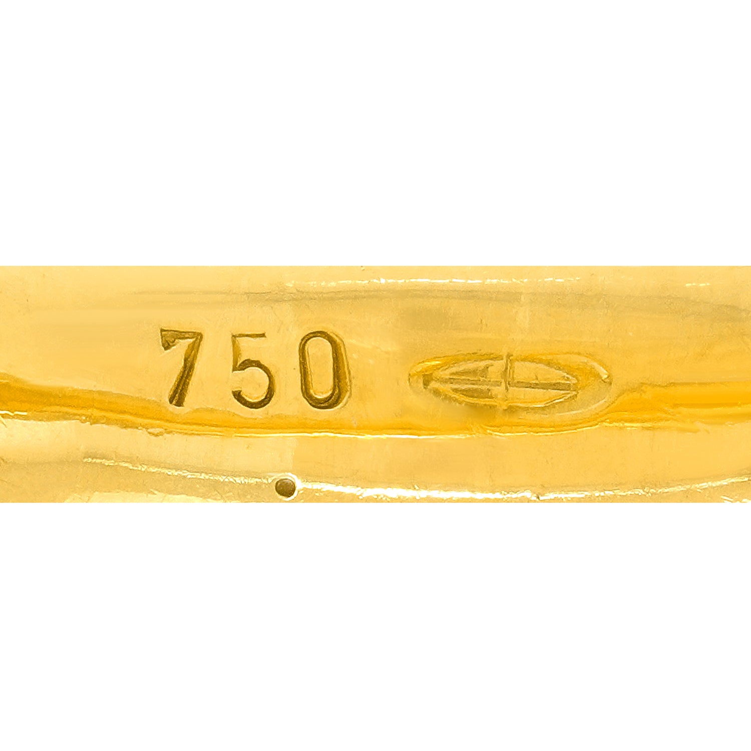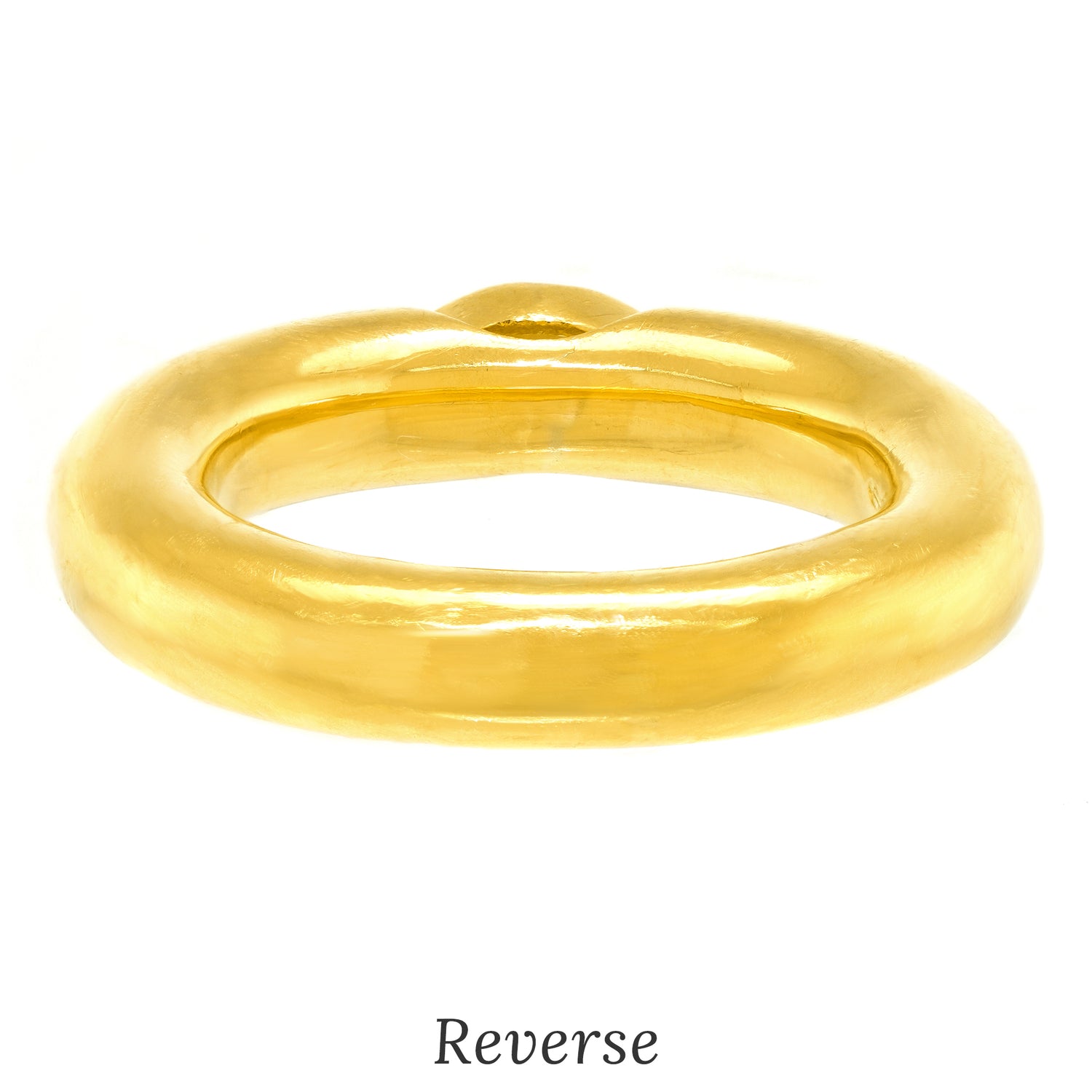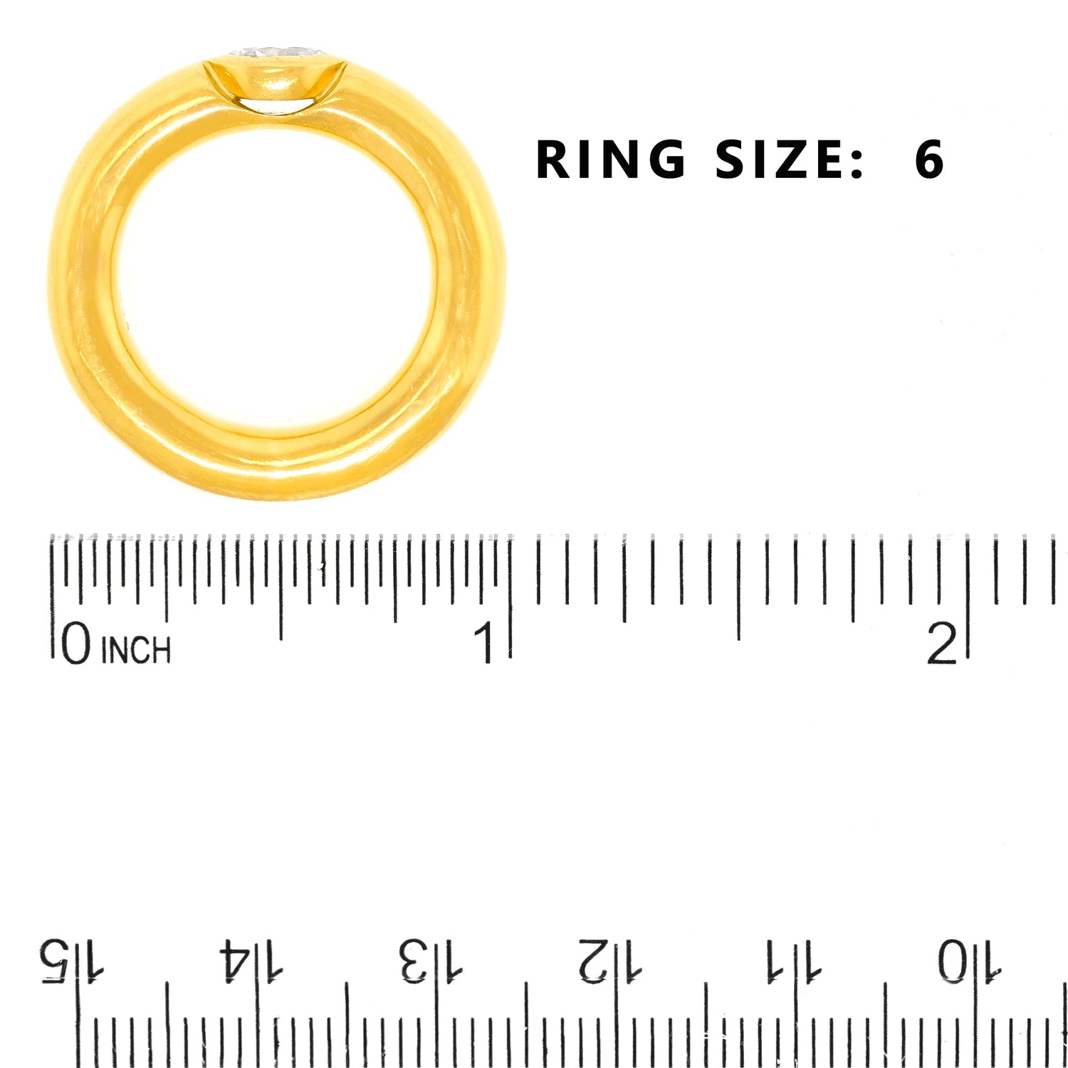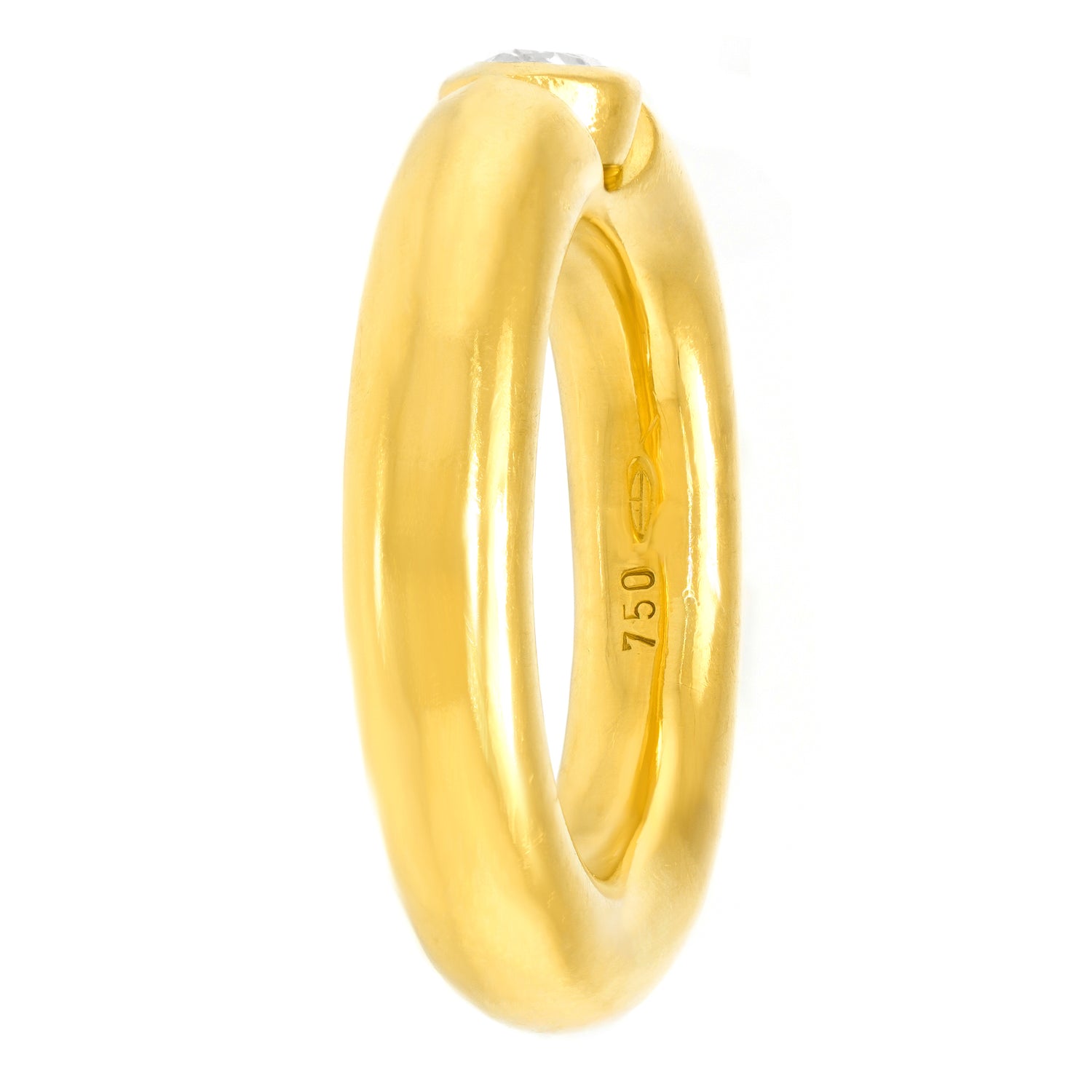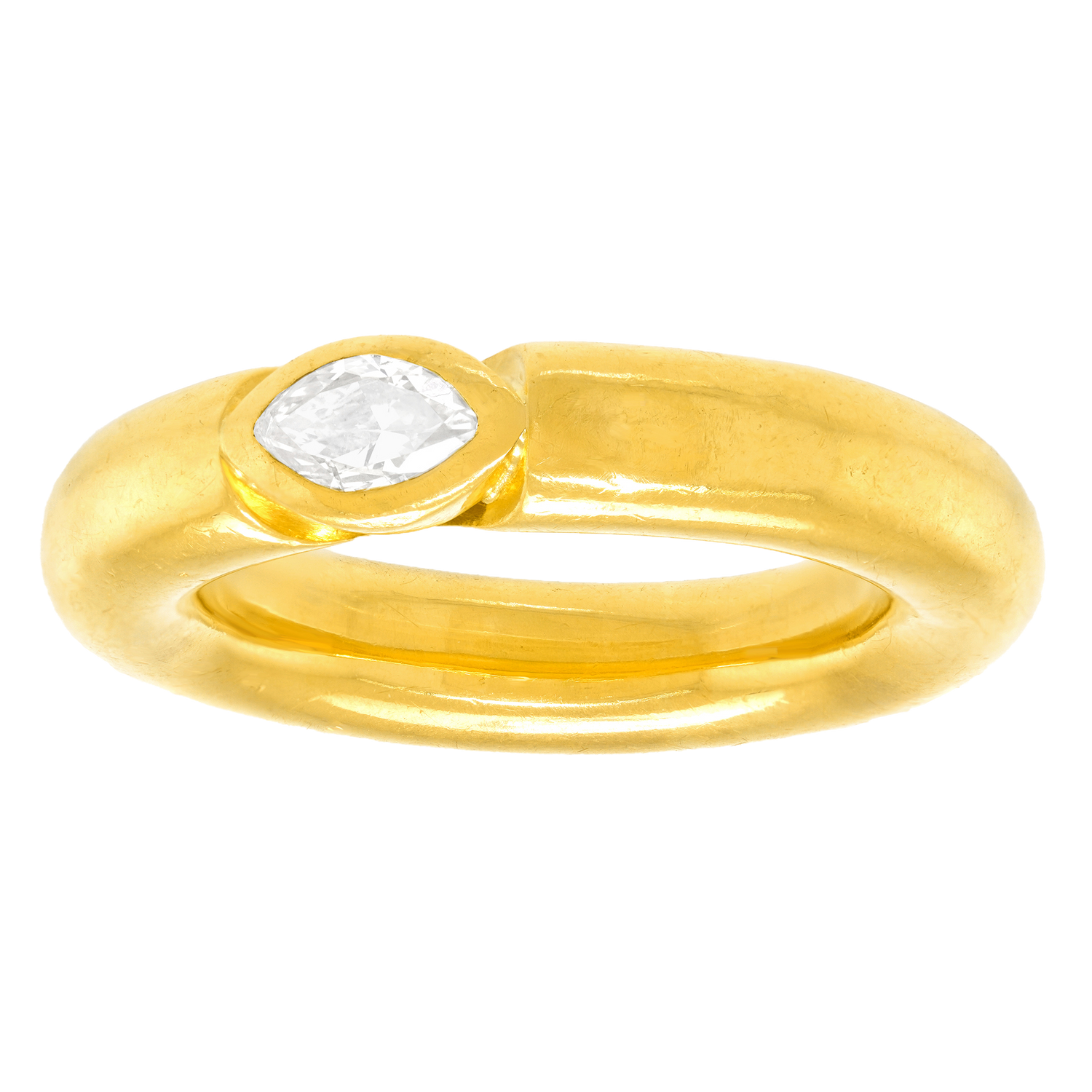 Circa 1960s, 18k, Swiss. Sleek and elegant, this sixties ring has a chic, less-is-more look. All about the brilliantly polished gold and deliciously chunky goldwork, punctuated by a brilliant .30 carat marquise diamond (I color, SI1 clarity), the look is minimalist chic. Well-made in eighteen karat gold to the highest Swiss standards, it is in excellent condition.