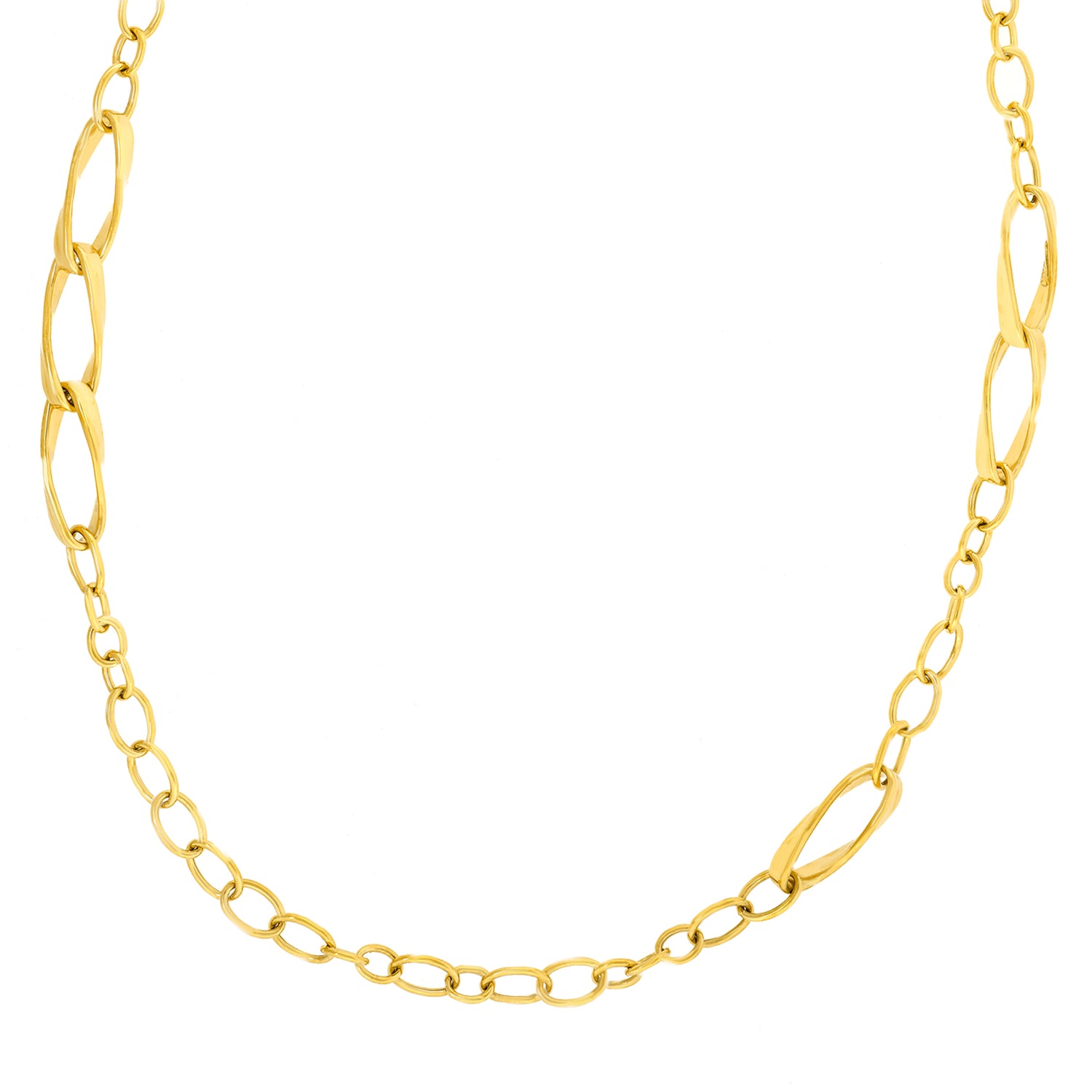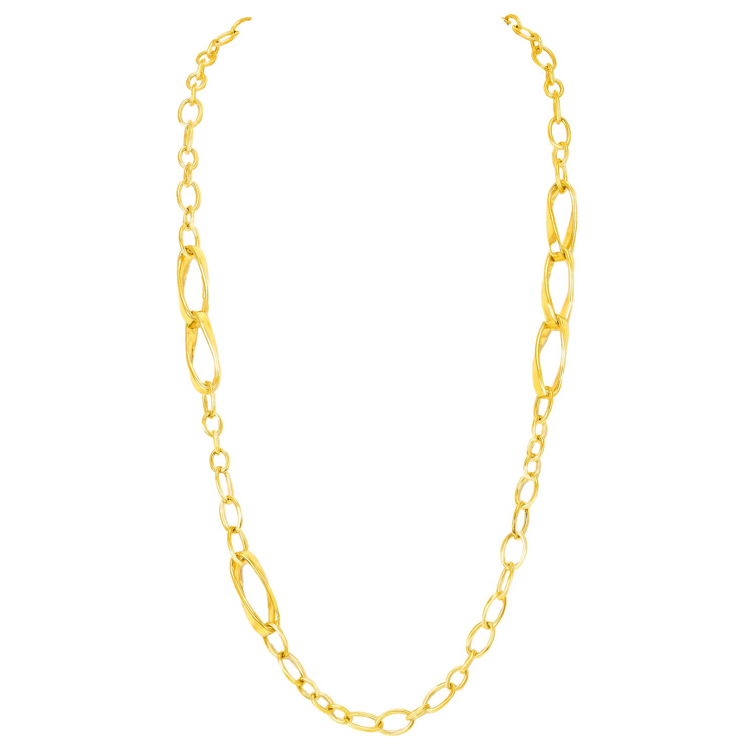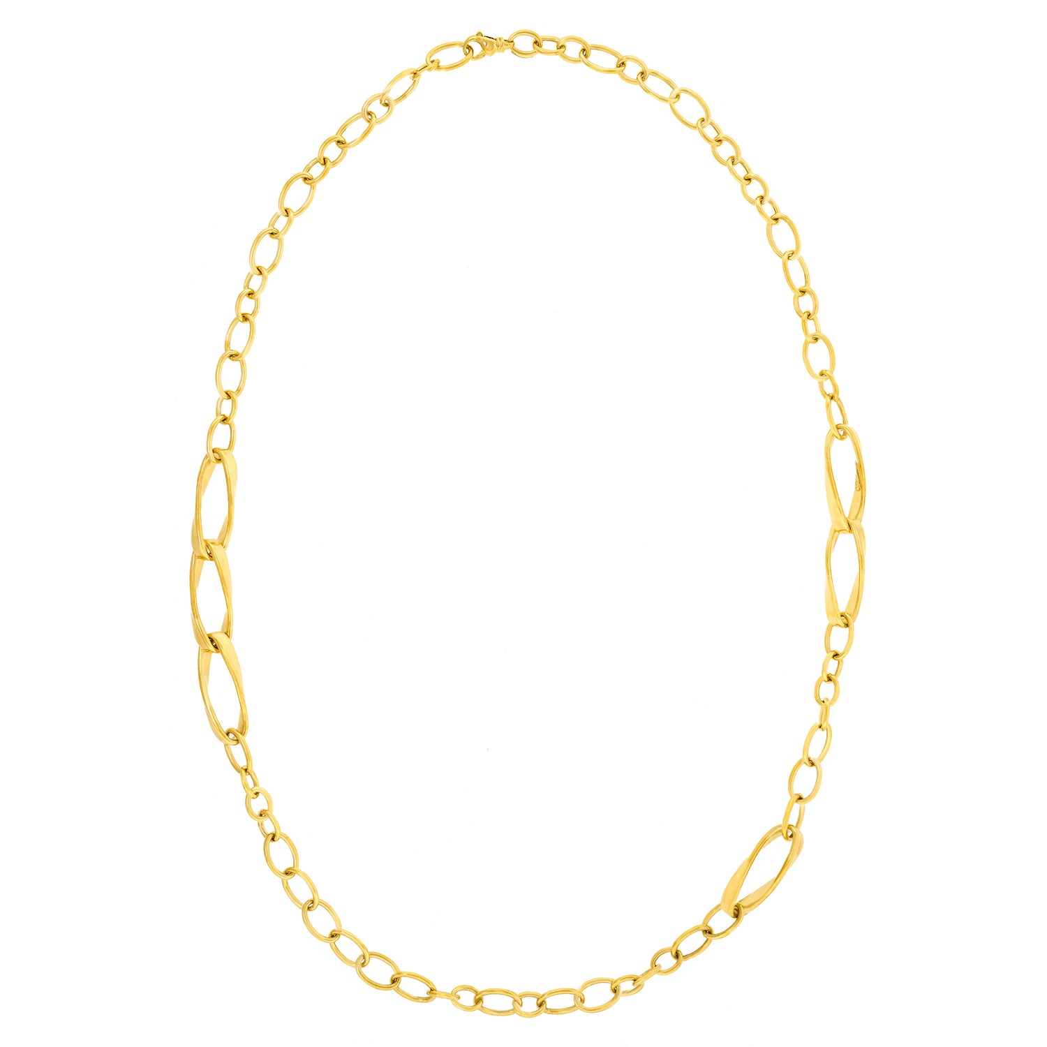 Circa 1990s 18k, Oromalia, Italy. Under the watchful eye of owner Salvatore Barveri, Oromalia creates fashion statements in 18k gold. The necklace can be worn long or as a choker. Fabulous every way up or down. Excellent condition.