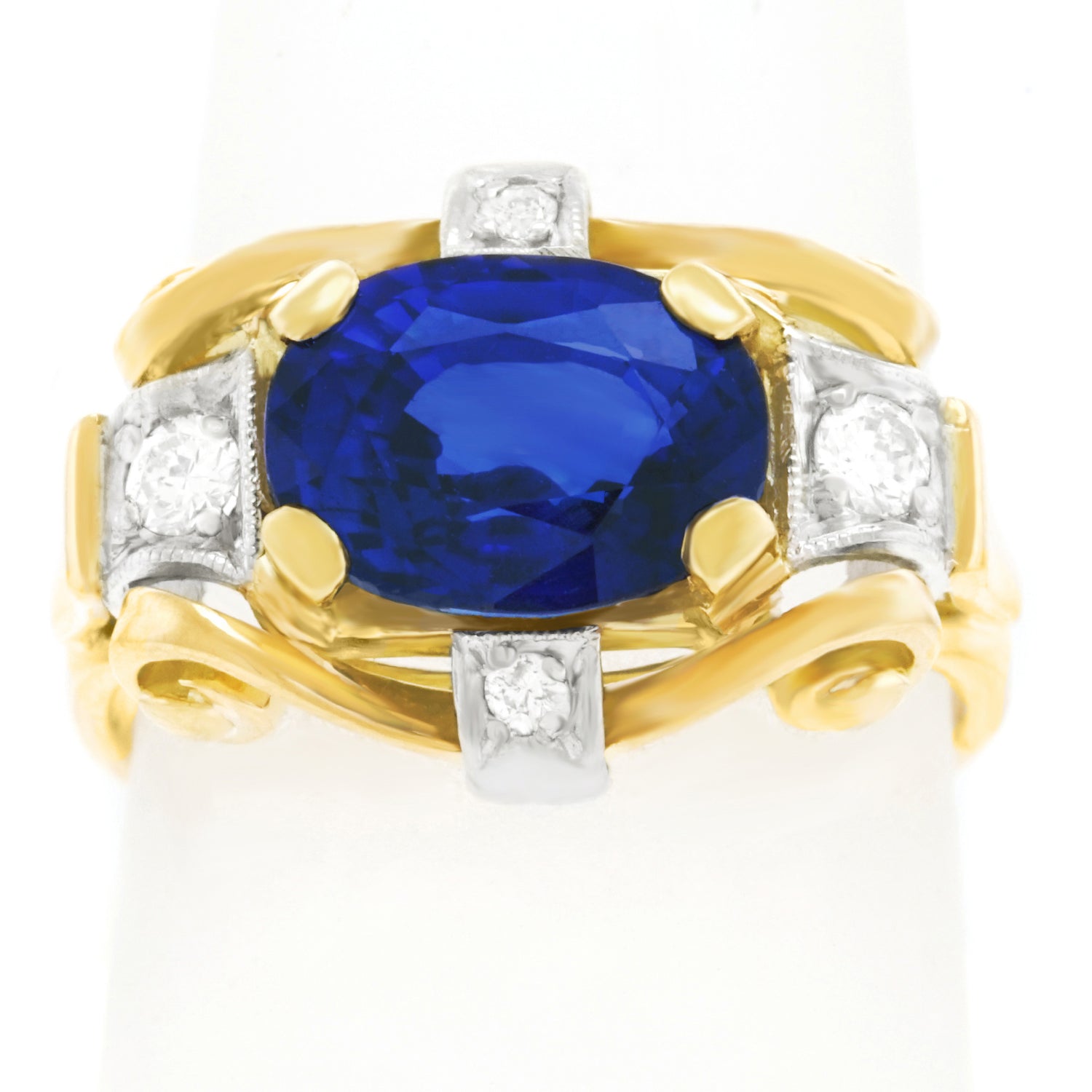 4.01 Carat Sapphire and Diamond Art Deco Ring