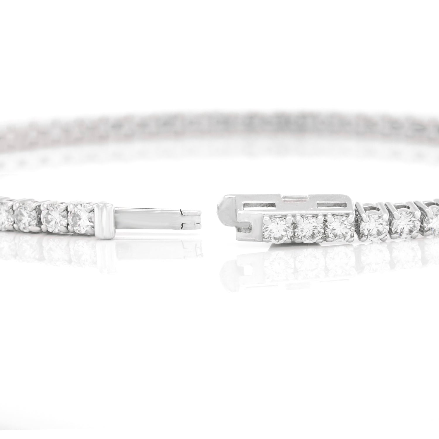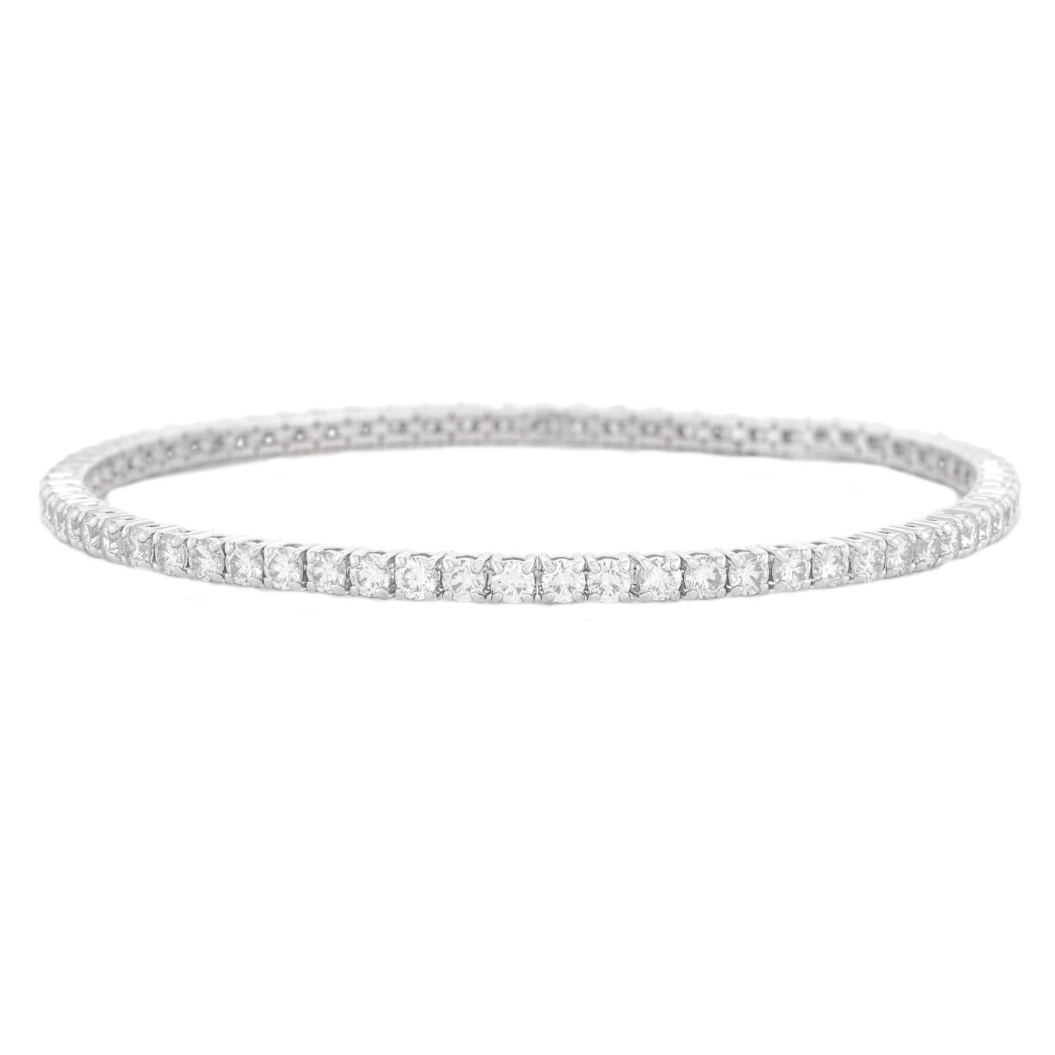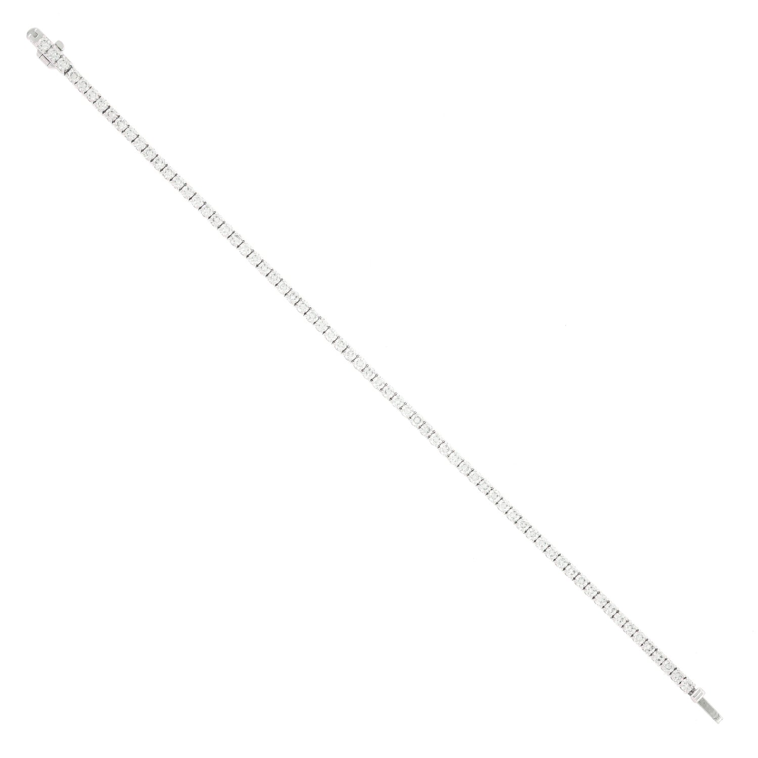 Circa 2000s, 18k, American. A flash of white fire on the wrist, this bracelet is all about the 4.40 carats of brilliant white diamonds (H-I color and VS2-SI1 clarity). The look is effortless fashion, perfect solo or sublime mixed with other bracelets or a watch. Iconic American style, just add an oversized sweater and Jacki O sunnies! Finely fashioned, it is in excellent condition.