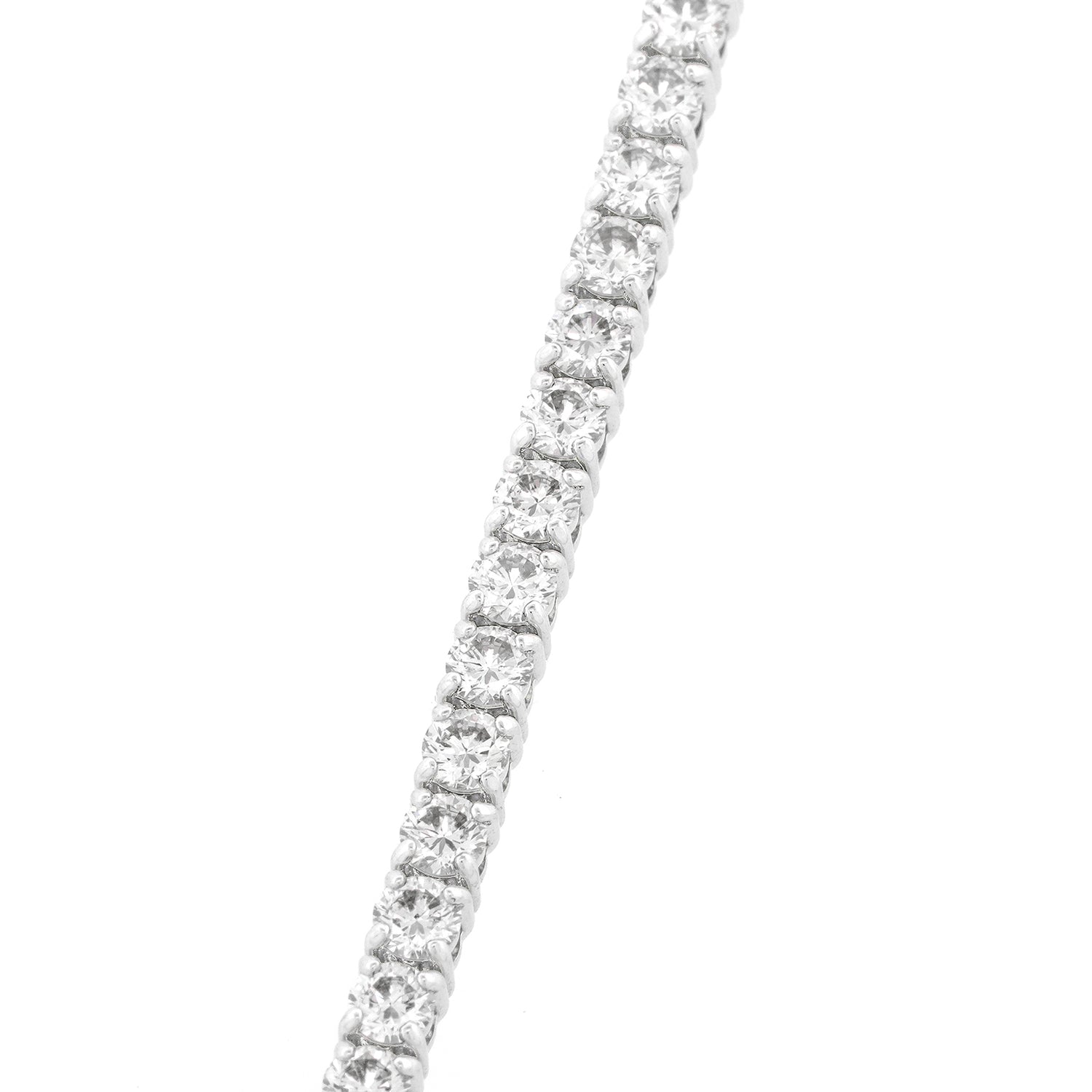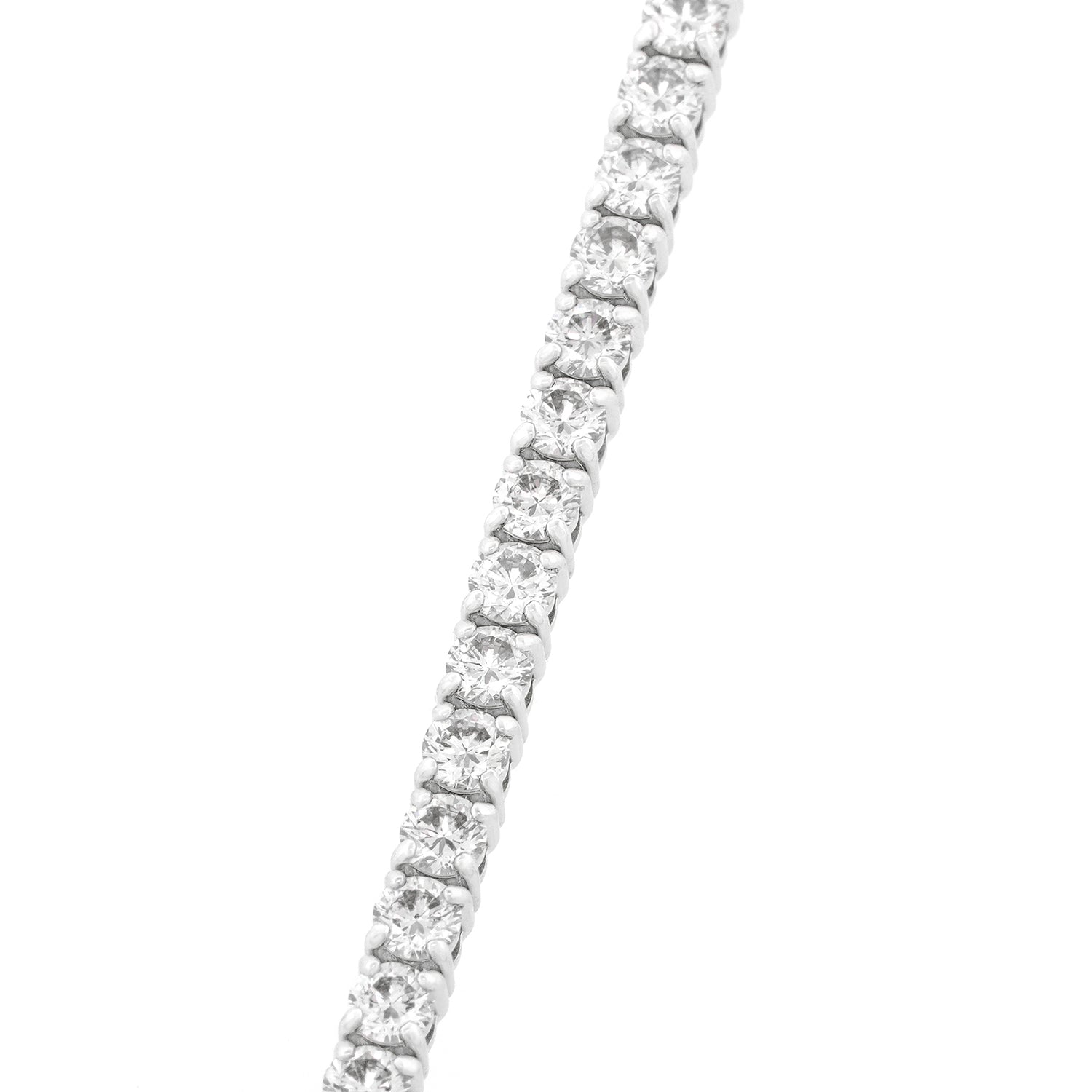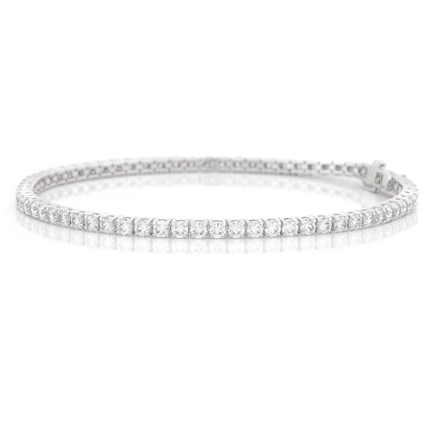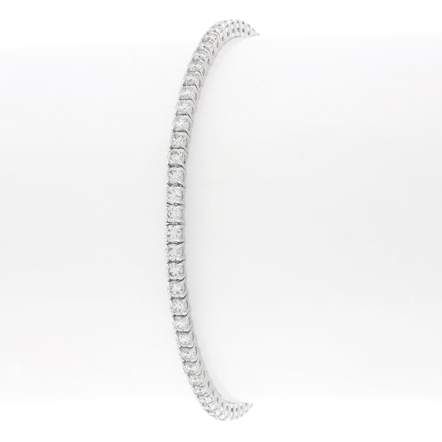 Circa 2000s, 18k, American. A flash of white fire on the wrist, this bracelet is all about the 4.40 carats of brilliant white diamonds (H-I color and VS2-SI1 clarity). The look is effortless fashion, perfect solo or sublime mixed with other bracelets or a watch. Iconic American style, just add an oversized sweater and Jacki O sunnies! Finely fashioned, it is in excellent condition.