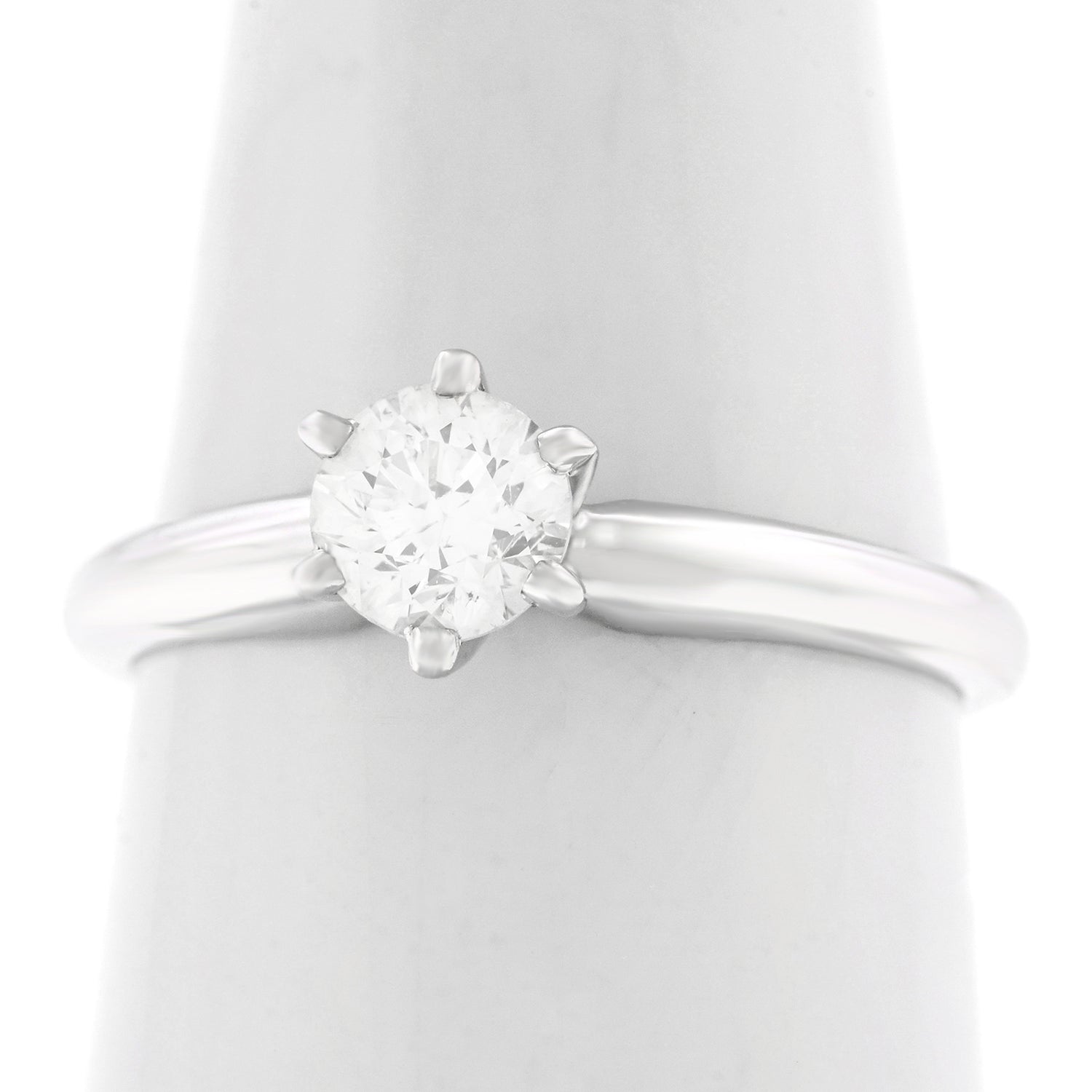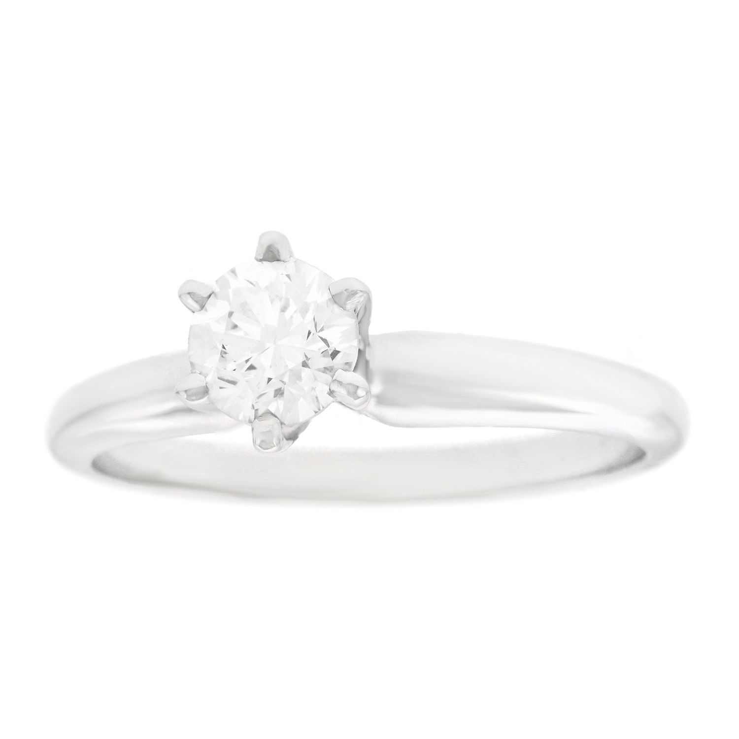 Circa 1960s, 14k, American.   The refined proportions and classic six-prong setting of this sixties modern engagement ring elegantly highlight the brilliant white .50-carat diamond (I color, SI1 clarity). Well-made, it is in excellent condition.