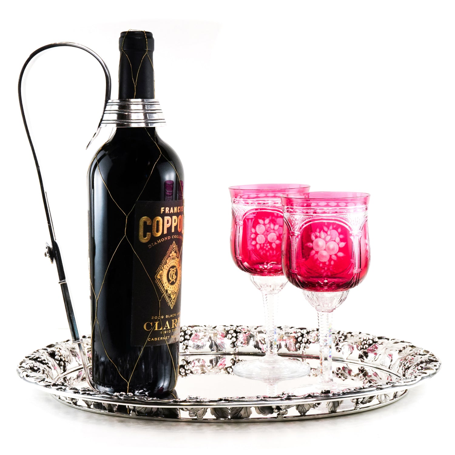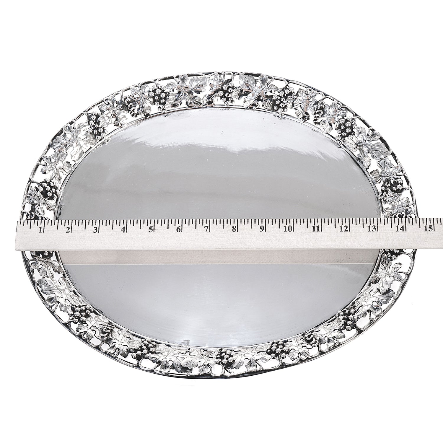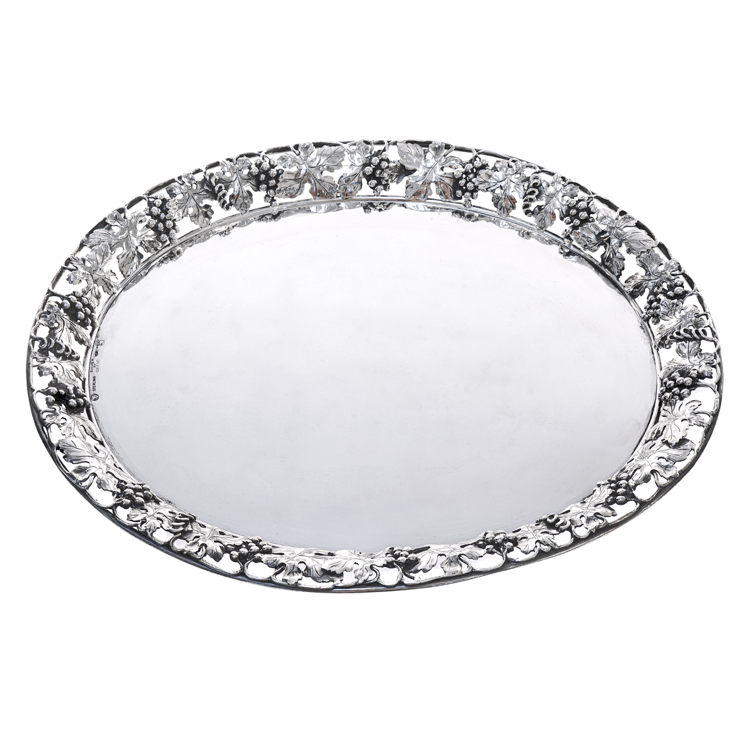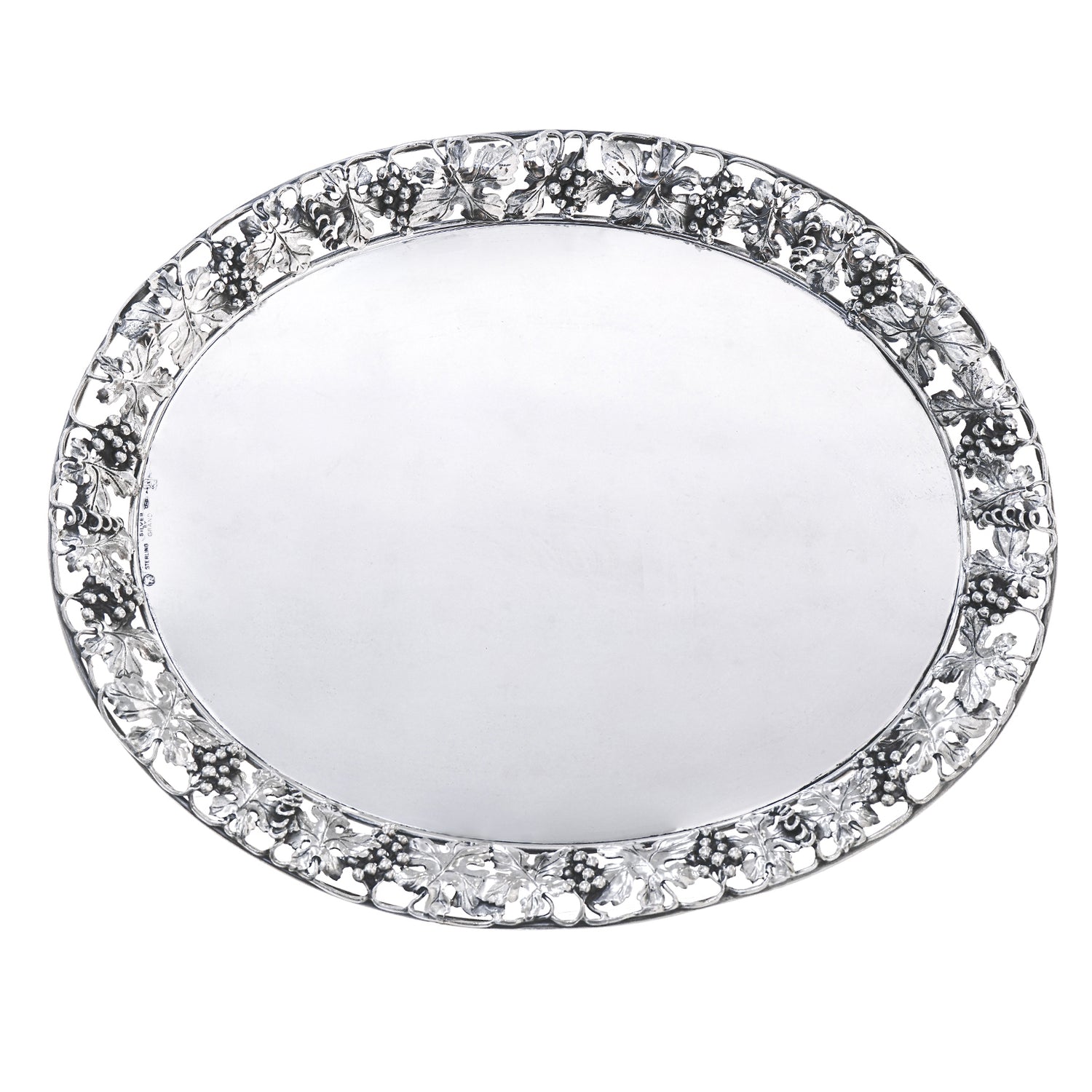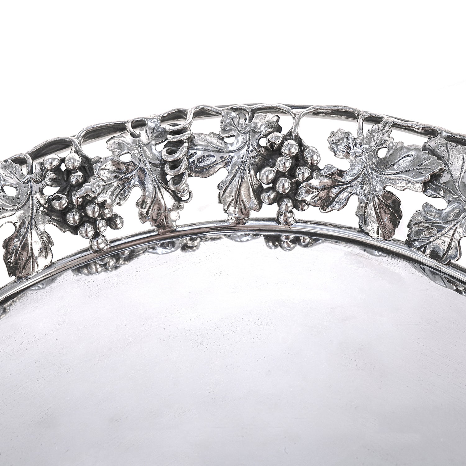 Circa 1960s, Sterling, Grand Silver Co., New York City. Fabulous sterling tray with a highly detailed grape and grape leaf gallery. Perfect as a center piece or lovely as a dry bar for entertaining. Excellent condition.