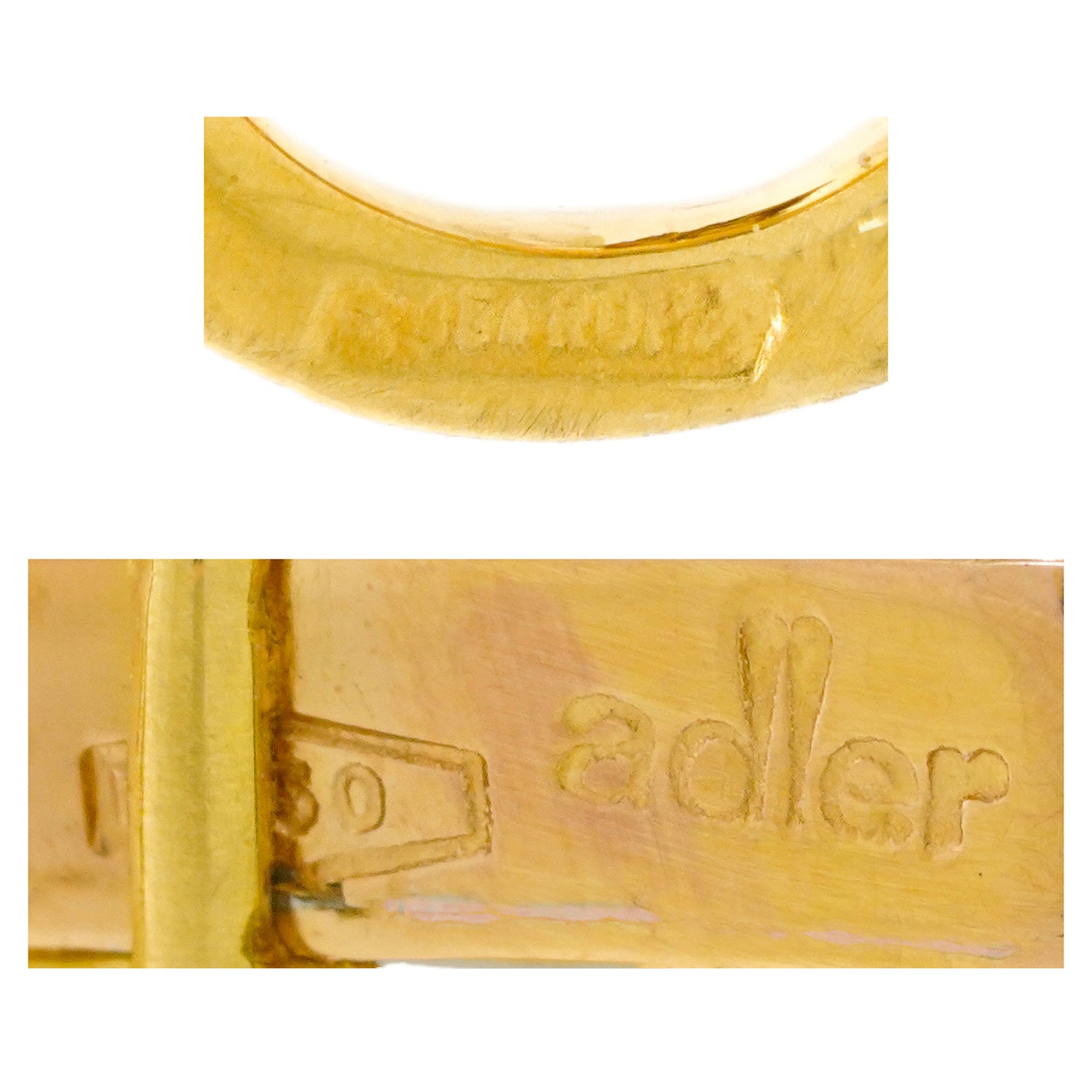 Hallmarks: Adler, 750 for 18k, and Italian Workshop Registration Number on finding