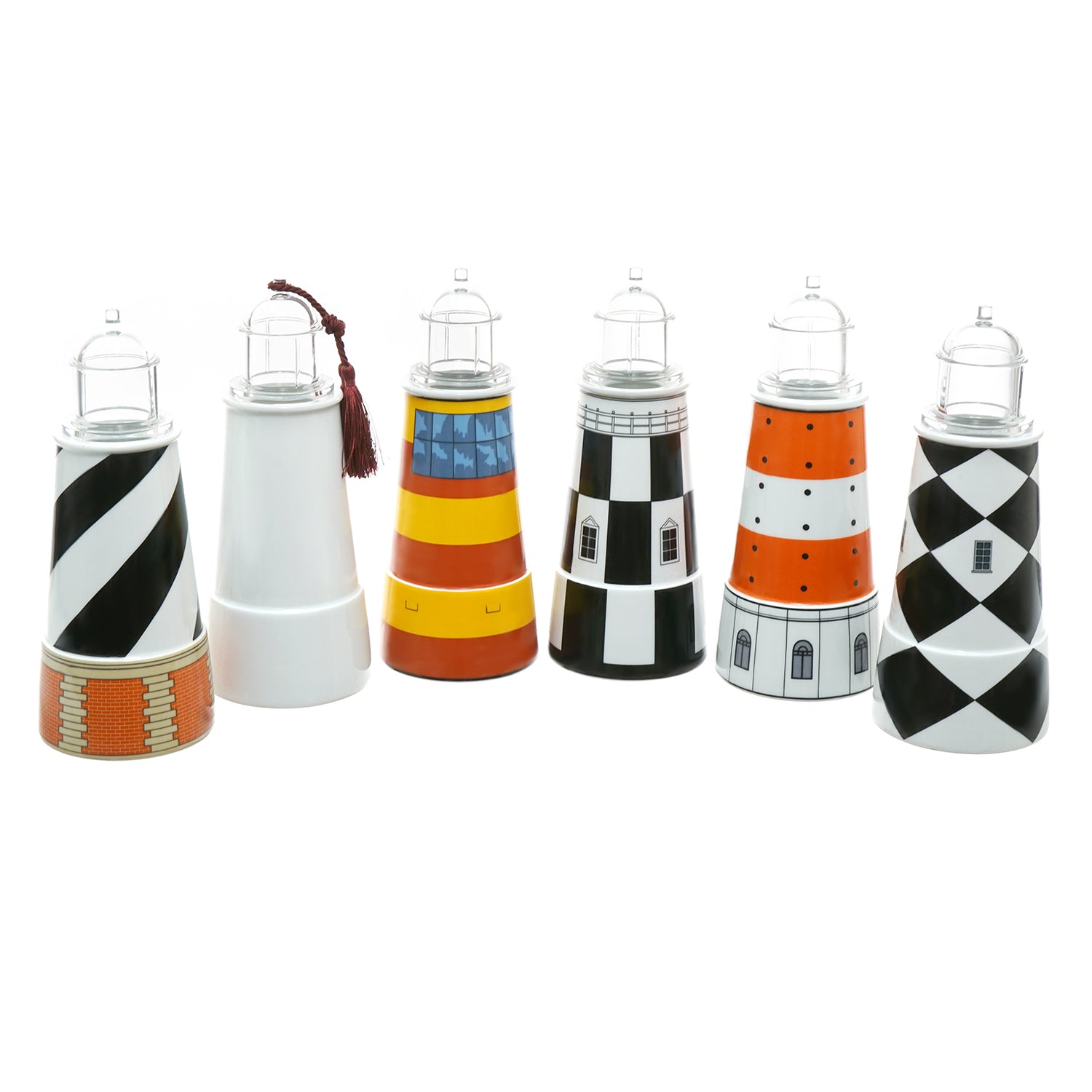 Circa 1980s, Aldo Rossi for Rosenthal, Germany. This 12-inch high limited edition lighthouse is a brilliant example of Rosenthal's studio line. Created in the 1950s to showcase contemporary design, the studio line underscores Rosenthal's commitment to decorative accessories, as well as serve ware. Technically, this is a canister. However, it is clearly intended as an effortless splash of color for modern, contemporary, or beach decor. Excellent condition.