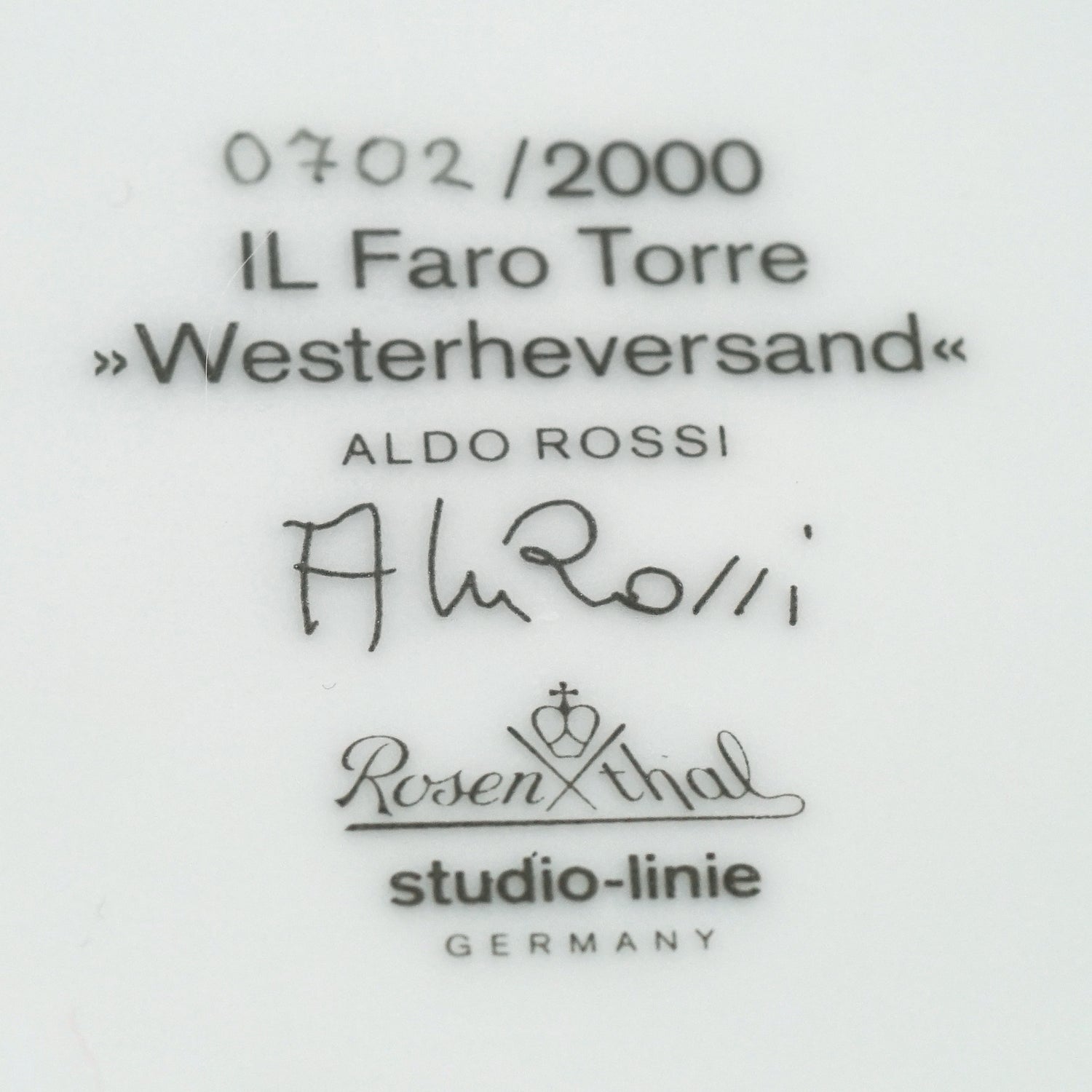 The edition, the name of the lighthouse, "Aldo Rossi", his signature, "Rosenthal", Studio line and Germany