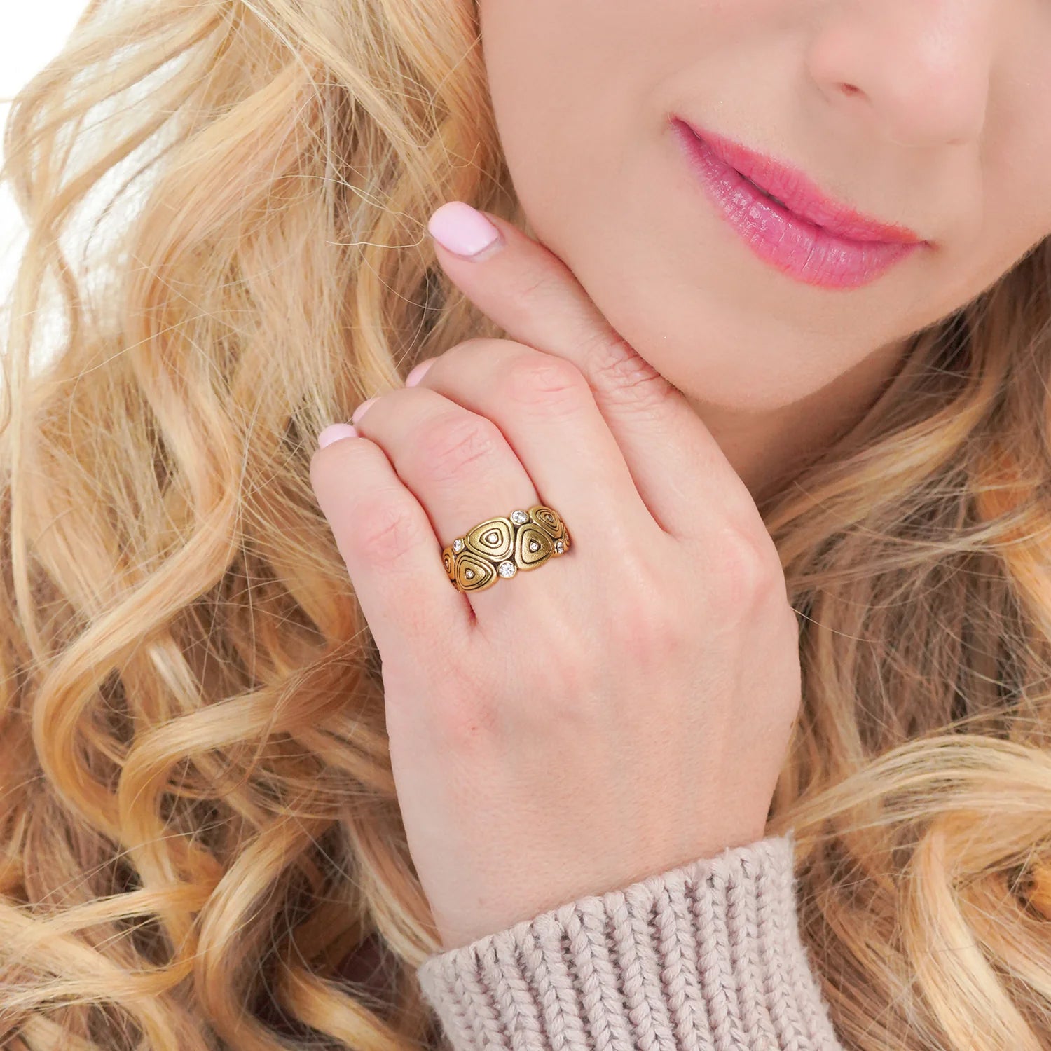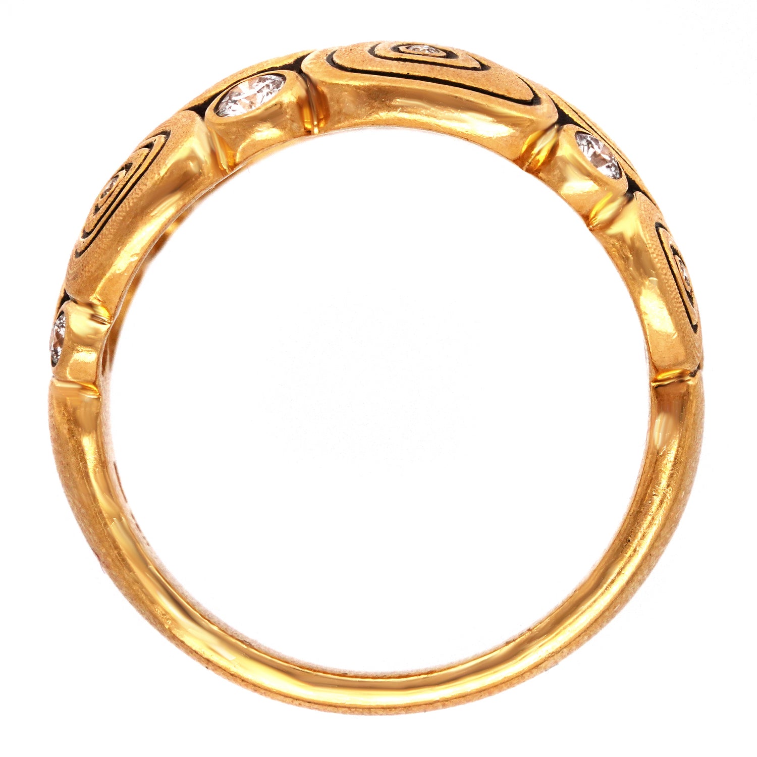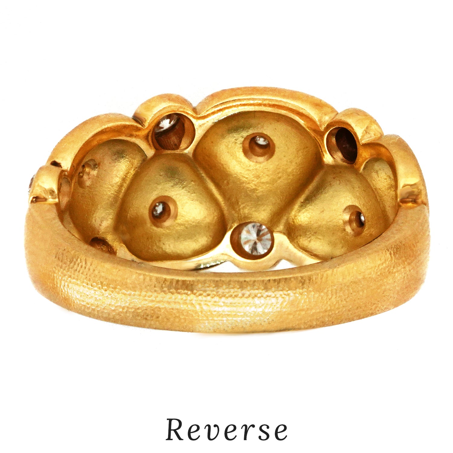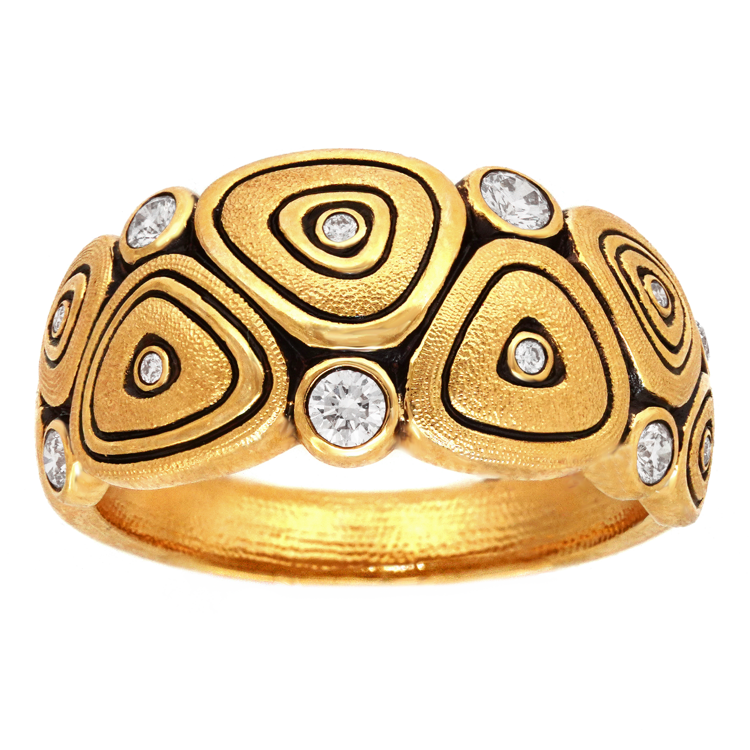 Circa 2000s, 18k, by Alex Sepkus, American. Alex Sepkus jewelry has a wonderful quality that takes rare and valuable and makes it part of our everyday story. This "Pebbles" ring is set with brilliant white diamonds in rich yellow eighteen-karat gold. Excellent condition.