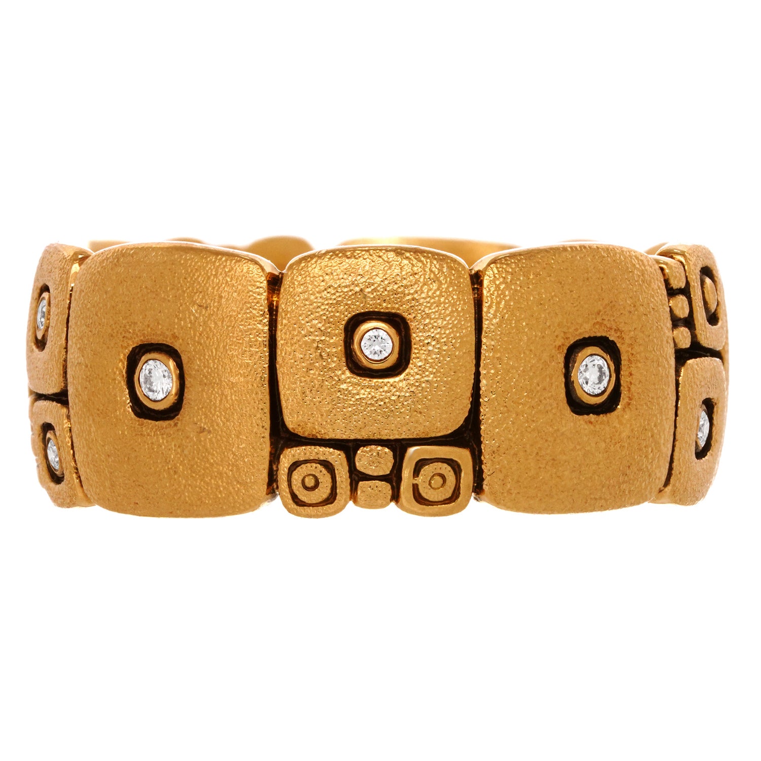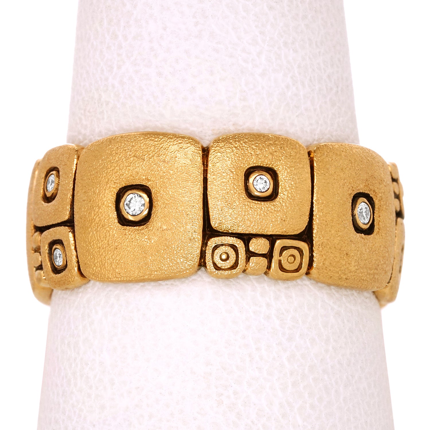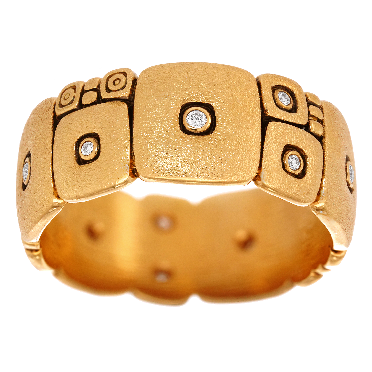 Circa 2000s, 18k, by Alex Sepkus, American. This fabulous "Temple Wall" ring by Alex Sepkus is everyday perfection. His work is instantly recognizable, unique, inspired, and timeless. Perfect as a fashion ring or a perhaps wedding band, this size 10 ring is in excellent condition.