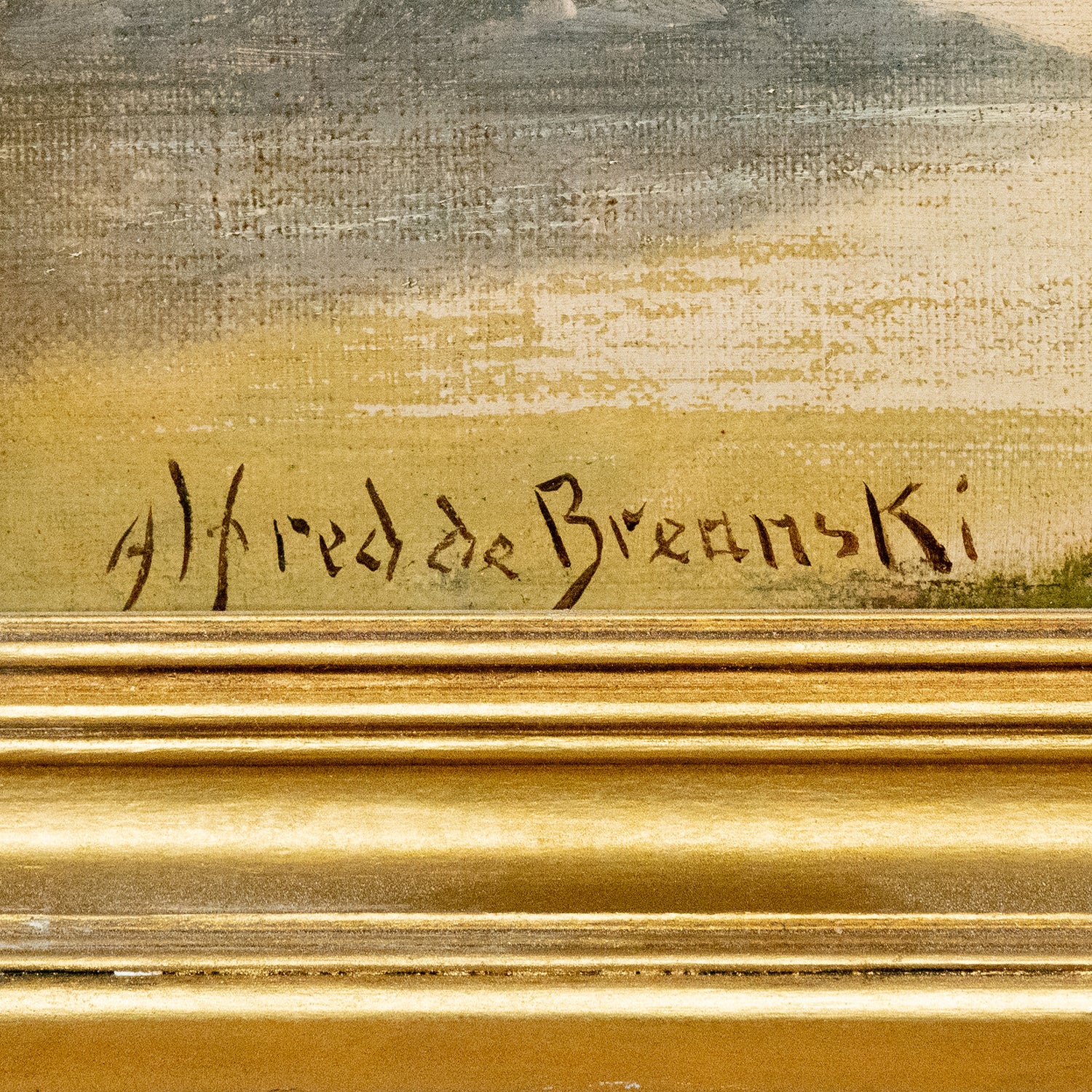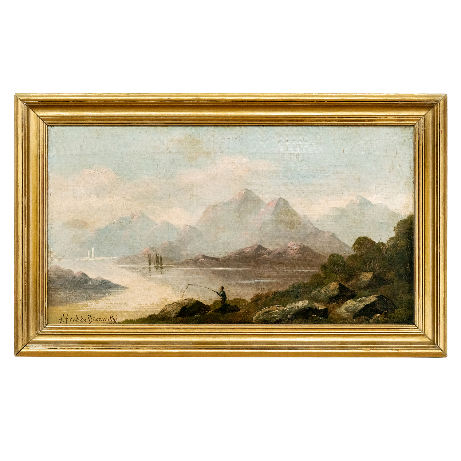 Circa 1880s by Alfred De Breanski Sr., (1852 - 1928), England. This lovely oil on canvas, using the impedimenti technique of layering and glazing, is a rare and fine example of De Breanski's work. An atmospheric painting capturing the mood of the Scottish lakes region, it is perfect for any décor. Signed Alfred de Breanski (lower left).